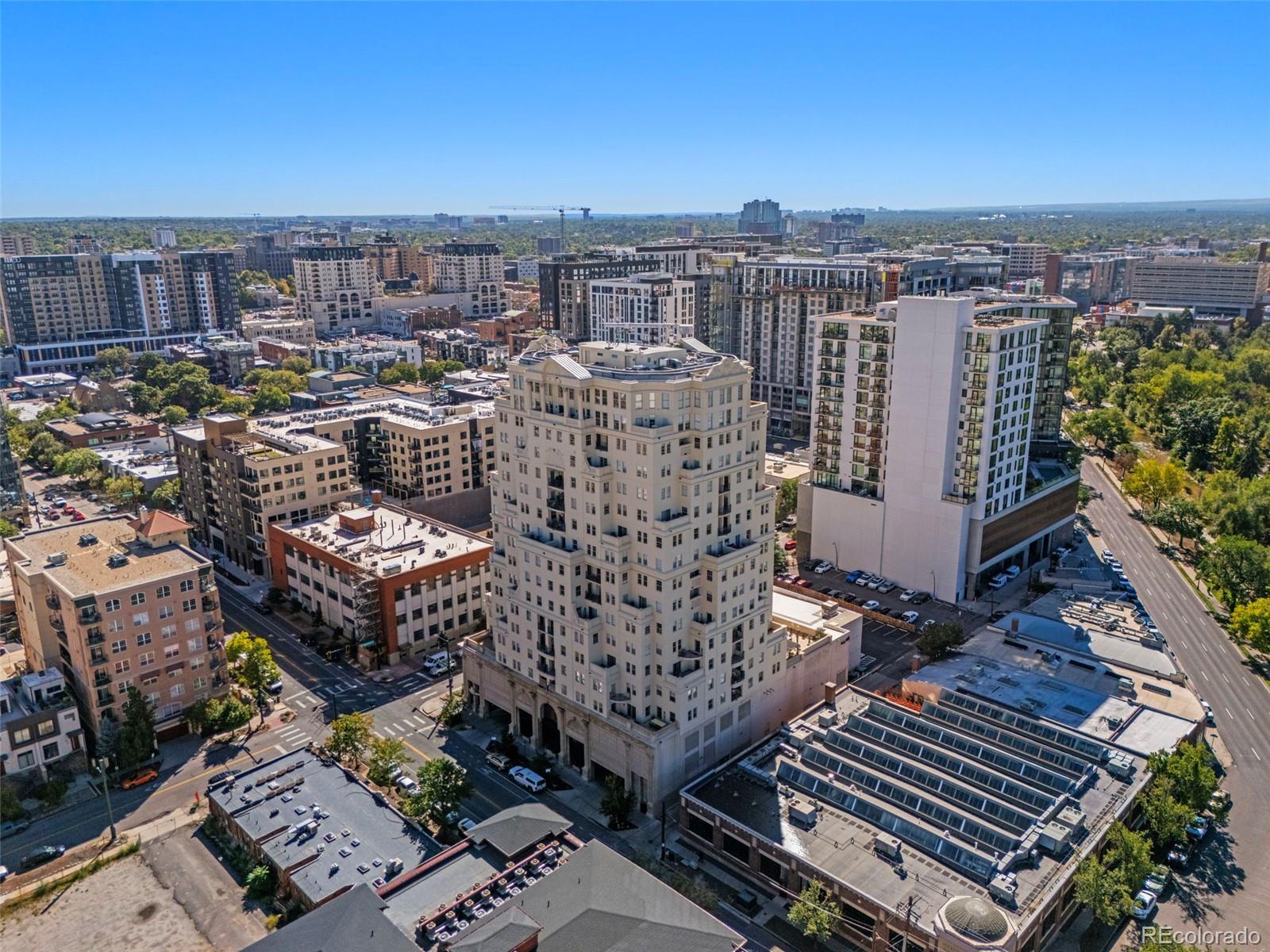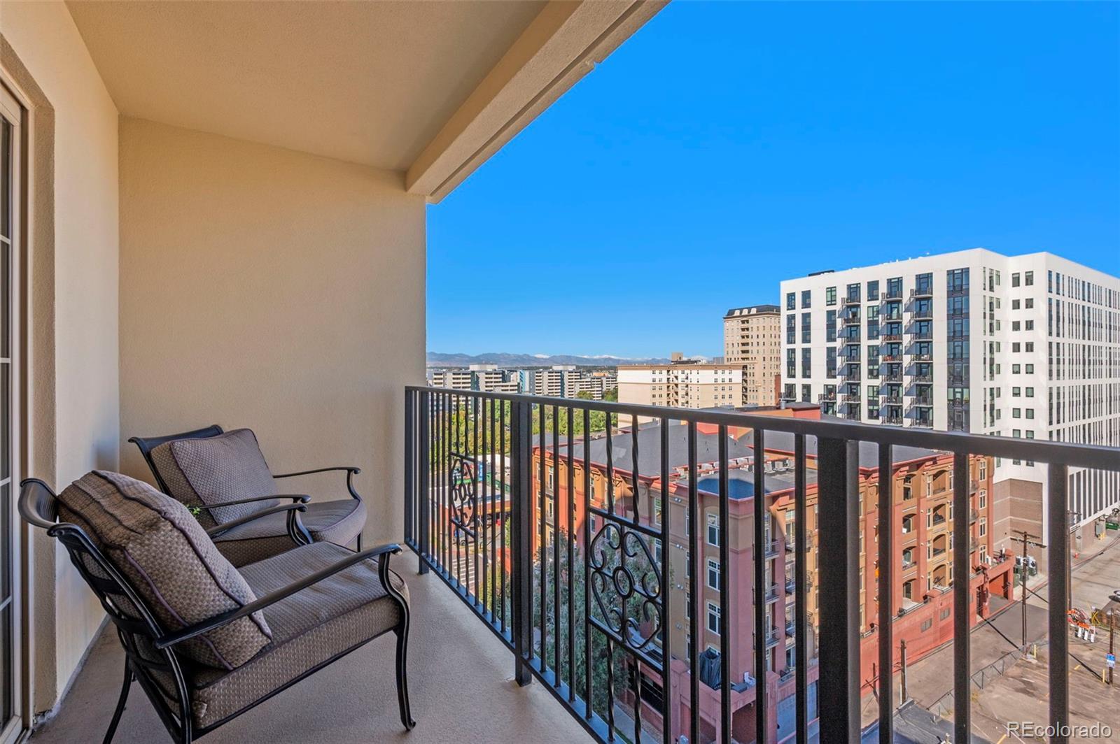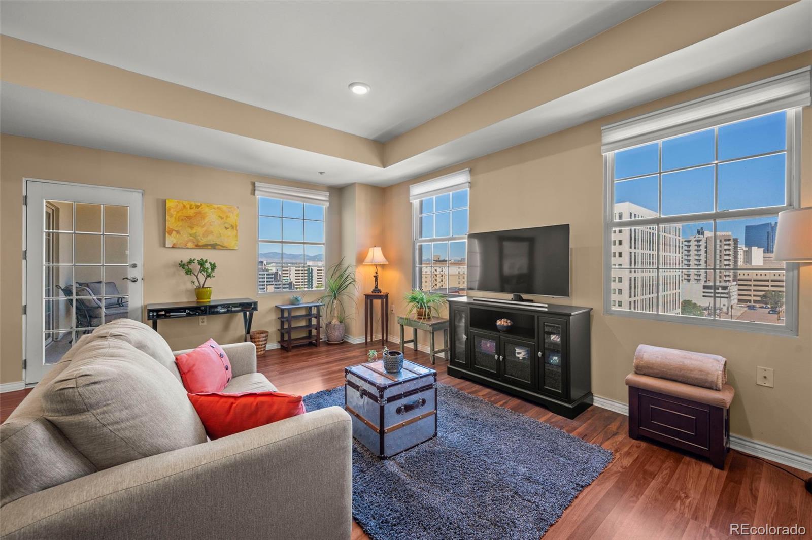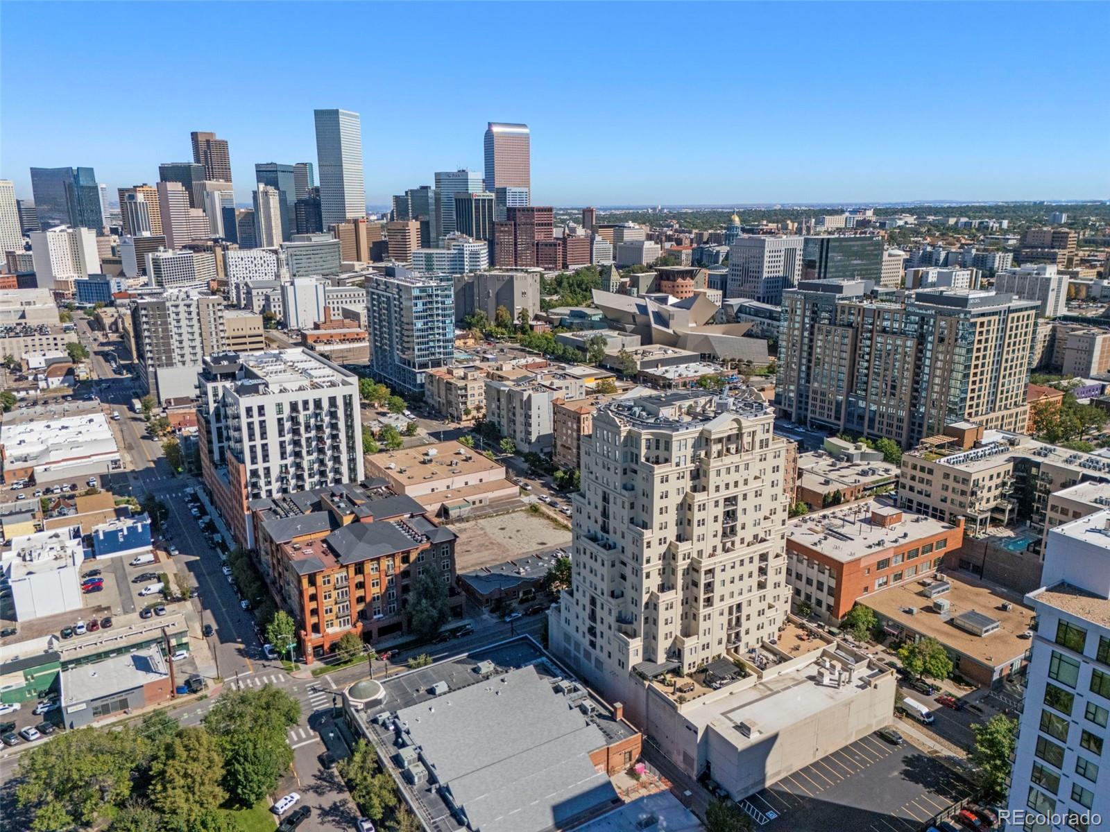 High above the city in the heart of Denver’s Golden Triangle Creative District, this 10th-floor condo blends modern comfort with protected skyline views that stretch across downtown to the Capitol building and the mountains beyond. The light-filled interior features ample windows, creating a bright, open feel by day and a glittering backdrop of city lights at night. The open-concept living and dining area flows seamlessly to a private balcony—your front row seat to sunsets over the city. The primary suite is a true retreat with a generous layout, walk-in closet, a well-appointed en suite bathroom and a second entrance to your private balcony where you can watch fireworks from Invesco and the Civic Center! The second bedroom offers flexibility for guests, a home office, or creative space. Recent updates include new carpet in 2024 & recessed lighting. Down the hall on the same floor you also have your own locked room with oversized locker for additional storage. The unique French inspired Prado building with impeccable landscaping also offers a secure heated garage parking with your own reserved space and optional bike storage. Host meetings or grab a quick coffee on your way out in the attached Metropolis Coffee Shop! Bike or stroll just blocks away to Civic Center Park, Sunken Gardens Park, Cherry Creek Trail, the Denver Library, Curious Theater Company or the Denver Art Museum. Enjoy excellent Italian from Lo Stello and Cuban at the popular Cuba Cuba restaurant or grab a beer for happy hour at the new Schoolyard Beer Garden! Only a 10 min walk to First Fridays on Santa Fe and a 5 min drive to Cheesman Park. Nearby yearly events include the Kris Kringle Market, Chalk Festival and the parade of lights. With quick access to museums, restaurants, and conveniences, this isn’t just downtown living; it’s a chance to immerse yourself in of one of Denver’s most vibrant neighborhoods while enjoying the privacy and comfort of your elevated escape!