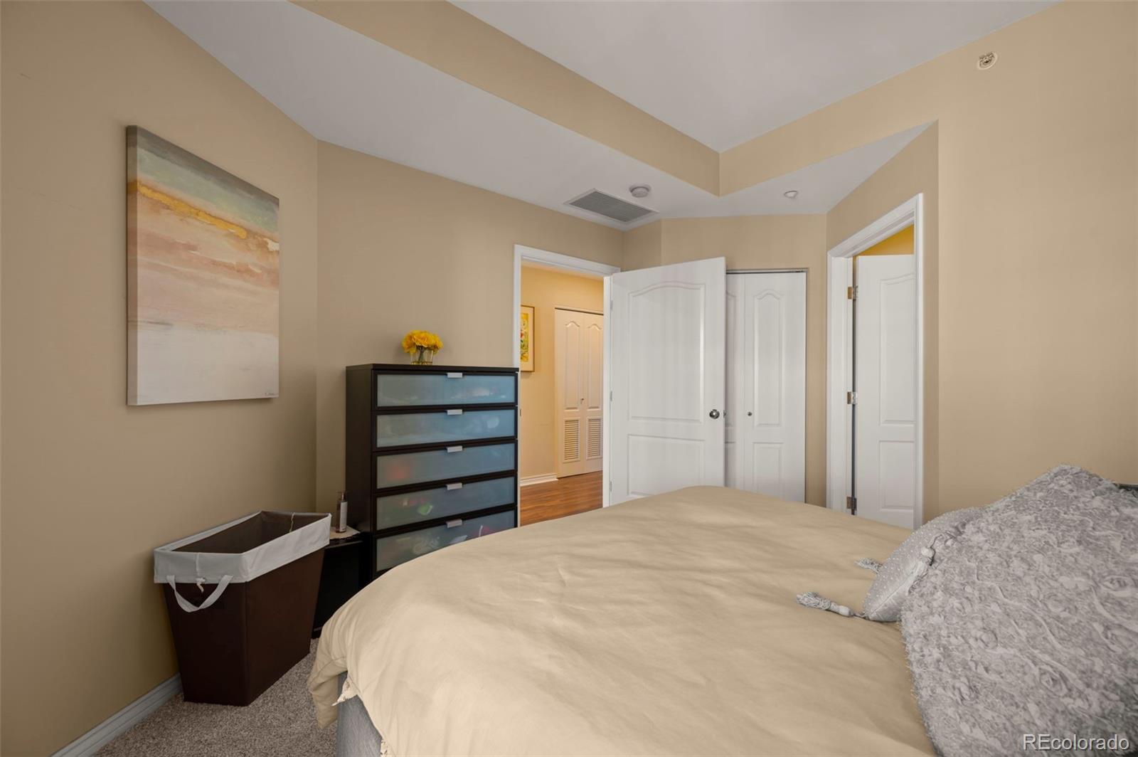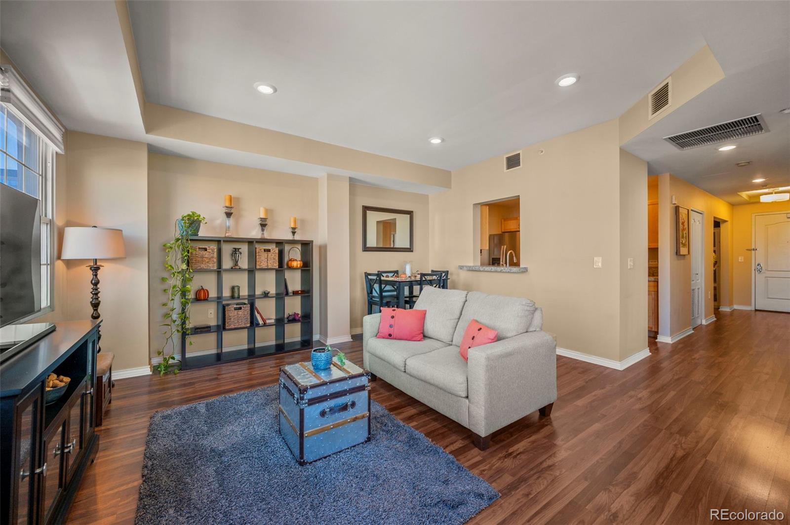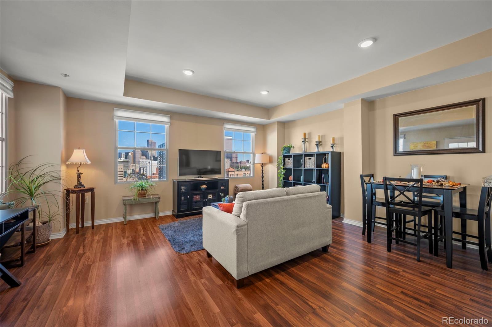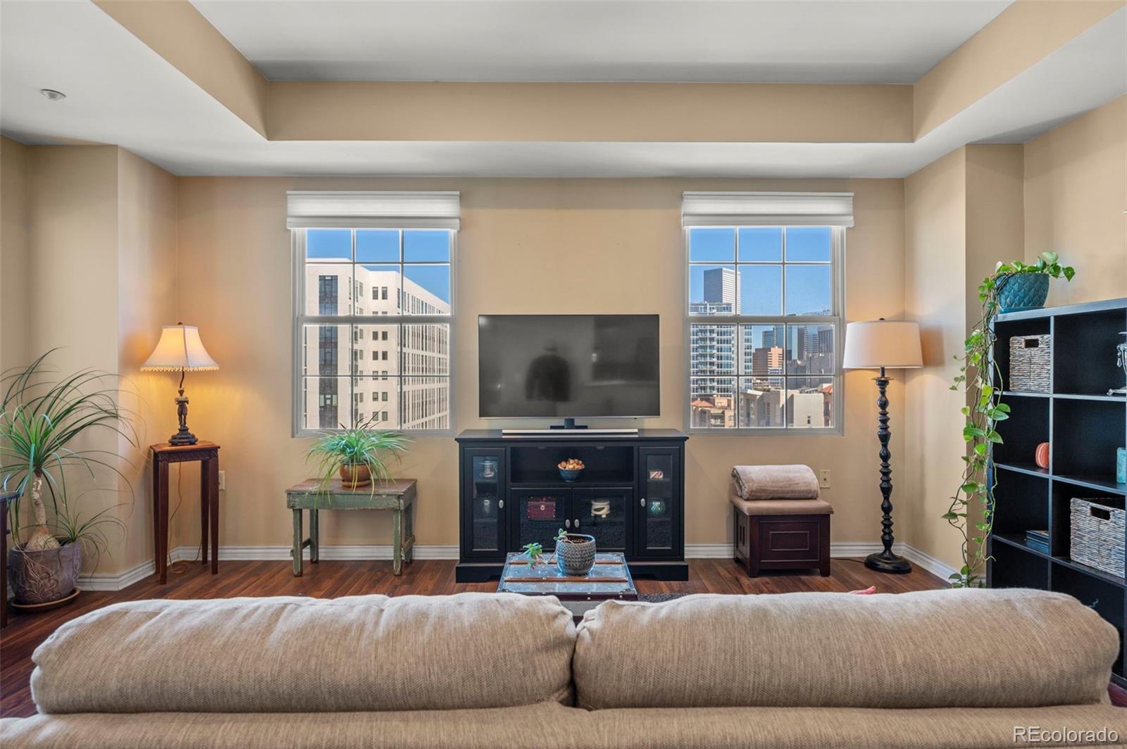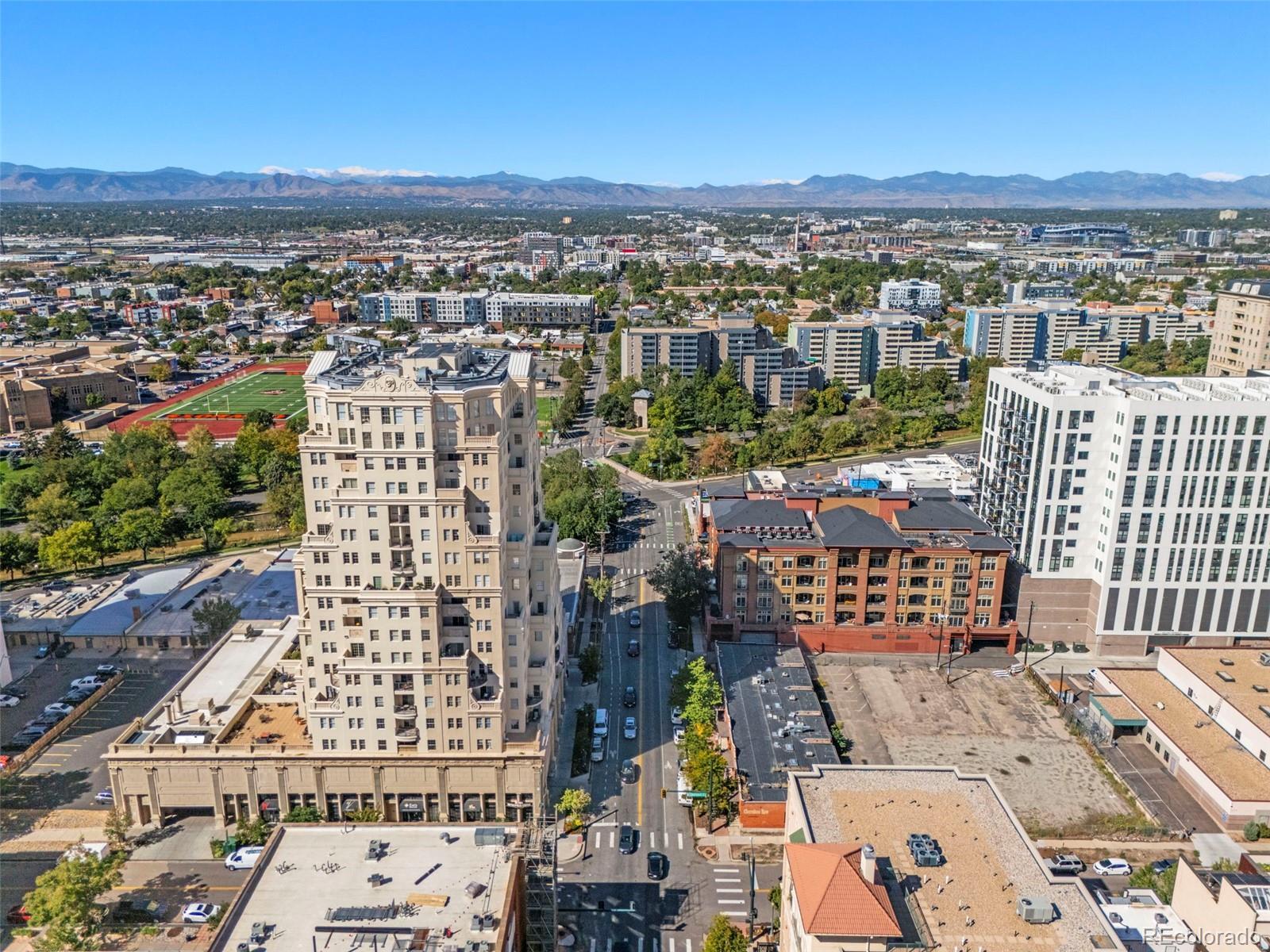 High above the city in the heart of Denver’s Golden Triangle Creative District, this 10th-floor condo blends modern comfort with protected skyline views that stretch across downtown to the Capitol building and the mountains beyond. The light-filled interior features ample windows, creating a bright, open feel by day and a glittering backdrop of city lights at night. The open-concept living and dining area flows seamlessly to a private balcony—your front row seat to sunsets over the city. The primary suite is a true retreat with a generous layout, walk-in closet, a well-appointed en suite bathroom and a second entrance to your private balcony where you can watch fireworks from Invesco and the Civic Center! The second bedroom offers flexibility for guests, a home office, or creative space. Recent updates include new carpet in 2024 & recessed lighting. Down the hall on the same floor you also have your own locked room with oversized locker for additional storage. The unique French inspired Prado building with impeccable landscaping also offers a secure heated garage parking with your own reserved space and optional bike storage. Host meetings or grab a quick coffee on your way out in the attached Metropolis Coffee Shop! Bike or stroll just blocks away to Civic Center Park, Sunken Gardens Park, Cherry Creek Trail, the Denver Library, Curious Theater Company or the Denver Art Museum. Enjoy excellent Italian from Lo Stello and Cuban at the popular Cuba Cuba restaurant or grab a beer for happy hour at the new Schoolyard Beer Garden! Only a 10 min walk to First Fridays on Santa Fe and a 5 min drive to Cheesman Park. Nearby yearly events include the Kris Kringle Market, Chalk Festival and the parade of lights. With quick access to museums, restaurants, and conveniences, this isn’t just downtown living; it’s a chance to immerse yourself in of one of Denver’s most vibrant neighborhoods while enjoying the privacy and comfort of your elevated escape!