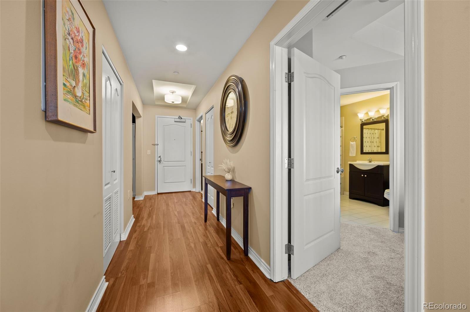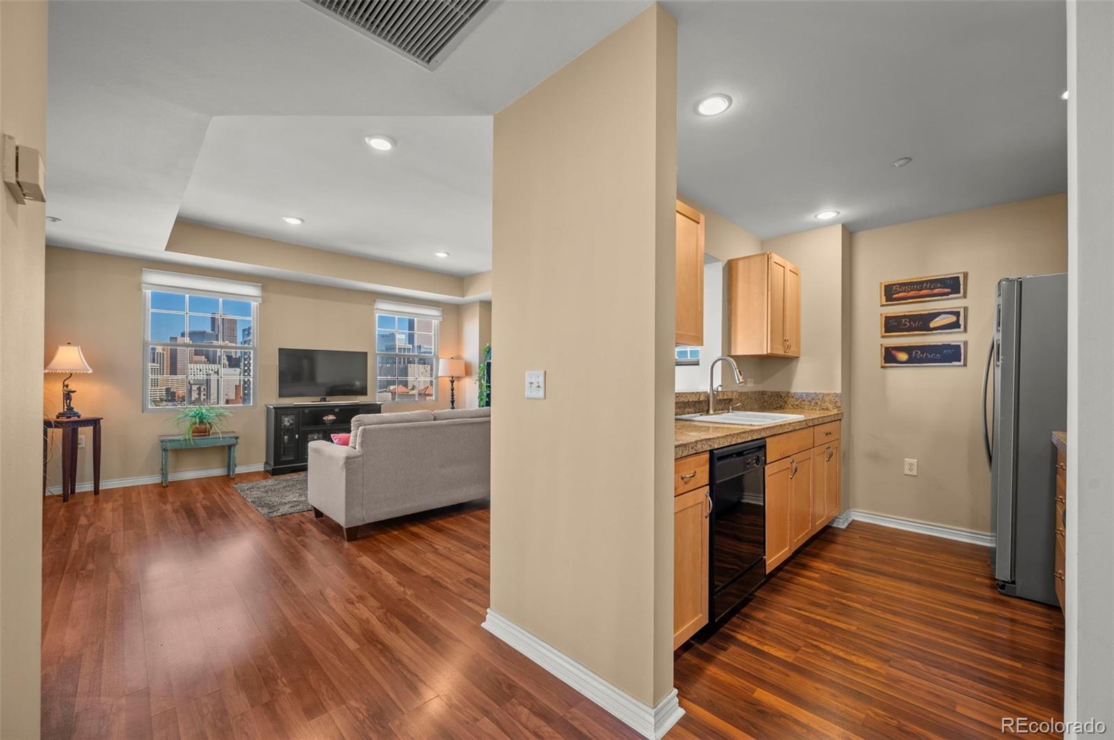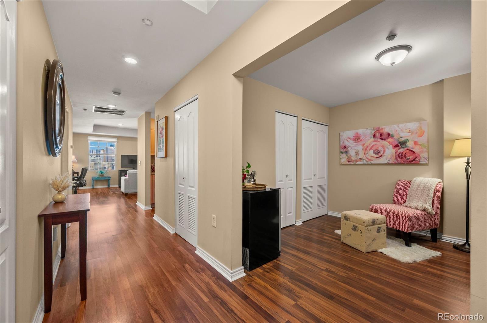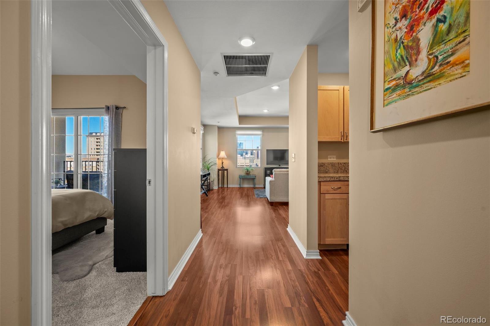 High above the city in the heart of Denver’s Golden Triangle Creative District, this 10th-floor condo blends modern comfort with protected skyline views that stretch across downtown to the Capitol building and the mountains beyond. The light-filled interior features ample windows, creating a bright, open feel by day and a glittering backdrop of city lights at night. The open-concept living and dining area flows seamlessly to a private balcony—your front row seat to sunsets over the city. The primary suite is a true retreat with a generous layout, walk-in closet, a well-appointed en suite bathroom and a second entrance to your private balcony where you can watch fireworks from Invesco and the Civic Center! The second bedroom offers flexibility for guests, a home office, or creative space. Recent updates include new carpet in 2024 & recessed lighting. Down the hall on the same floor you also have your own locked room with oversized locker for additional storage. The unique French inspired Prado building with impeccable landscaping also offers a secure heated garage parking with your own reserved space and optional bike storage. Host meetings or grab a quick coffee on your way out in the attached Metropolis Coffee Shop! Bike or stroll just blocks away to Civic Center Park, Sunken Gardens Park, Cherry Creek Trail, the Denver Library, Curious Theater Company or the Denver Art Museum. Enjoy excellent Italian from Lo Stello and Cuban at the popular Cuba Cuba restaurant or grab a beer for happy hour at the new Schoolyard Beer Garden! Only a 10 min walk to First Fridays on Santa Fe and a 5 min drive to Cheesman Park. Nearby yearly events include the Kris Kringle Market, Chalk Festival and the parade of lights. With quick access to museums, restaurants, and conveniences, this isn’t just downtown living; it’s a chance to immerse yourself in of one of Denver’s most vibrant neighborhoods while enjoying the privacy and comfort of your elevated escape!