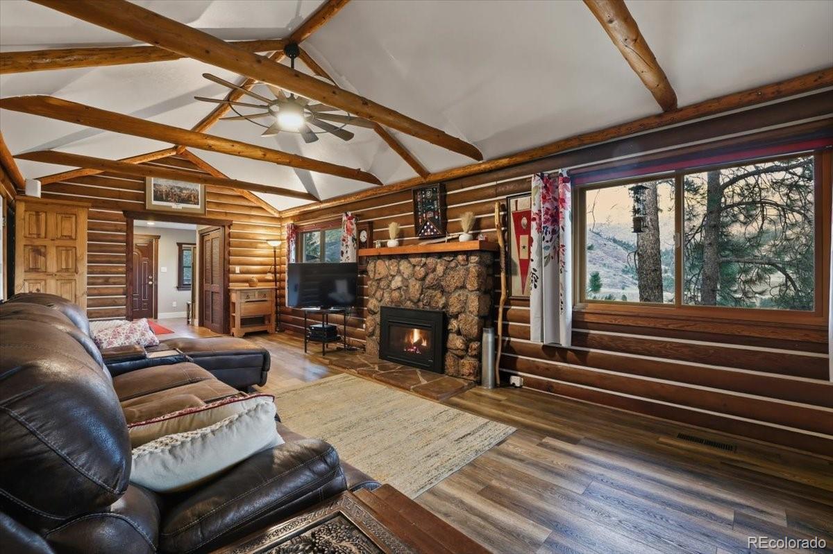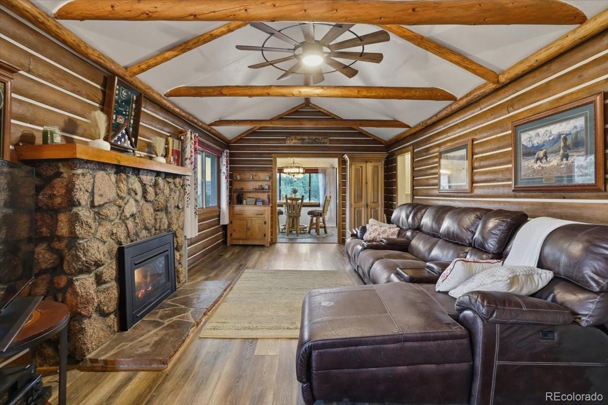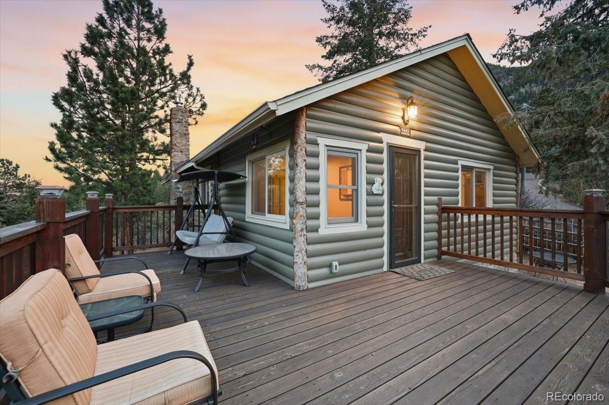 Mountain cabin • Historic log & stone home in Cascade CO 80809 • .47-acre usable flat yard • Garage + 2 sheds on site Discover a timeless log and stone cabin in the heart of Ute Pass just 10 minutes from downtown Colorado Springs. Built in 1928 and lovingly maintained with only three owners, this 3-bedroom home sits on a .47-acre parcel and features a flat, usable yard – a rare find in the mountains. Additions completed in 1956 (rear bedroom & dining area) and 2020 (front bedroom, mudroom, entrance and composite deck) blend vintage charm and modern functionality. The log cabin exterior welcomes you into a cozy mudroom, then into the living room where a full-sized gas fireplace engages at the flip of a switch. The bathroom retains its original claw-foot tub while featuring new sink, cabinetry and finishes. Wrap-around dining-room windows capture forest views and hummingbirds. Outside, enjoy a new front composite deck and a rear stone patio; plus three out-buildings including a detached garage (rare mountain convenience) and two newer sheds (one with dog run). Upgrades include new roof, new windows/doors, updated electrical panel, new kitchen sink/countertop, new flooring and more. Located minutes to Woodland Park and just 3 mi to Highway 24, this home offers easy access to hiking, fishing, boating, climbing — yet feels remote and rustic. Historic cabin character meets modern upgrades and major systems — time to make your mountain-home dream a reality.