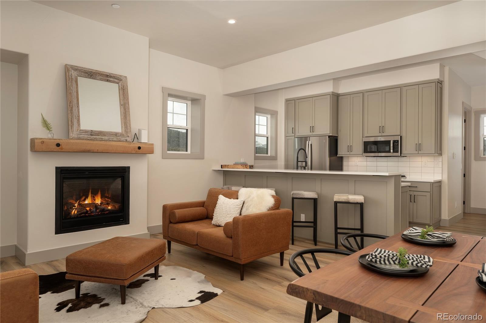 Tucked against a serene hillside in the coveted Grand Elk golf community, this brand-new 3-bedroom townhome offers the perfect blend of luxury, comfort, and convenience—ideal as a primary residence or a second home getaway. Thoughtfully designed with high-end finishes throughout, it features GE appliances, quartz countertops, and elegant modern touches. Each of the three bedrooms is a private suite, providing comfort and seclusion for family and guests. Enjoy peekaboo mountain views and every level has a walkout balcony or deck that invite you to relax and take in that mountain sunshine Located within walking distance to the Grand Elk Clubhouse, residents have easy access to exceptional amenities including the golf course, pro shop, restaurant, swimming pool and hot tub. Design & Customization • Customizable floors and countertops with Good, Better, Best options • Real hardwood floors with choice of stain • Floating bathroom cabinets with touch mirrors • Black hardware accents throughout • Ceiling beams for architectural detail Kitchen Excellence • Wider kitchen island — comfortably seats four • Panel Ready Refrigerator • All Bosch appliances included • 30-inch range with microwave over range • Farm house sink (optional) single or double bowl Living & Entertaining • Limestone fireplace surround with 4’ x 6’ metal mantle • Under stairs glass enclosed wine storage • Ceiling fans in the great room and primary bedroom Outdoor Features • Stone composite deck — slip resistant and heat resistant • Contemporary railings • Optional swing bench at entry Additional Features • Tankless hot water heater • Blinds and washer/dryer included • Additional lighting for enhanced ambiance indoor and outdoor
