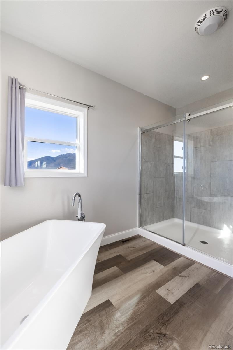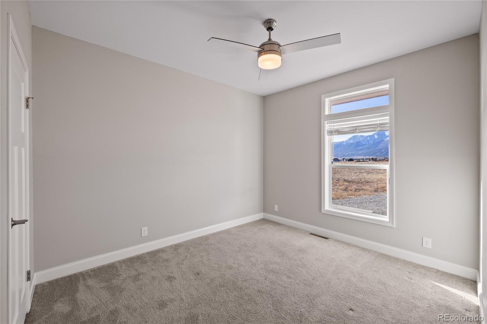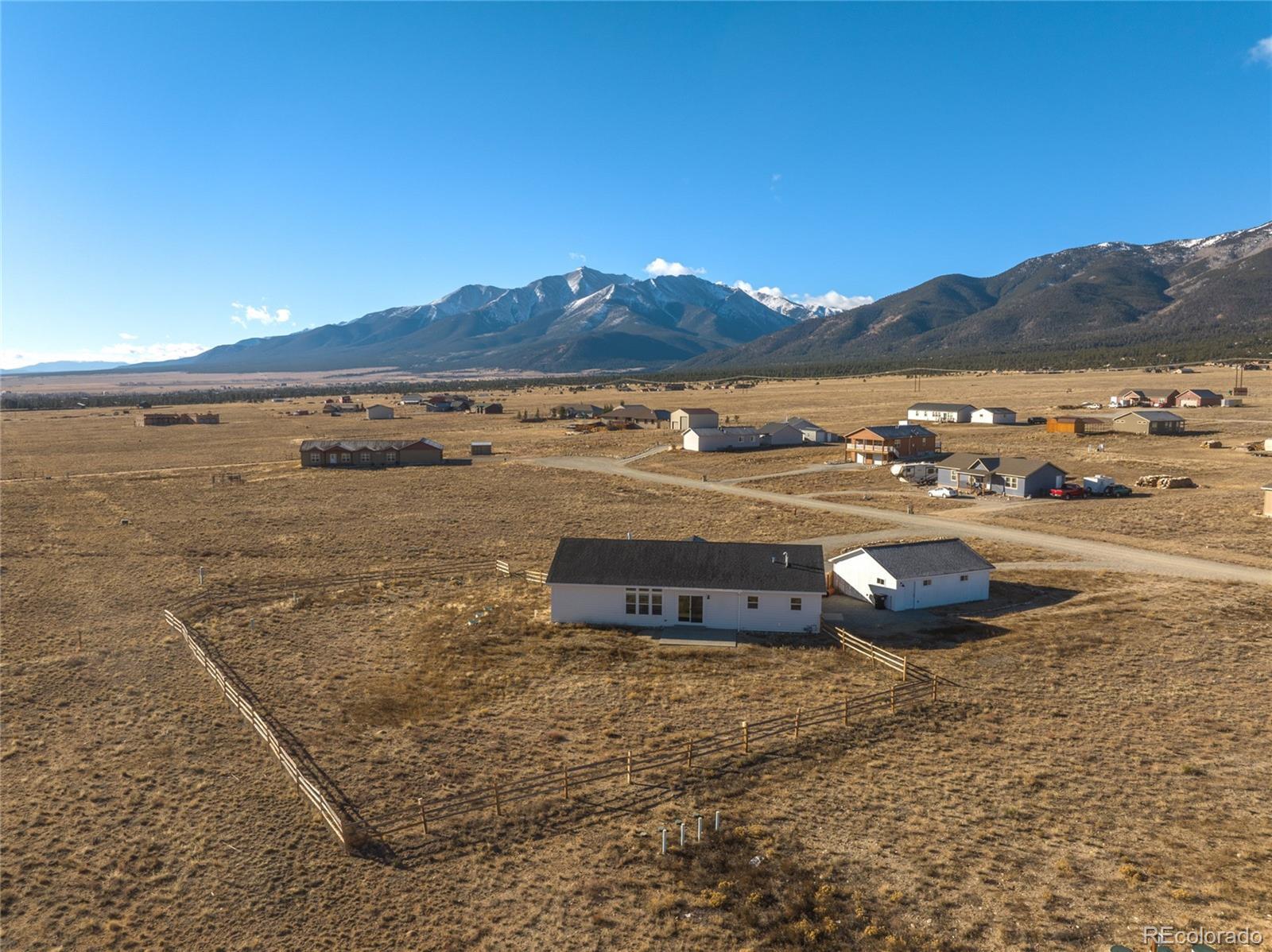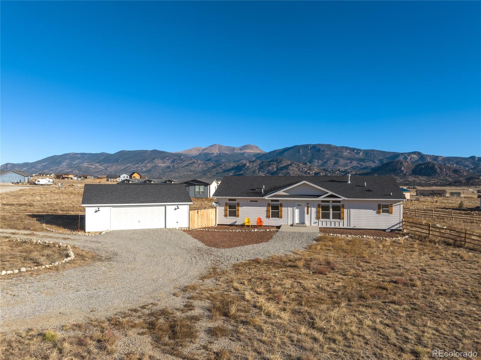 Experience bright, low-maintenance mountain living in this 2021-built, move-in-ready home—a standout value for newer construction in Buena Vista. Offering 3 bedrooms, 2 full baths, and 1,830 square feet, this thoughtfully designed home captures sweeping 360° mountain views with a sun-filled, south-facing orientation that brings in natural light all day long. The living room is a welcoming focal point with tall ceilings, a gas log fireplace framed by built-in shelving, and unobstructed Mount Princeton views. A desirable split-bedroom floor plan provides privacy, with the primary suite set apart from the guest bedrooms. The spacious primary retreat features a walk-in closet and a 5-piece bath with double sinks, soaking tub, and separate shower. Designed for both everyday living and entertaining, the kitchen offers a large granite island with bar seating, ample cabinetry, stainless shelving, and a natural gas range with hood vent. An adjacent flex space easily functions as a dining area or home office. Durable LVP flooring flows through the main living areas, while generously sized bedrooms provide comfortable, carpeted spaces with ceiling fans. A sliding door opens to the back patio for easy indoor-outdoor living, and the oversized mudroom adds exceptional functionality with laundry, storage, and space to transition after outdoor adventures. Outside, enjoy low-maintenance zeroscaping, a gravel driveway, and a fully fenced backyard ideal for pets or play. A true bonus for mountain living, the oversized detached two-car garage includes electricity and newly installed windows—perfect for vehicles, gear storage, or workshop space. Located less than five miles from downtown Buena Vista and just minutes from trails, hot springs, and the Arkansas River, this turn-key, newer-build home offers modern systems, energy efficiency, and peace of mind—paired with exceptional views and lifestyle access at a compelling value.