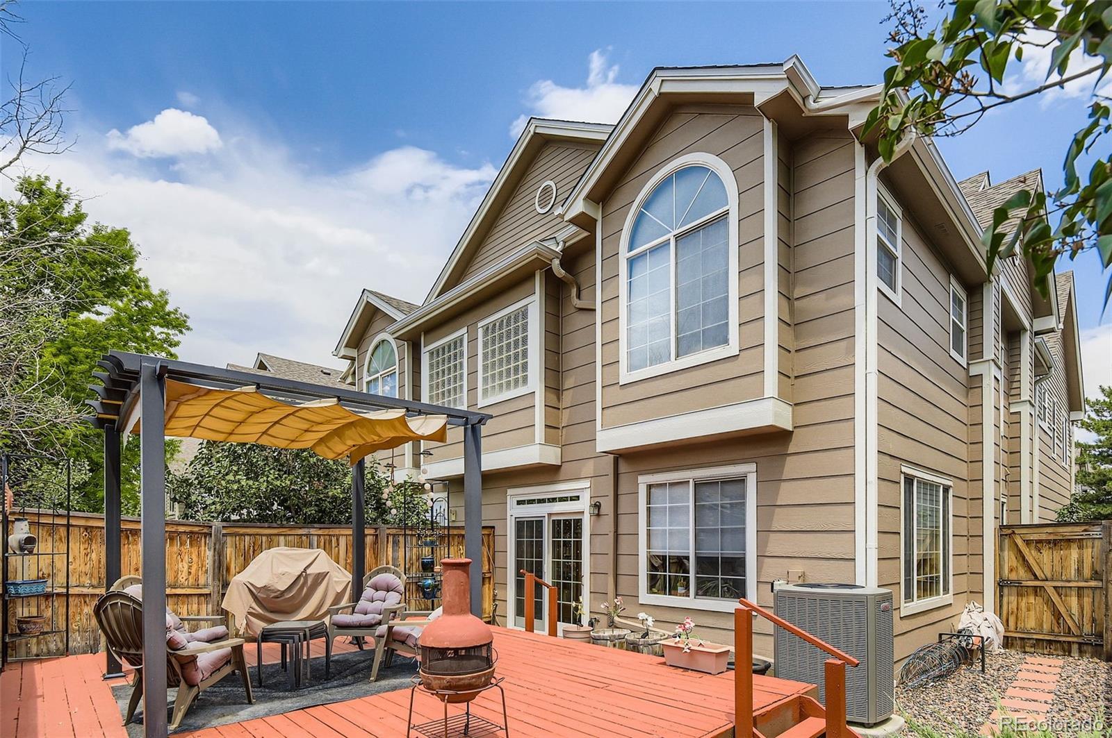 Welcome to 1359 Carlyle Park Circle, ideally located in the heart of the Highlands Ranch community. ALL NEW interior paint throughout! This well-maintained townhome in the sought-after Carlyle Park community offers three bedrooms and three bathrooms with 1,566 finished square feet. The main level features an open layout with new laminate flooring, large windows, a cozy fireplace, and a main-floor powder room. The updated kitchen features abundant counter space and modern appliances with direct access to the large, refinished back patio with a covered pergola. Upstairs, you'll find all three bedrooms, including a spacious primary suite with a double vanity in the connected bathroom. In addition, upstairs, you will find two bedrooms that could also be used for home offices and another full bathroom. The home boasts abundant natural light, an open layout, and a beautiful updated back patio. Other highlights include a two-car attached garage, a new roof installed in 2023, and an HVAC system that's only five years old. The property is situated in a quiet neighborhood with a private HOA pool, providing a serene and enjoyable living environment. Highlands Ranch residents can access four recreation centers, miles of maintained trails, and many parks to enjoy. Conveniently located near UCHealth Highlands Ranch Hospital, Children’s Hospital, Chatfield Reservoir, and scenic walking trails, with quick access to C-470, this townhome offers the best of Colorado living. Don’t miss out on this turnkey-ready home!