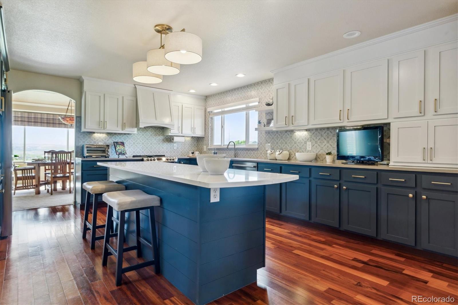 Tucked away on 5 peaceful acres backing to open space, this stunning Parker home offers the perfect blend of privacy, comfort, & style—with mountain views & unforgettable sunsets that frame your days. From the moment you arrive, the inviting front patio sets the tone for relaxed, Colorado living. Step inside to a beautifully updated interior with fresh paint, new roof, & Andersen windows that flood the space with natural light. Rich hardwood floors flow throughout the main level, complemented by brand-new carpet & soaring ceilings. A spacious main-floor office w/double doors offers the flexibility to serve as a sixth bedroom. The formal living & dining rooms feature a picture window perfectly framing the views beyond. In the heart of the home, the remodeled kitchen is both elegant & functional, showcasing soft-close custom cabinetry, quartz countertops, a designer backsplash, a large island with seating, trendy lighting, & a sunny dining nook. The adjoining family room is expansive & filled with light, centered around a stunning stacked-stone fireplace. The mud/laundry room has been completely reimagined with a farmhouse sink, high-end cabinets, built-in bench seating, & access to the oversized 3-car garage. Upstairs, the primary suite is your personal retreat with a private deck, cozy see-through fireplace, soaking tub, floor-to-ceiling tiled shower, & walk-in closet. Three additional bedrooms offer unique charm, including a window seat with built-in storage, & share a fully remodeled Jack & Jill bath. Head to the walkout basement where fun & flexibility abound—space for a game area, movie nights, workouts, & a fully enclosed workshop loaded with outlets. A second suite w/fireplace & ensuite bath is ideal for guests or multigenerational living. Outdoors, enjoy a fenced yard, two sheds, wide open skies, & the freedom of space—just minutes from downtown Parker’s dining, shops, & community events.