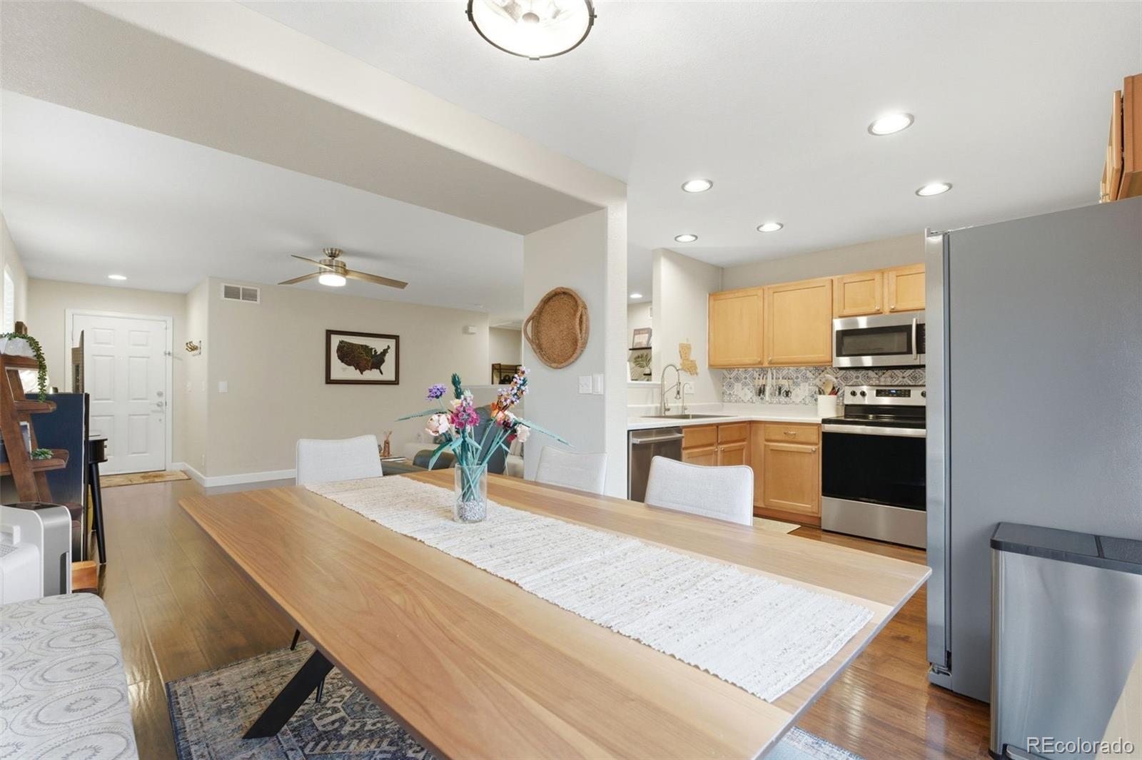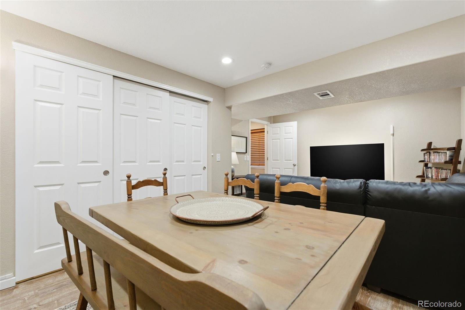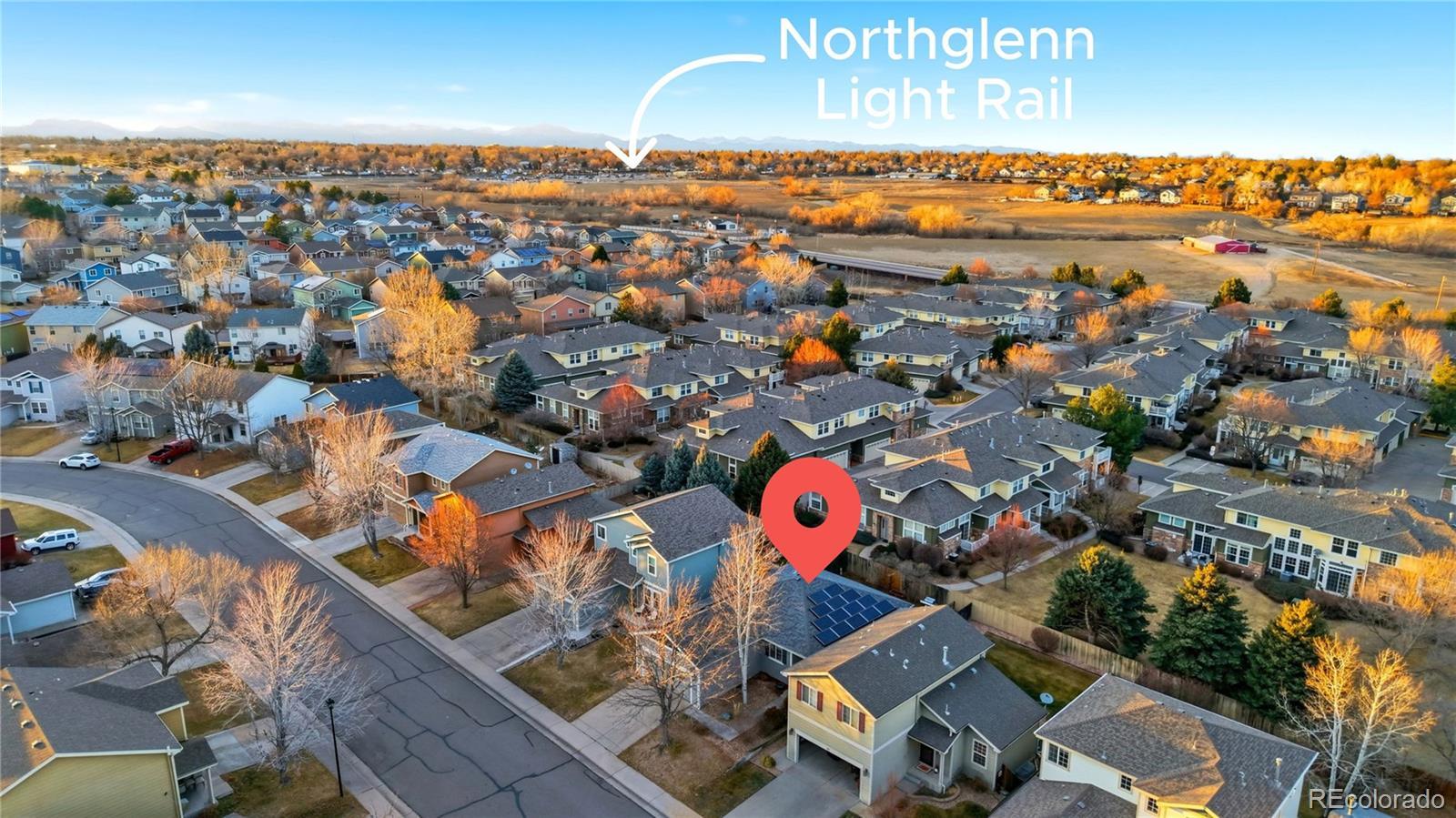This is your chance to own in the desirable Fox Run community of Northglenn! This well-maintained, ranch-style home offers a functional layout with ample living space on the main level and additional flexible space in the partially-finished basement. The home features easy, one-level living with 3 bedrooms (Primary suite and 2 secondary bedrooms), 2 bathrooms, and laundry all on the main floor. The basement room can be a fourth bedroom or recreation room, and there is additional space to either finish out, with plumbing already roughed -in, or use as storage or possibly a home gym. Durable and low-maintenance luxury vinyl plank (LVP) flooring has been installed throughout the house. Enjoy meals together in the cozy, eat-in kitchen with built-in bench seating. Relax in your private yard with flagstone patio and privacy fencing. Feel secure with an integrated security camera system and exterior lighting included with the house. Fiber internet connections were also recently installed in the neighborhood providing access to lightning-fast internet. This location is unbeatable, and is ideal for commuters with close proximity to RTD public transit. The Northglenn/112th Avenue N Line light rail station, which runs directly to Denver's Union Station, and bus routes are less than one mile away. I-25 is just a few minutes drive away as well. Outdoor and recreation amenities are just minutes away, including the Carpenter Recreation Center and Carpenter Park (which hosts Thornton's 4th of July fireworks show), other nearby parks, and an extensive trail system ideal for walking, biking, and enjoying Colorado’s outdoor lifestyle. The home also comes with leased solar panels to supplement your electric bill and sit on a roof that was replaced in 2022 and is under warranty until 2027. There is too much to include in the listing description. Schedule a showing to see all this wonderful home has to offer!