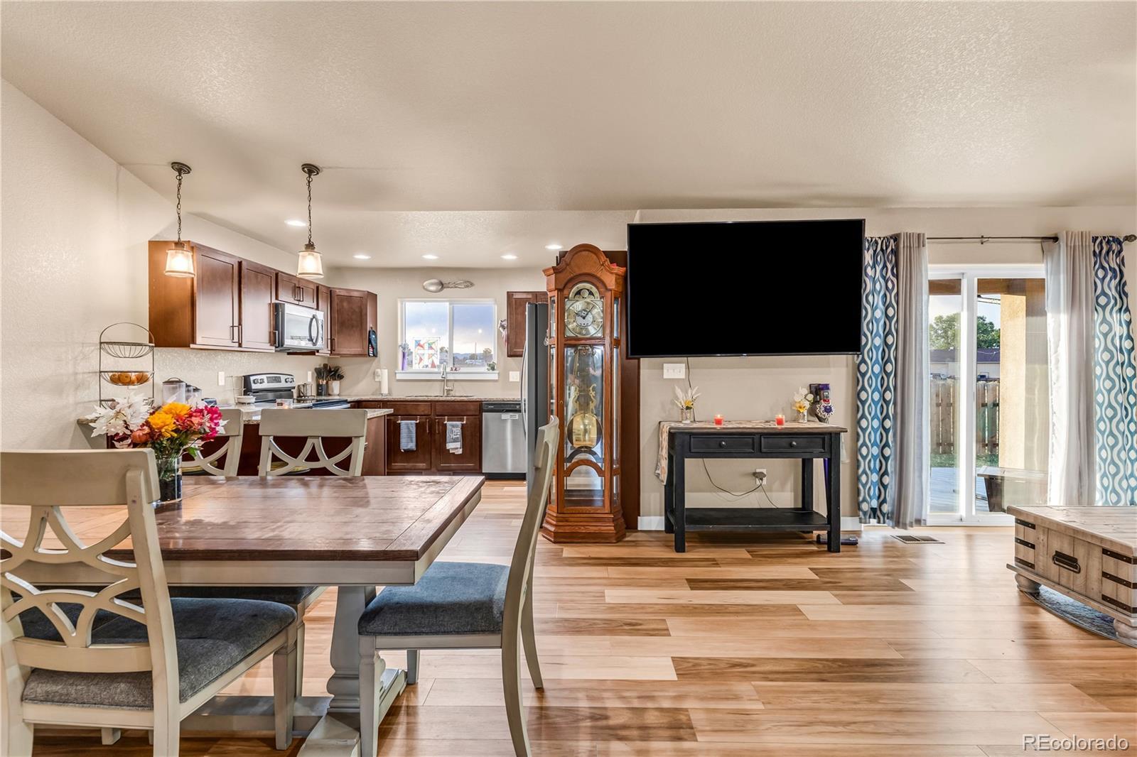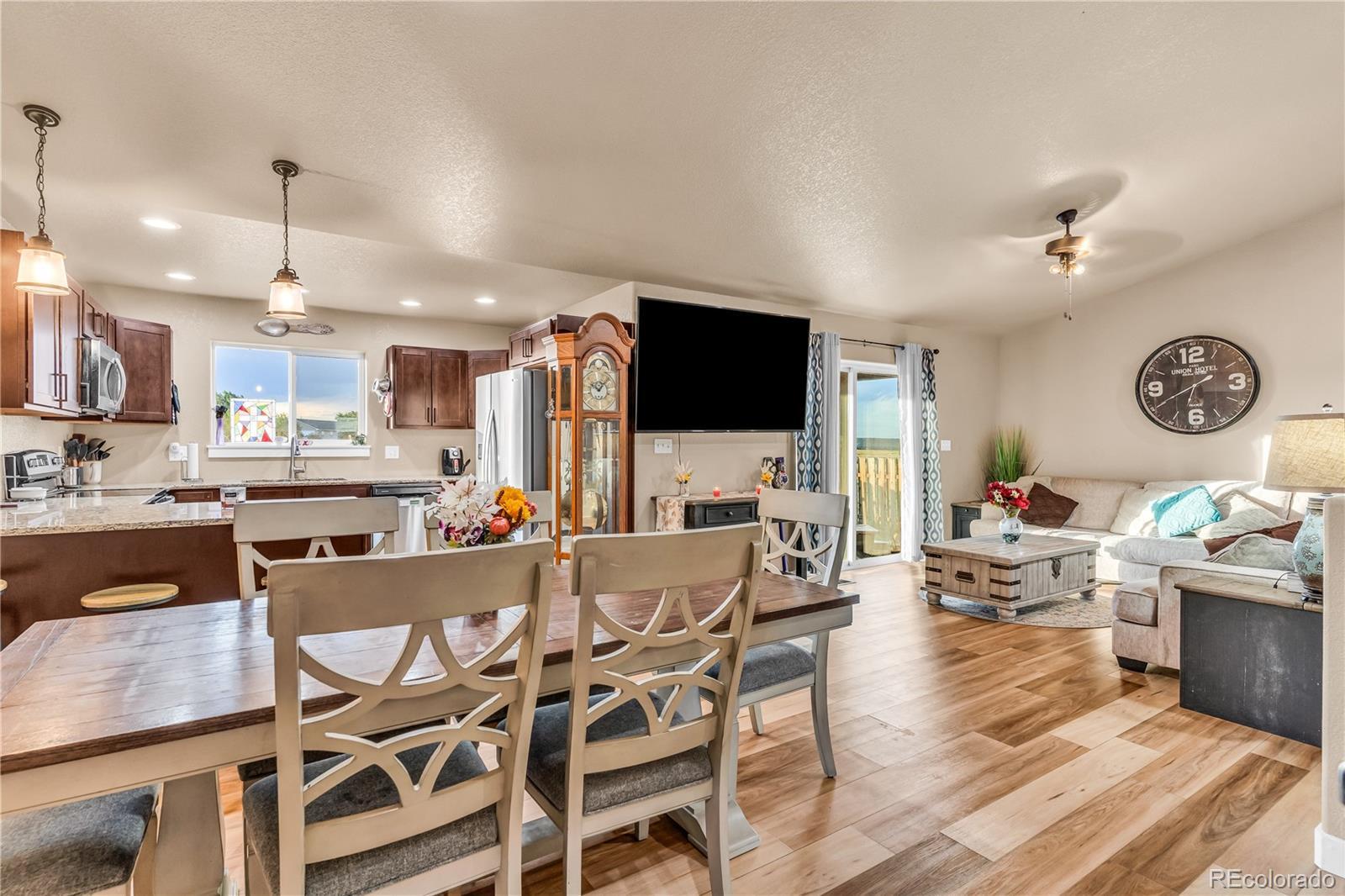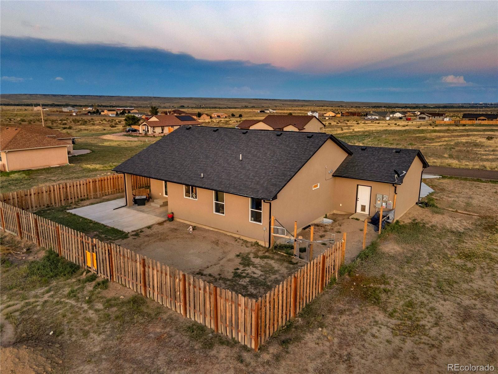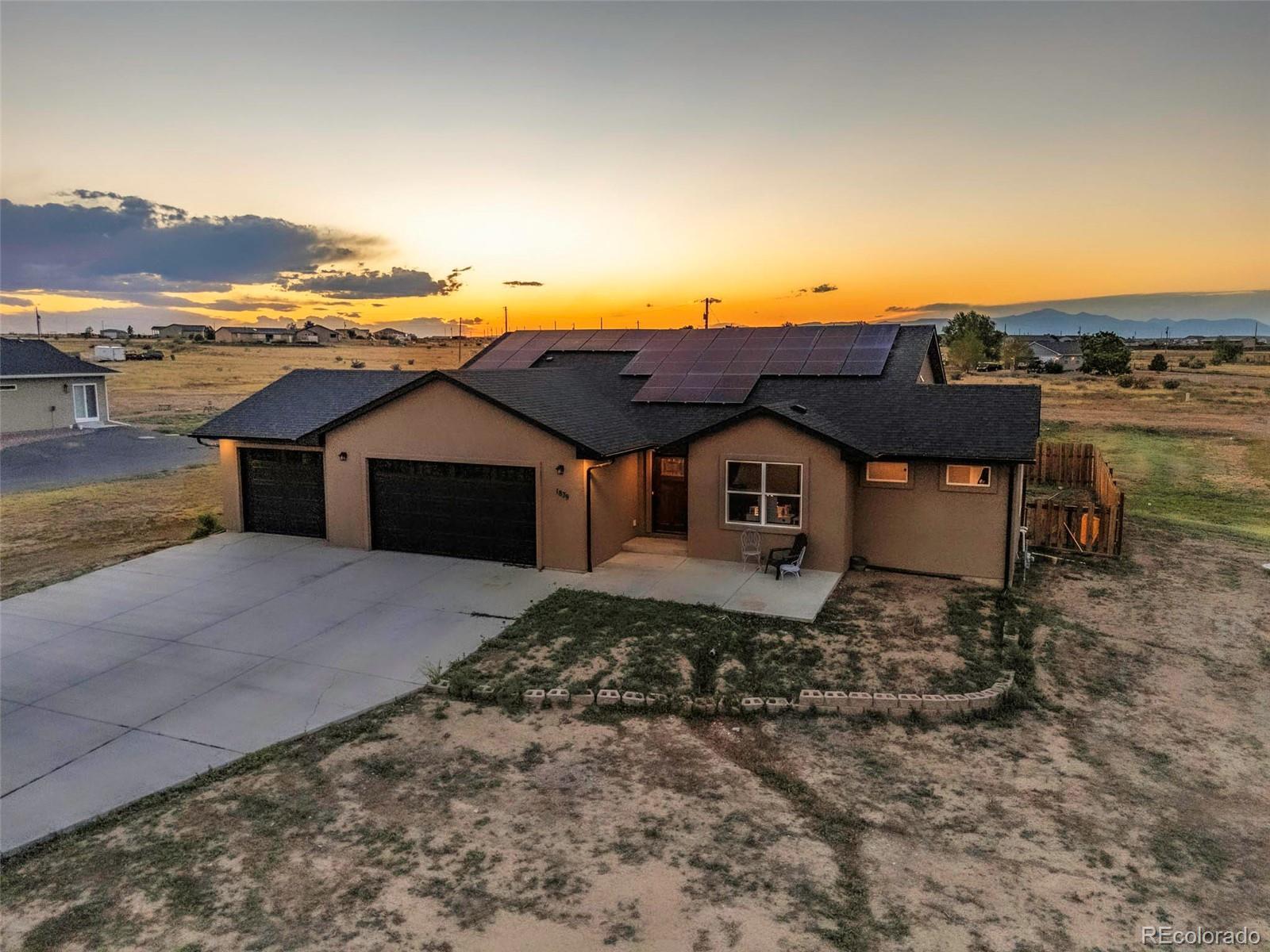 Built in 2022 and meticulously maintained by its original owner, this stunning 5-bedroom, 3-bathroom home offers over 3,200 sqft of thoughtfully designed living space. Situated on a 1.11-acre lot and is just minutes from I-25, making it a convenient commute to Colorado Springs. This home is packed with high-end features, including luxury vinyl and tile flooring, granite countertops throughout, vaulted ceilings, and an open-concept design that invites natural light and spaciousness. The kitchen is complete with island seating, stainless steel appliances, and ample counter space and cabinetry. The primary suite boasts a large walk-in closet and a luxurious master bath with a tiled shower, dual spa shower heads and double sinks. A split level concept allows for 2 private bedrooms down the hall with their own 3/4 bath. Downstairs, enjoy a fully finished basement featuring two additional bedrooms, 3/4 bath, spacious living area, and a custom wet bar perfect for entertaining. The home also includes a generous mud/laundry room, upgraded cabinetry, premium hardware, a 98% efficiency furnace, on demand hot water heater, solar panels for a $25 electric bill and a 3-car attached garage. The backyard has a covered patio and is fenced for privacy and entertainment. The property allows for horses and backs up to PW Equestrian trails, which allows for more open space and distance from neighbors (no one can build behind). Comfort, style, and function come together in this move-in-ready gem.
