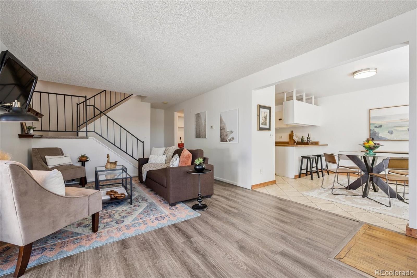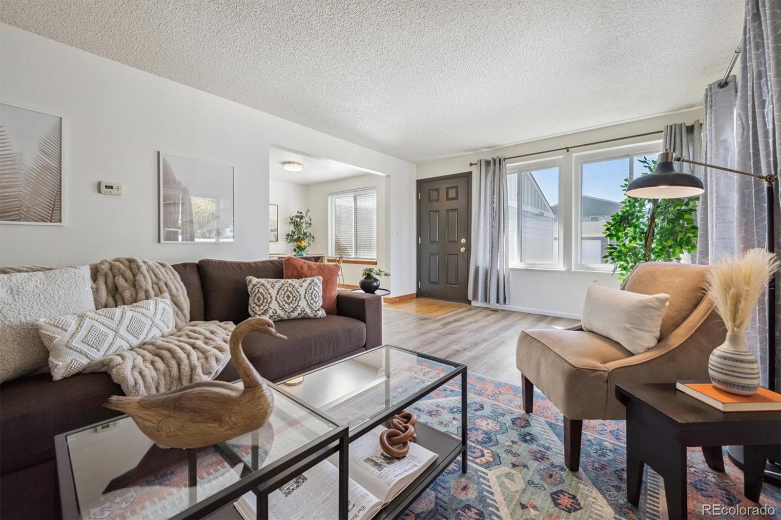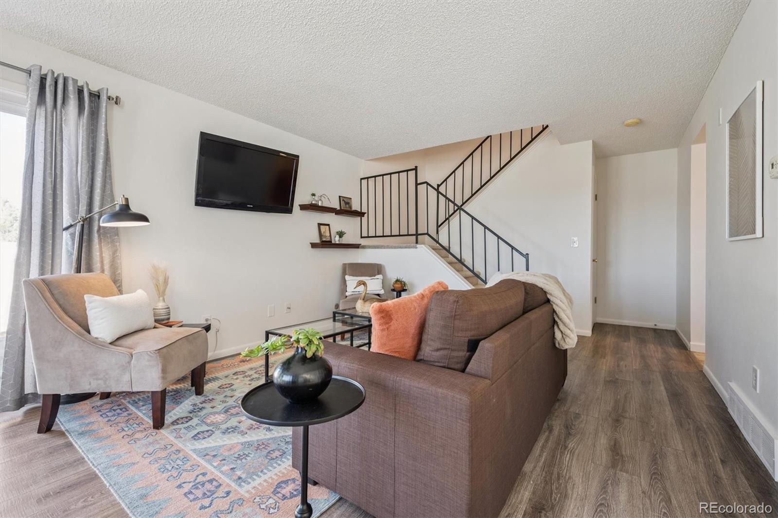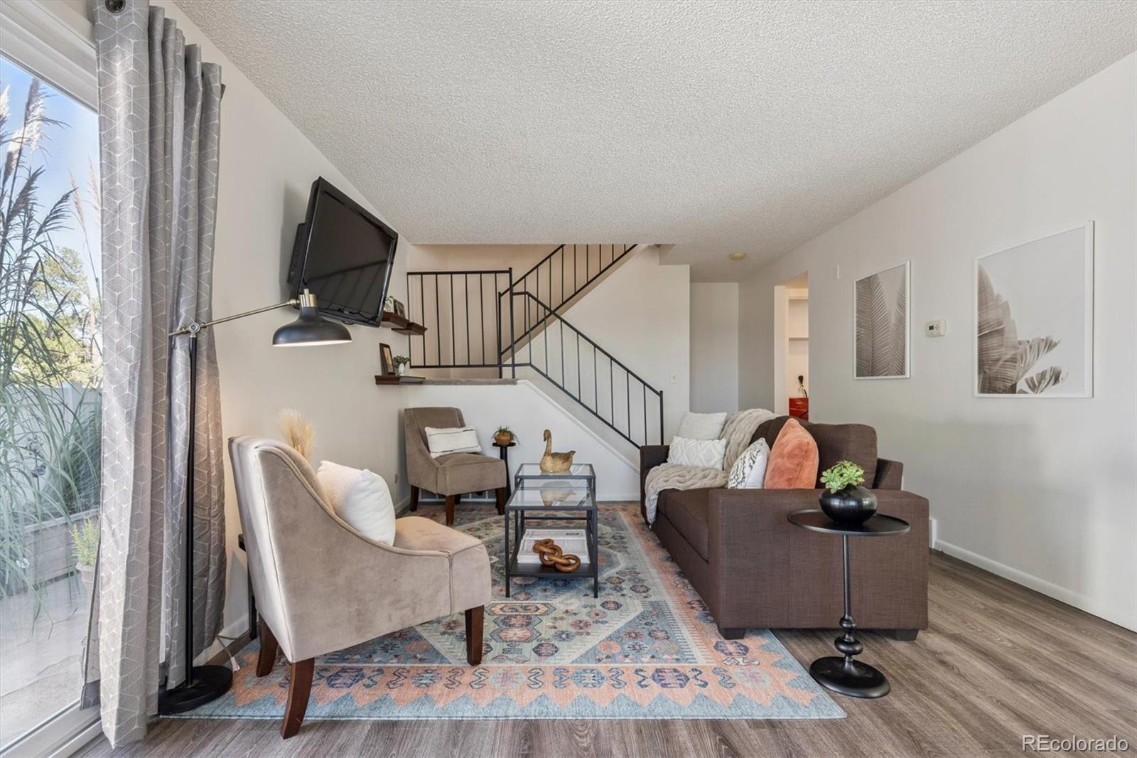 Welcome home to this beautifully updated 2 bedroom, 2 bath end unit that perfectly balances comfort and convenience. Step inside to find brand-new flooring, fresh paint, and newer windows with updated treatments, giving the home a bright, comfortable feel. Enjoy your morning coffee or evening unwind on the private patio, complete with above-ground planter boxes ready for your favorite flowers or herbs. The 1-car garage plus extra parking make day to day parking easy and stress free. All appliances are included, so you can move right in and start enjoying your new space. With a low HOA, you’ll appreciate affordable living without sacrificing quality. Ideally located near the grocery store, dining, and the local hardware store, and offering easy access to I-25, this home is ideal for anyone looking to blend comfortable living with everyday convenience in a great community.