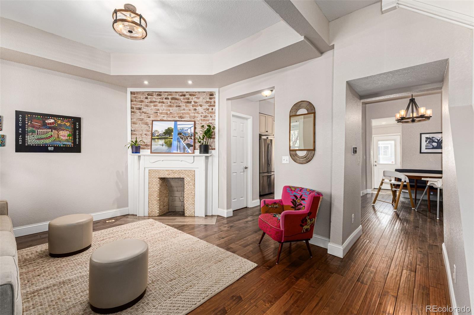 Located in the heart of Denver’s vibrant Cole neighborhood, this beautifully updated single-family home offers the perfect blend of charm, functionality, and an unbeatable location. Just one block from neighborhood favorites like Yacht Club and Brasserie Brixton, and two blocks from the 39th Avenue Greenway, you’ll enjoy easy access to parks, coffee shops, and some of the area’s best local spots. Inside, the main floor features a welcoming living room and dining room, along with a thoughtfully designed kitchen complete with ample cabinetry, an induction range, and a central island ideal for cooking and gathering. A mudroom, laundry area, and convenient half bath add everyday practicality. High ceilings and large windows bring ample sunlight to every room. Upstairs, the spacious primary suite includes a walk-in closet and a beautifully appointed bathroom with dual vanities and a large shower. Two additional bedrooms with generous closets and a full bath complete the upper level. The basement offers flexible additional living space, perfect for a media room, home office, or guest area, along with a bedroom nook and plenty of storage. Outside, the xeriscaped yard with garden beds provides a low-maintenance outdoor retreat, while the detached two-car garage equipped with EV chargers offers rare convenience for the area. Recent updates include: furnace, A/C, oven, dishwasher, and more—making this move-in ready home an exceptional opportunity in one of Denver’s most dynamic neighborhoods.