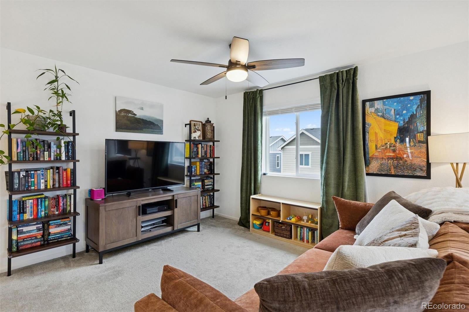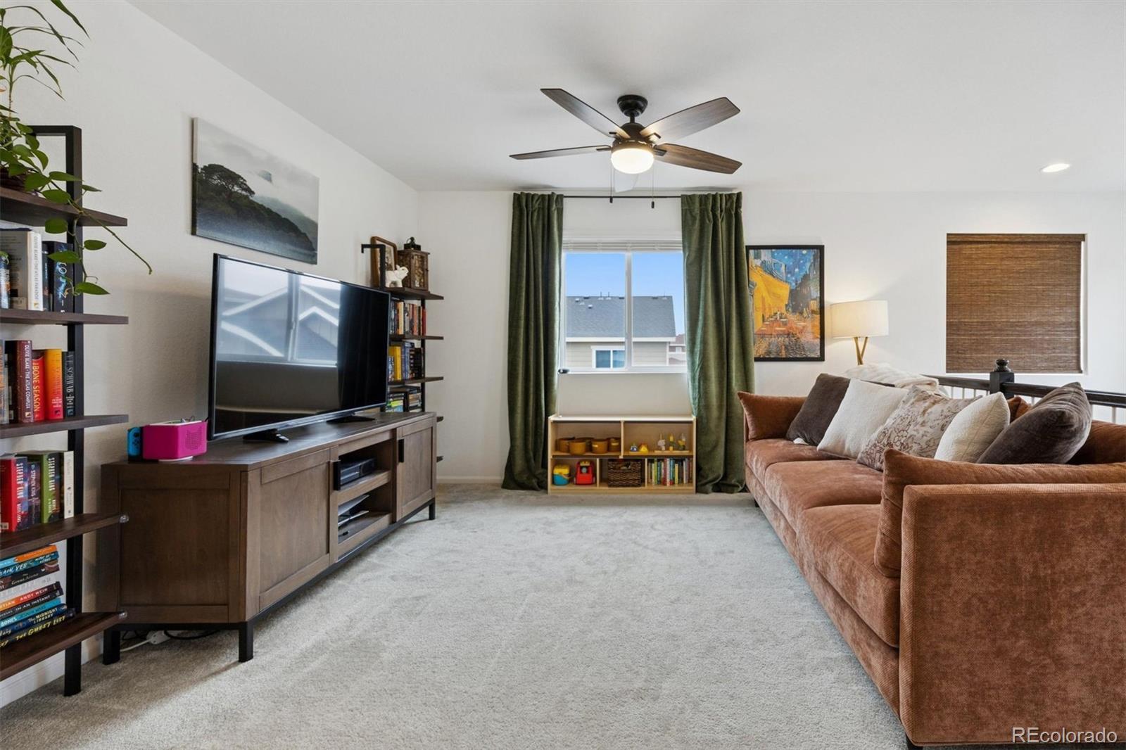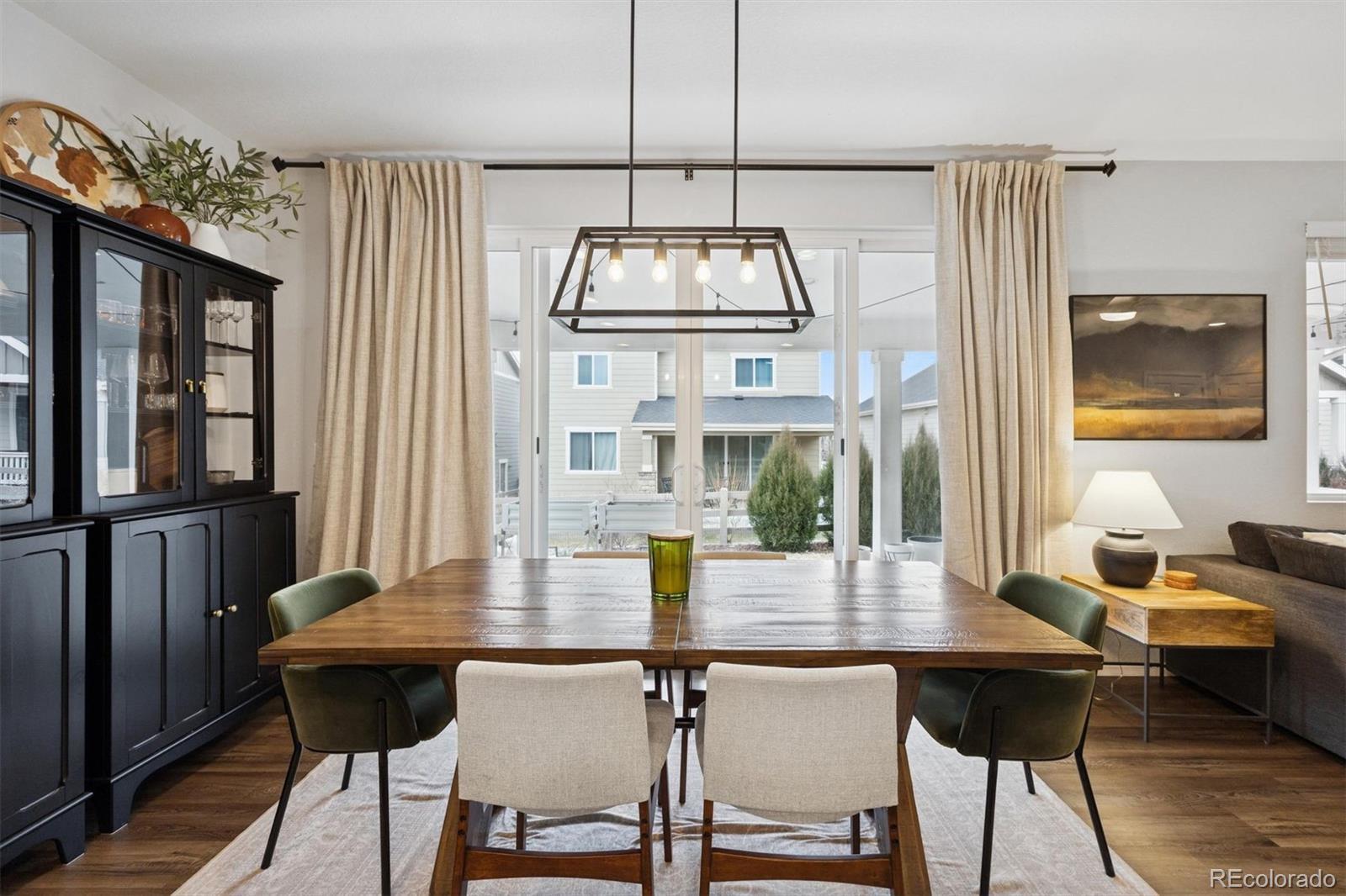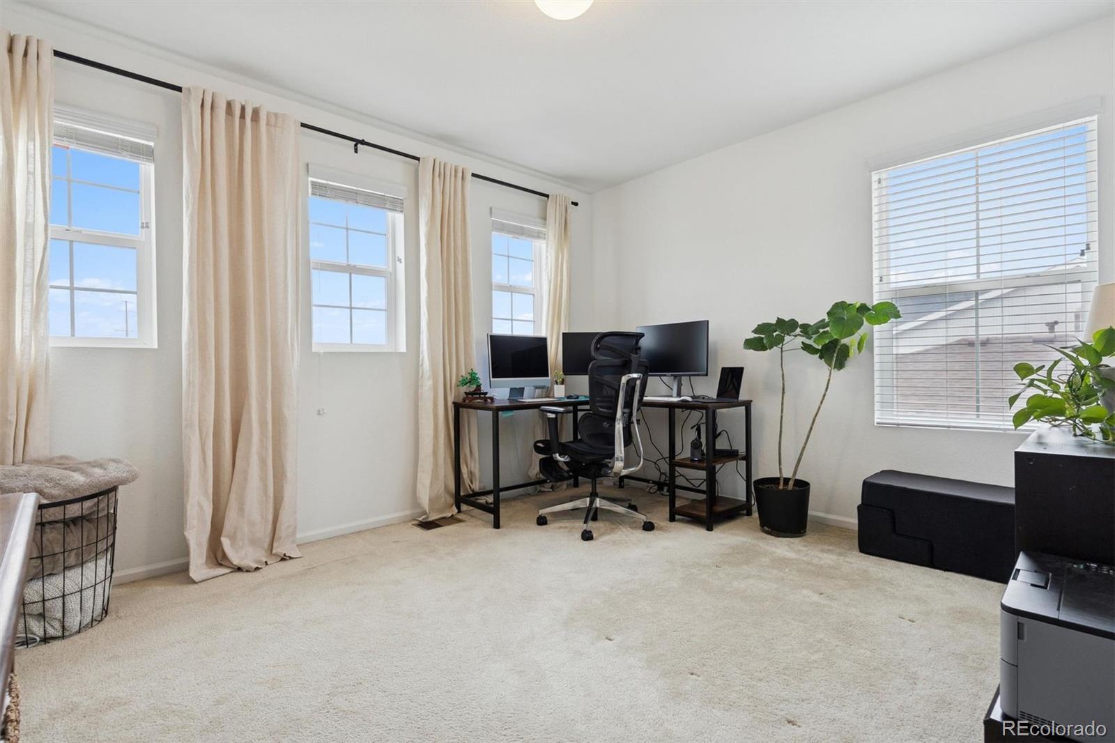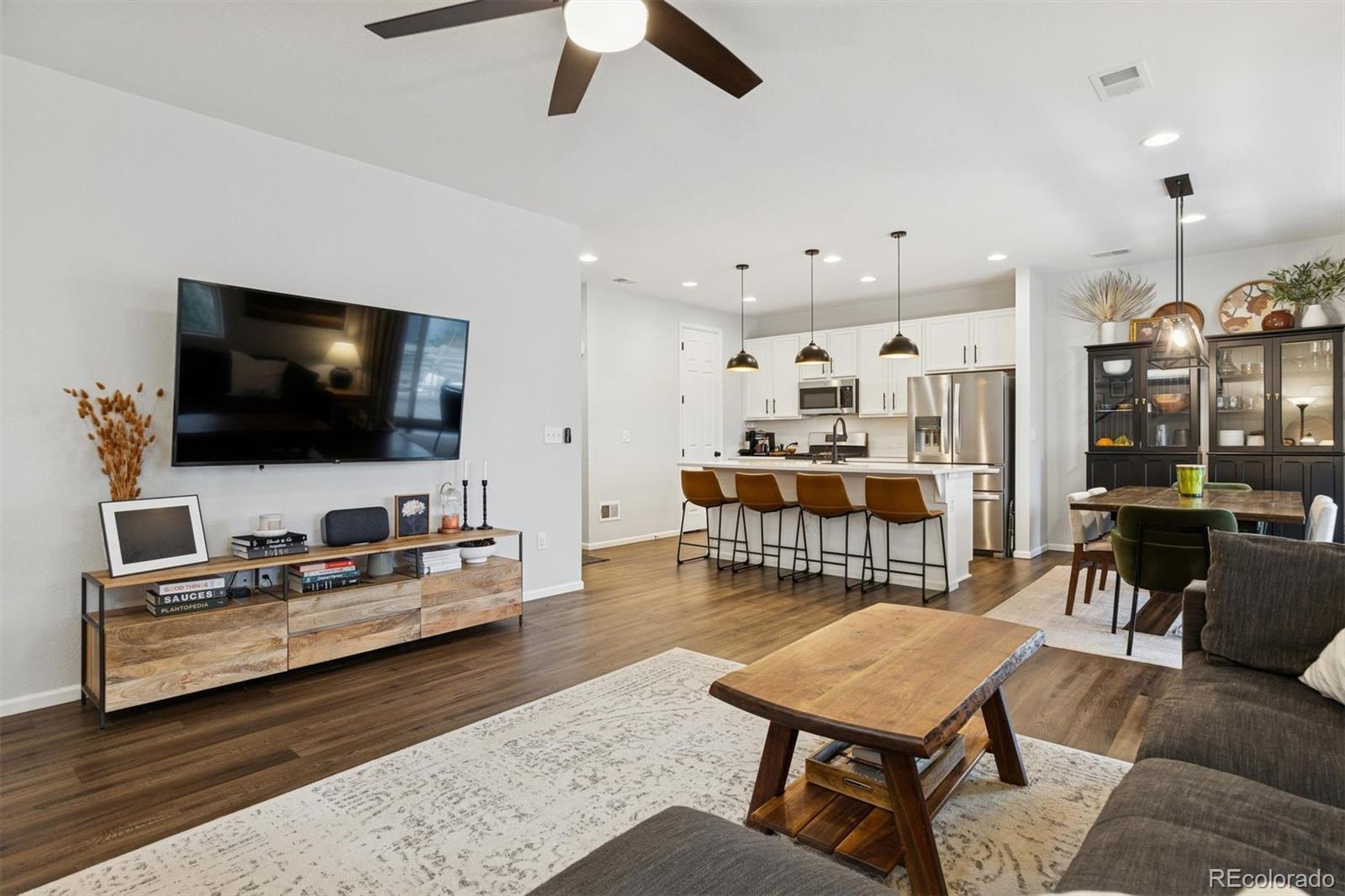 A Better-Than-New Residence in Sterling Ranch Welcome to this impeccably maintained two-story home, ideally positioned in the heart of Sterling Ranch—one of Littleton’s most coveted master-planned communities. Thoughtfully designed and beautifully executed, this residence offers 1,910 square feet of refined living space, featuring three bedrooms and three baths, where modern sophistication meets everyday ease. Striking curb appeal is complemented by manicured landscaping, front and rear sprinkler systems, and a fully fenced backyard—an inviting outdoor setting designed for both entertaining and quiet enjoyment. The covered back porch provides the perfect backdrop for Colorado evenings, enhanced by privacy shades that create a tranquil retreat. Inside, the open-concept main level is defined by durable laminate vinyl flooring, plush carpeting, updated lighting and ceiling fans, and custom window coverings throughout. A stylish powder room with a thoughtfully curated accent wall adds a subtle yet distinctive design statement. The gourmet kitchen serves as the centerpiece of the home, showcasing quartz countertops, stainless steel appliances, a generous center island, pantry, and a sun-filled breakfast nook accented by an elegant chandelier—ideal for both casual mornings and elevated gatherings. The upper level offers a versatile loft space, a well-appointed laundry room complete with washer and dryer, and a serene primary suite featuring a walk-in closet with custom shelving and a beautifully finished three-quarter bath with dual vanities. Two additional bedrooms and a full bath complete the upper level with comfort and flexibility. A two-car garage and an exceptional location near miles of trails, neighborhood parks, community amenities, and highly regarded schools complete this offering. Modern. Refined. Exceptionally maintained. This is Sterling Ranch living—elevated.