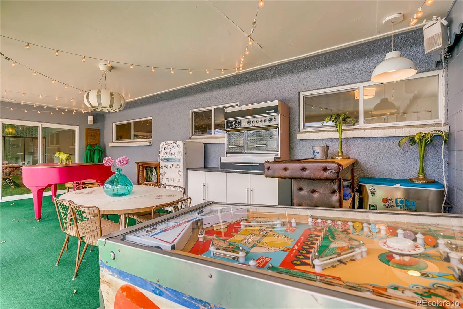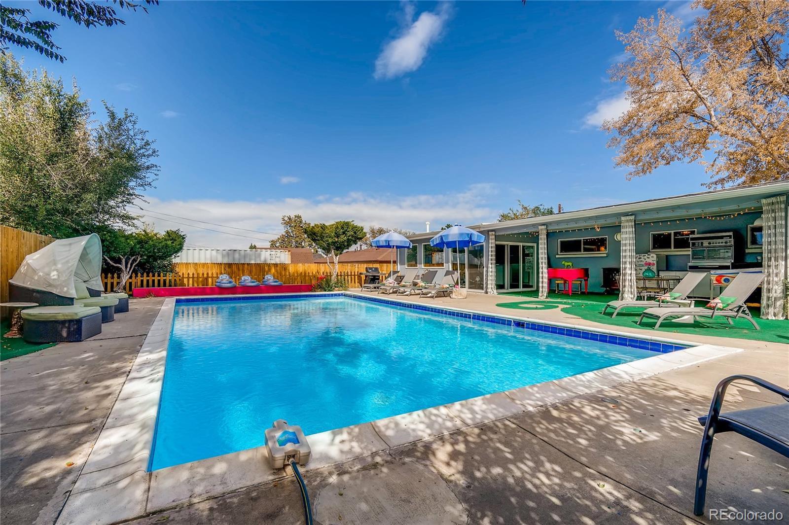 Denver meets Palm Springs in this truly one of a kind Mid-Century Modern home. Owned by famed mural artist Pat Milbery, the home includes an original mural and multiple one of a kind works of art. An extremely private oasis in the city, your entertainer's paradise boasts open floor plan, custom design, and in-ground saltwater swimming pool. The interior has been carefully restored to showcase the original beauty of the home. Features include wood burning fireplace, steam shower, salt water swimming pool, low maintenance exterior, entire house wired for sound indoor/outdoor, and more. Mixed use zoning provides endless options for event center, live/work space, social club, day spa. Host private events or generate income on Swimply and Airbnb. Walk to restaurants and shops on 38th ave, Randall Park, Lakeside amusement park, and 44th ave shopping center. Tennyson st and the Highlands just minutes away. Close to I-70 and easy jumping off point to the mountains. ***Pool has not been used for a few years. Pictures of pool are not current. Pool will require some repair and house is priced accordingly