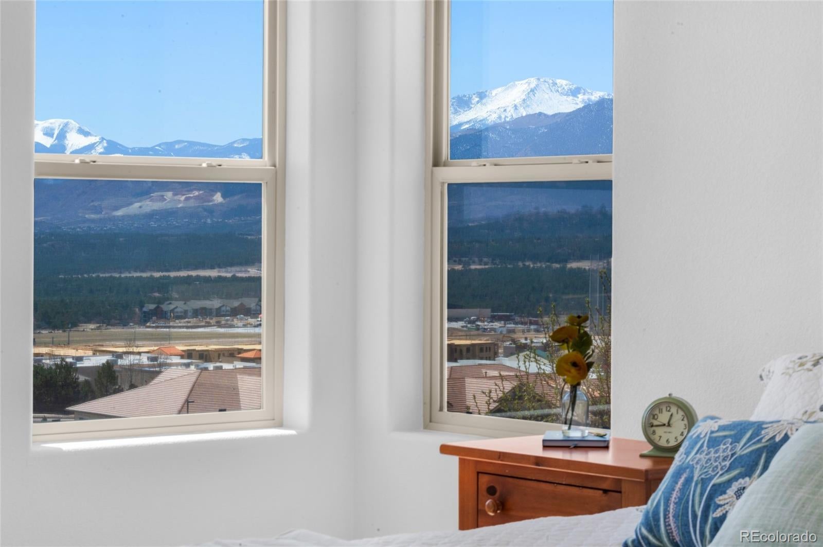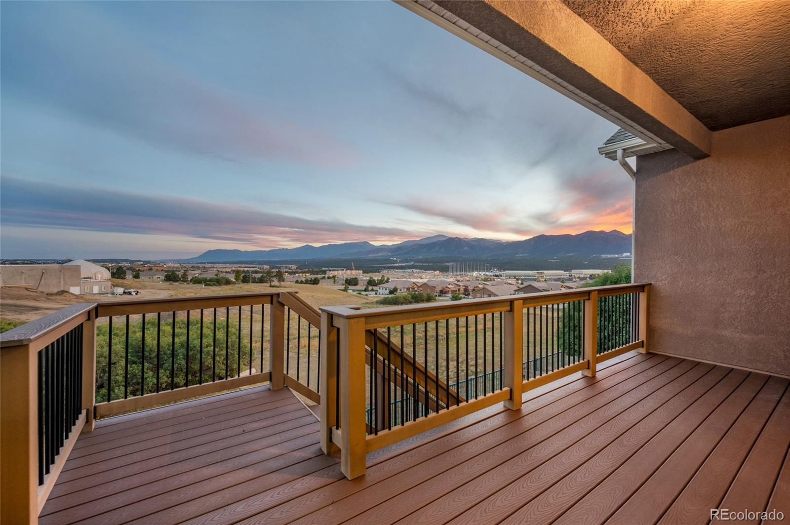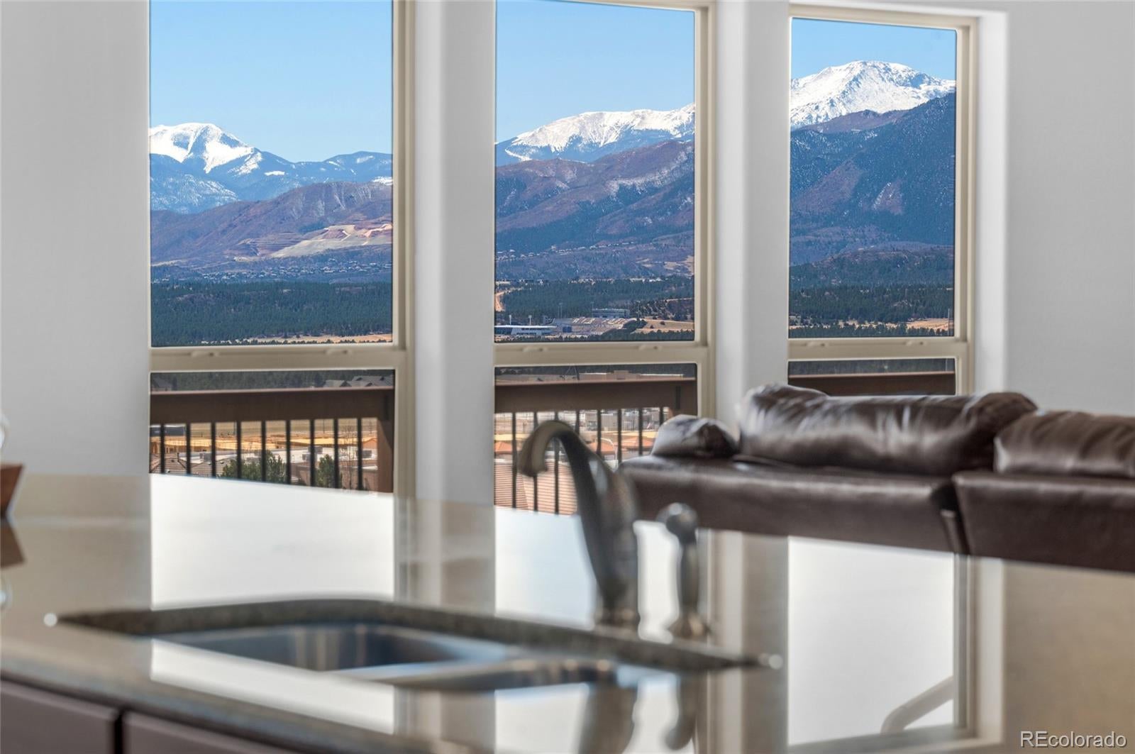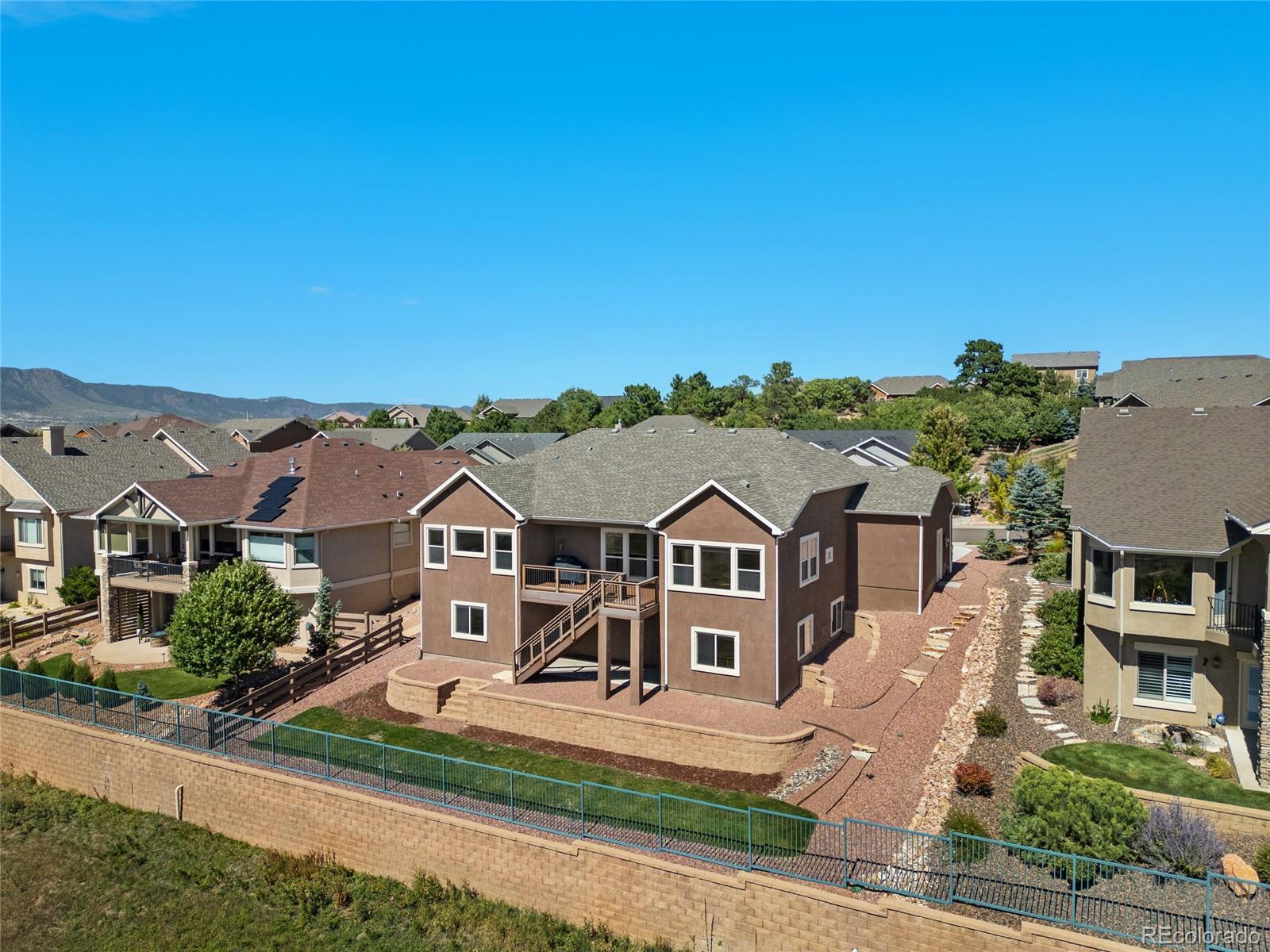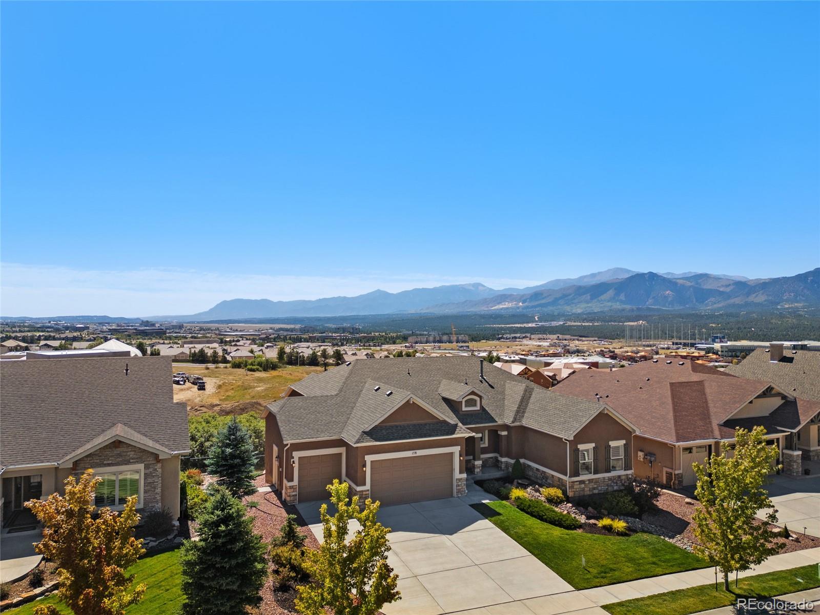 AMAZING VIEWS and PRICE! *Brand new flooring throughout most of main level- more than doubled hardwood square footage!* This striking stucco ranch in the desirable Northgate Estates community offers breathtaking, unobstructed views of Pikes Peak, the Air Force Academy, and the entire Front Range; from Cheyenne Mtn to Northgate. This prime location, near I-25, provides easy access to shopping, trendy new restaurants and go-to entertainment like Top Golf and Overdrive Raceway, and the new Polaris hotel. A soothing water feature in the front yard cordially invites you to the freshly painted entry door. Inside, beautiful new natural Pecan hardwood floors span most of the main level, which features high ceilings, a stone-accented gas fireplace, and desirable open floor plan. The gourmet kitchen boasts granite slab countertops, a spacious dining area, new gas 5 burner cooktop, double oven, large island with seating space, spacious pantry, built-in desk, and plenty of cabinetry. The luxurious master suite includes new hardwood floors, a five-piece bath, spacious walk-in closet with fresh new carpet, and more stunning views to enjoy! Two additional bedrooms and a full bath on the main level opposite the primary room for optimal privacy. The walkout basement, with 9ft ceilings, offers ample storage, a large rec room, two additional bedrooms with a Jack & Jill full bath, wet bar, powder room, and a pre-wired for media bonus flex room, ideal for any crafts/hobbies or use as a non-conforming 6th bedroom (plenty of space to add that closet!) The covered outdoor space includes a composite deck with metal railings, perfect for relaxing and enjoying the spectacular views. Additional features: plantation shutters, central A/C, a humidifier, an oversized three-car garage, and custom blinds. Other recent updates in summer 2024 include new paint throughout interior, including trim & doors, exterior front door, upgraded light fixtures & bath accessories. New water heater Sept 2025.