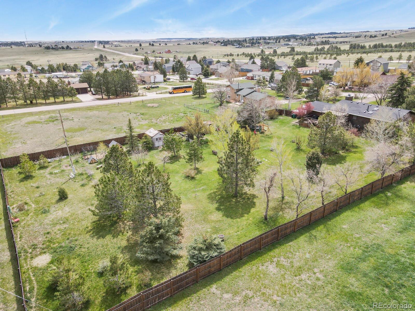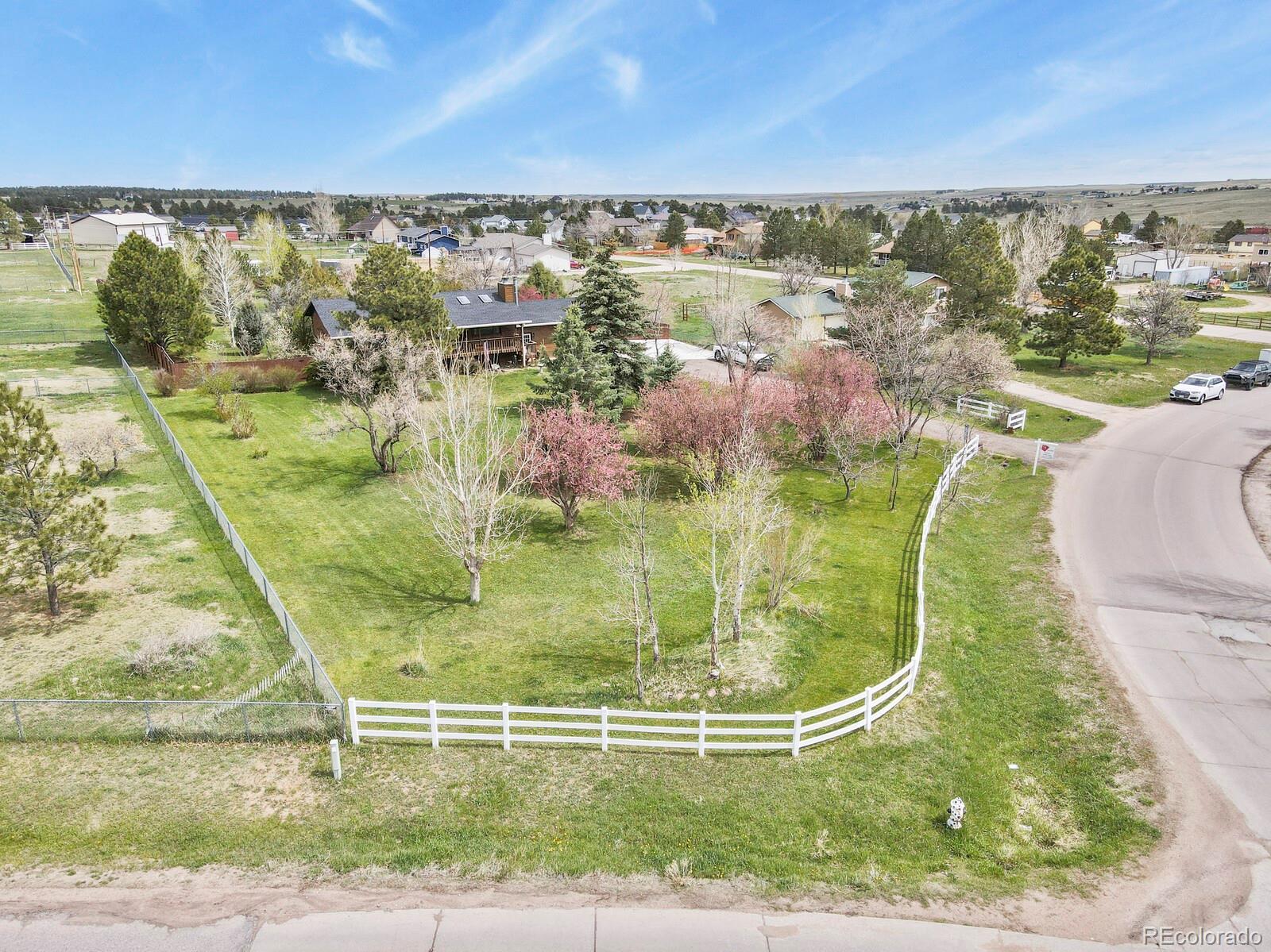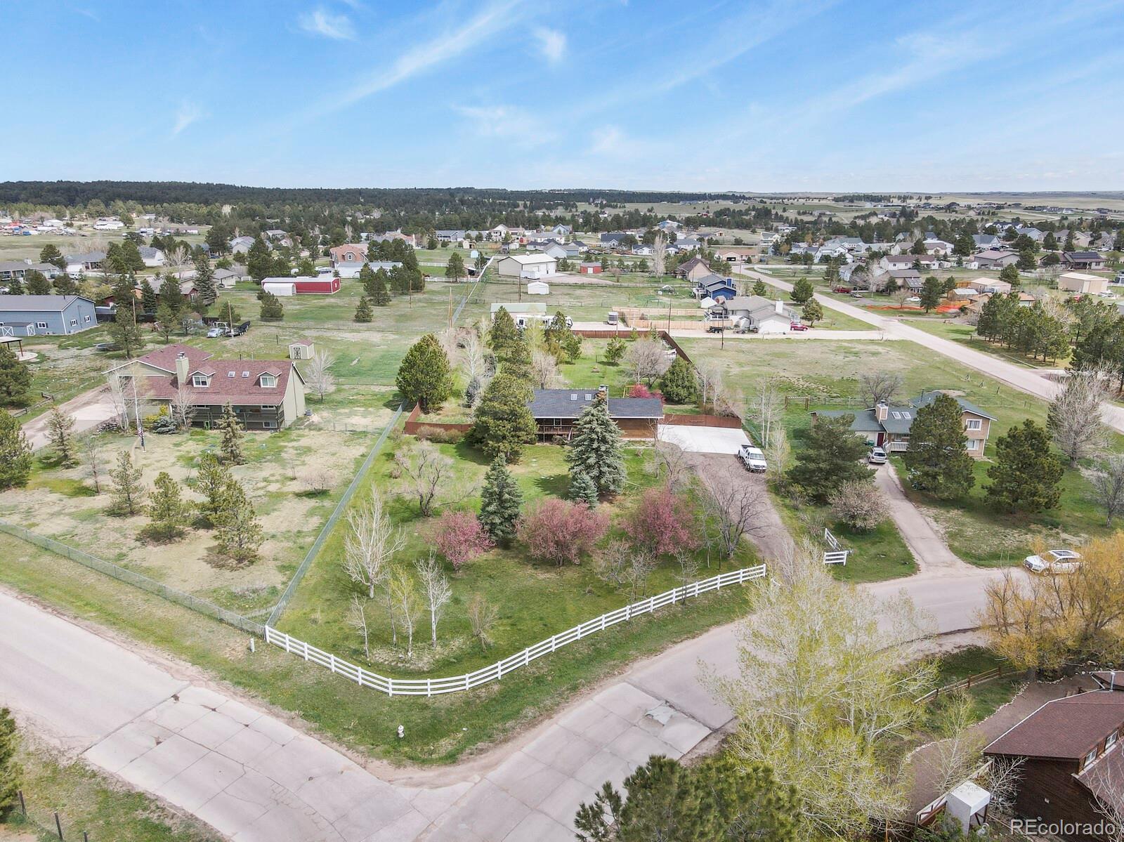Discover tranquility in this stunning 5-bedroom (1 non-conforming), 3-bathroom ranch-style home, offering 2,576 square feet of beautifully finished living space in the peaceful community of Elizabeth. Nestled on over an acre, this treed lot that evokes the serenity of a private park, this property is perfect for those seeking a quiet retreat. The home features a nearly new roof (2 years old) and a brand-new air conditioner, ensuring comfort and peace of mind. Newly poured 36x36 concrete pad for extra parking in front of the garage. Located in a serene, low-traffic neighborhood, this home is part of a welcoming community known for its rural charm and tight-knit feel. Elizabeth offers a small-town atmosphere with easy access to local amenities, including charming shops, dining, and seasonal events like the Stampede Rodeo and Friday Night Markets. With low Elbert County taxes and no HOA, this quiet community provides the perfect blend of privacy, space, and modern convenience for a relaxed Colorado lifestyle.