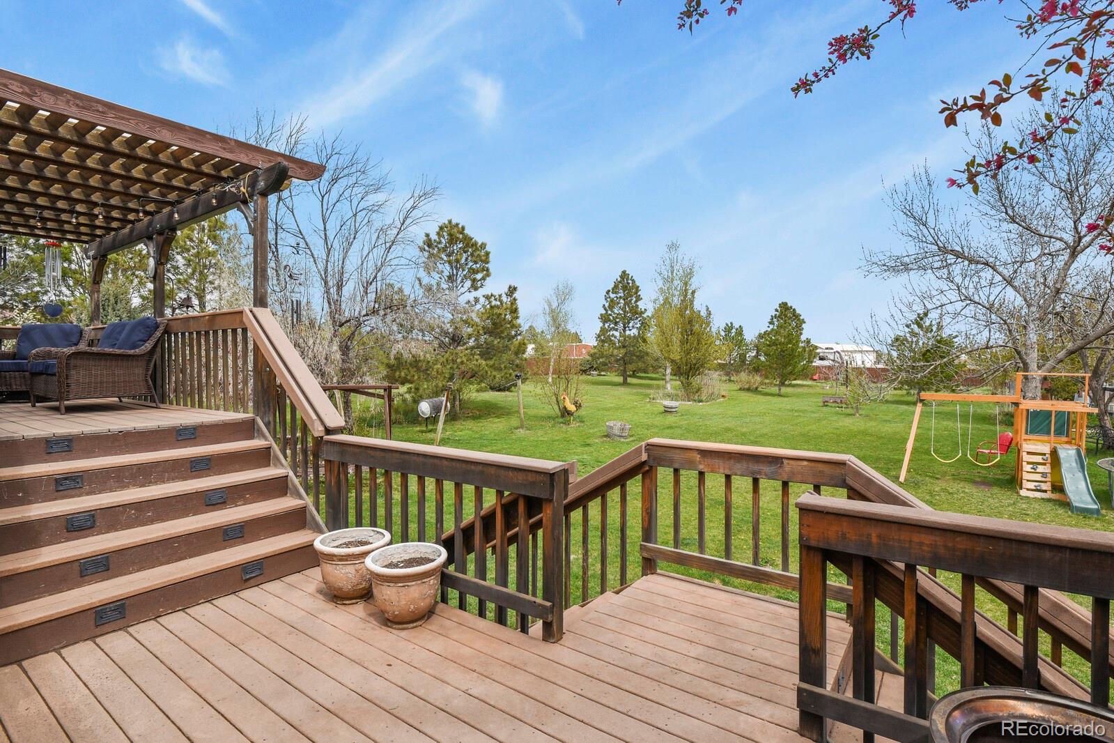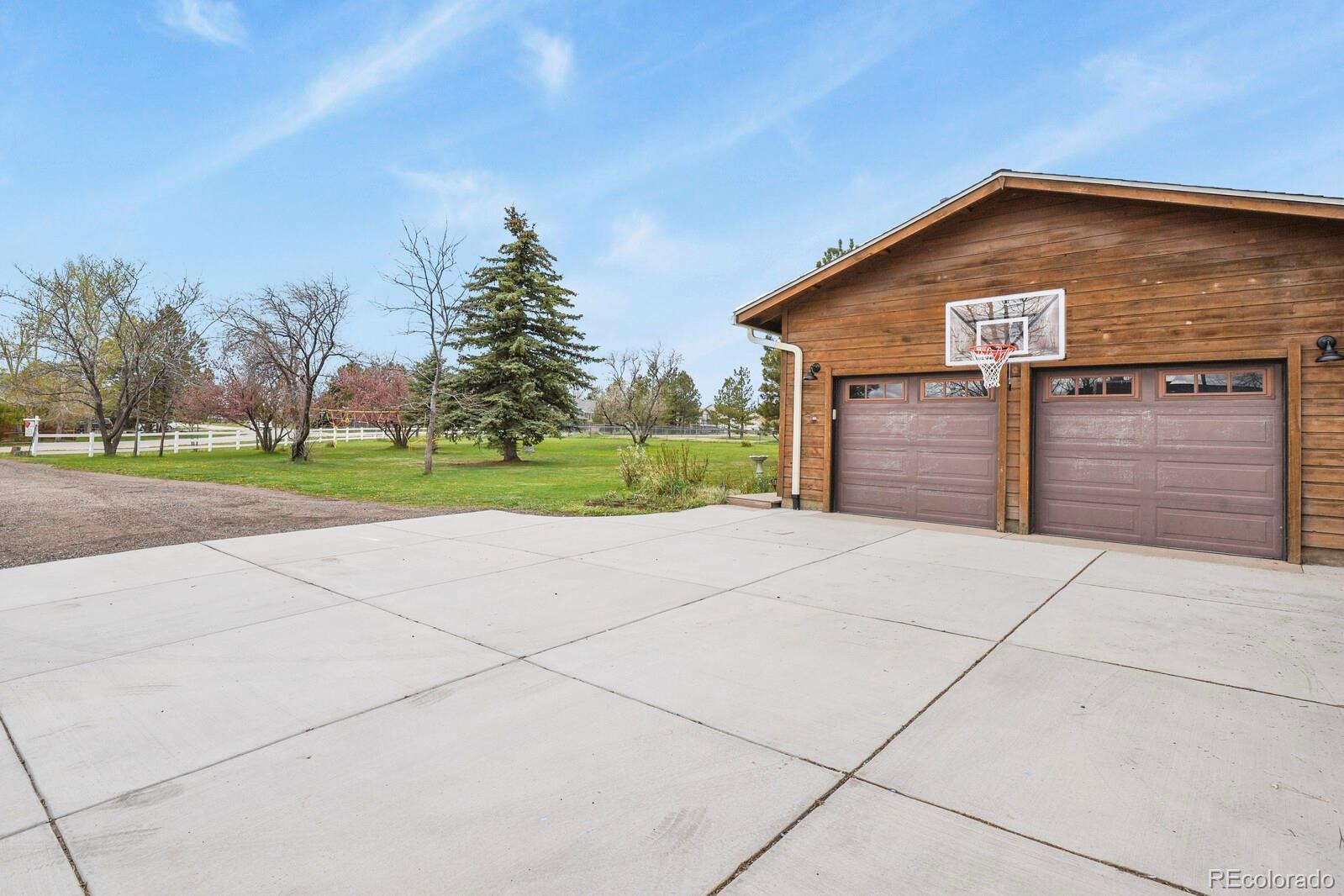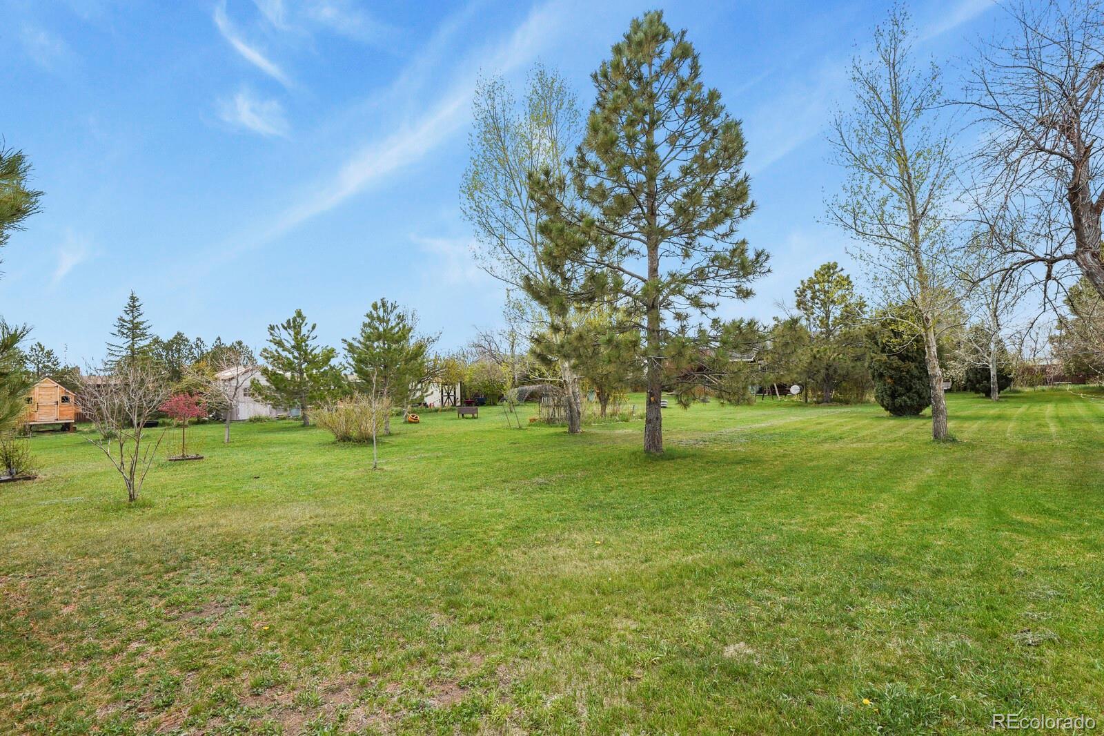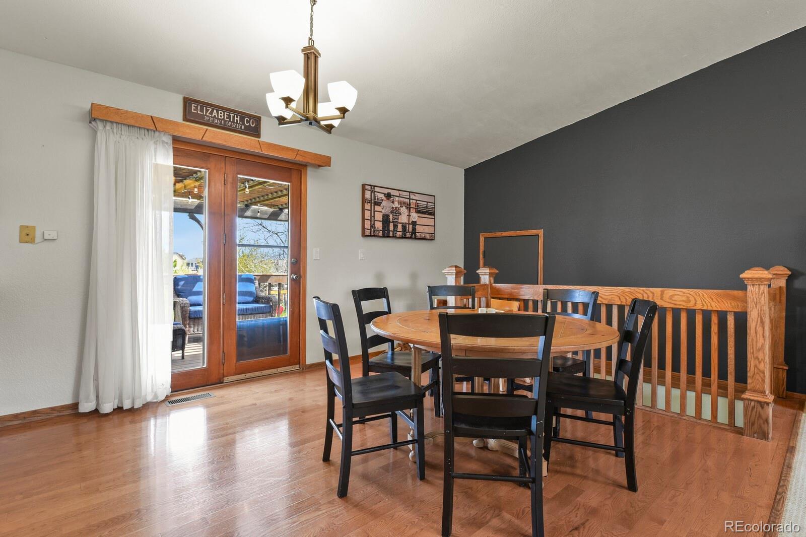 Discover tranquility in this stunning 5-bedroom (1 non-conforming), 3-bathroom ranch-style home, offering 2,576 square feet of beautifully finished living space in the peaceful community of Elizabeth. Nestled on over an acre, this treed lot that evokes the serenity of a private park, this property is perfect for those seeking a quiet retreat. The home features a nearly new roof (2 years old) and a brand-new air conditioner, ensuring comfort and peace of mind. Newly poured 36x36 concrete pad for extra parking in front of the garage. Located in a serene, low-traffic neighborhood, this home is part of a welcoming community known for its rural charm and tight-knit feel. Elizabeth offers a small-town atmosphere with easy access to local amenities, including charming shops, dining, and seasonal events like the Stampede Rodeo and Friday Night Markets. With low Elbert County taxes and no HOA, this quiet community provides the perfect blend of privacy, space, and modern convenience for a relaxed Colorado lifestyle.