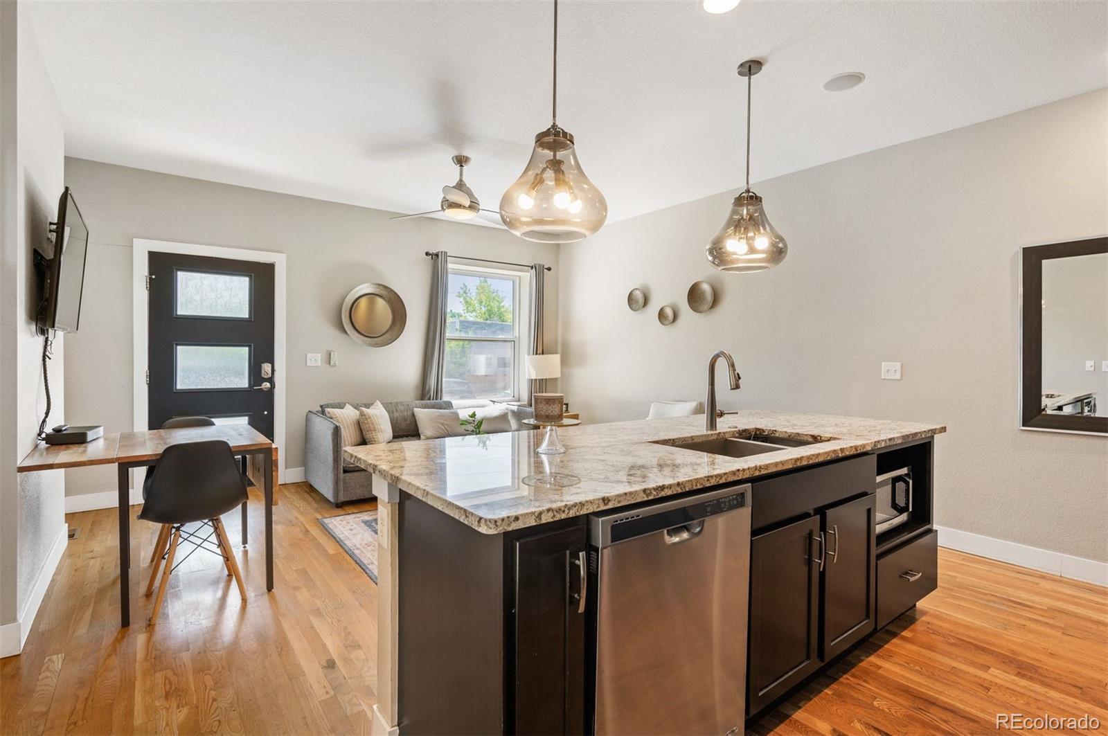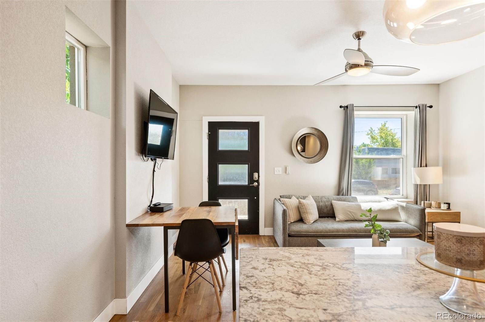 Welcome to this exquisitely renovated half-duplex in the heart of Jefferson Park. This charming 2-bedroom, 2-bathroom home seamlessly blends classic character with modern sophistication. Every system has been updated to offer you peace of mind and effortless living. Step inside to discover a thoughtfully designed interior featuring sleek finishes and stylish details throughout. The cozy, quiet backyard provides a perfect retreat for relaxation or entertaining. Located just a short walk from Mile High Stadium, vibrant downtown Denver, and top-tier restaurants, this property promises unparalleled convenience and access. This home has been successfully running as a rental. Furnishings are negotiable for savvy investors or those seeking a turnkey residence in a prime location.
