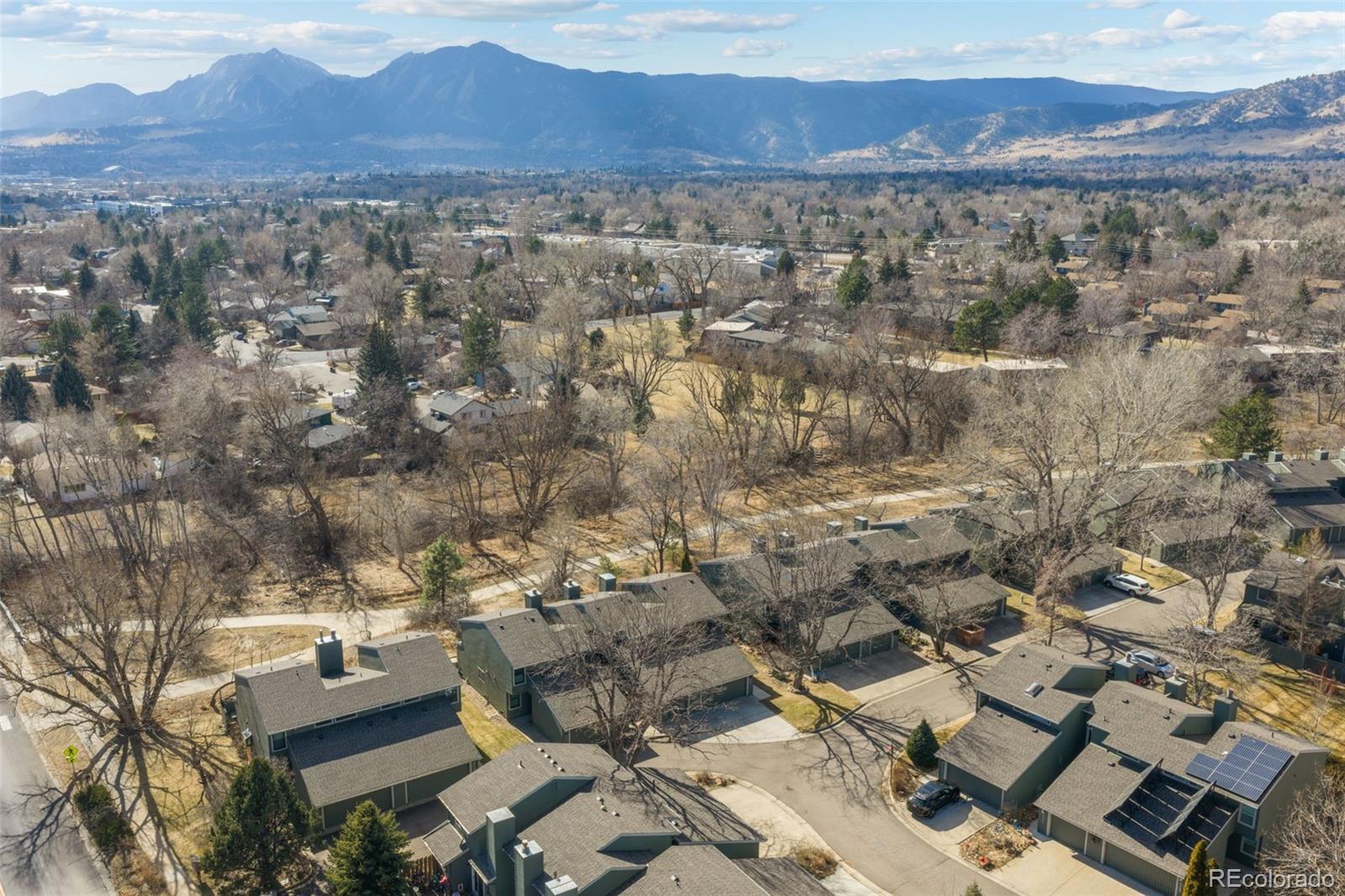 Great location in Boulder, backing to the Four Mile Creek Boulder Open Space with access to the bike/walking path! This is truly a one-of-a-kind home in this complex! End unit with 4-bedroom, 3 baths, and an attached two-car garage. New roofing, siding, windows and doors. Be the first to cook in this all-new kitchen, cabinets with under cabinet lighting, soft close cabinet doors and full extension drawers, quartz countertops and tile back splash, deep under mount stainless steel sink, stainless-steel appliances, French Door refrigerator with freezer draws, an induction cooktop and convection Wall oven, and a breakfast bar. New Trex deck (13x9) This home also has 2 additional parking spaces in front of the finished garage and has power ready for an electric vehicle! New garage door with upper panel windows, quiet opener with remotes and keypad! All new paint, inside and out, new flooring throughout, new electrical fixtures. The Main floor bedroom is next to the 3/4 bath. Living room with vaulted ceiling and new Velux skylights, Primary Bedroom with mountain views, and new 3/4 bath with luxury fixtures. Second upper-level bedroom with dressing area. Wi-Fi hub for thermostat and light fixtures. The laundry room has a new stacked clothes washer, Heat Pump dryer and laundry sink included. R-60 insulation in the ceiling! New efficient HVAC units. Property qualifies for all government financing; Conventional, FHA, VA! LOMA document included. Two blocks to East Palo Park, playground/park, and two blocks to tennis courts, and near the Pleasant View Soccer Fields via the Bike path! Convenient location for schools, shopping and restaurants. This is a great opportunity for any buyer! Don't miss this one!