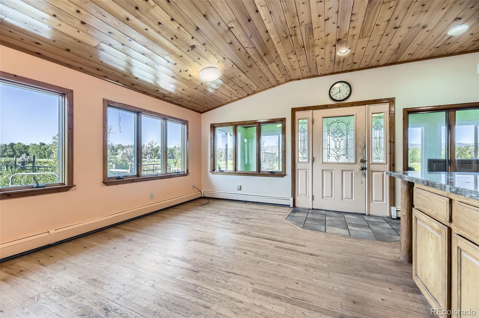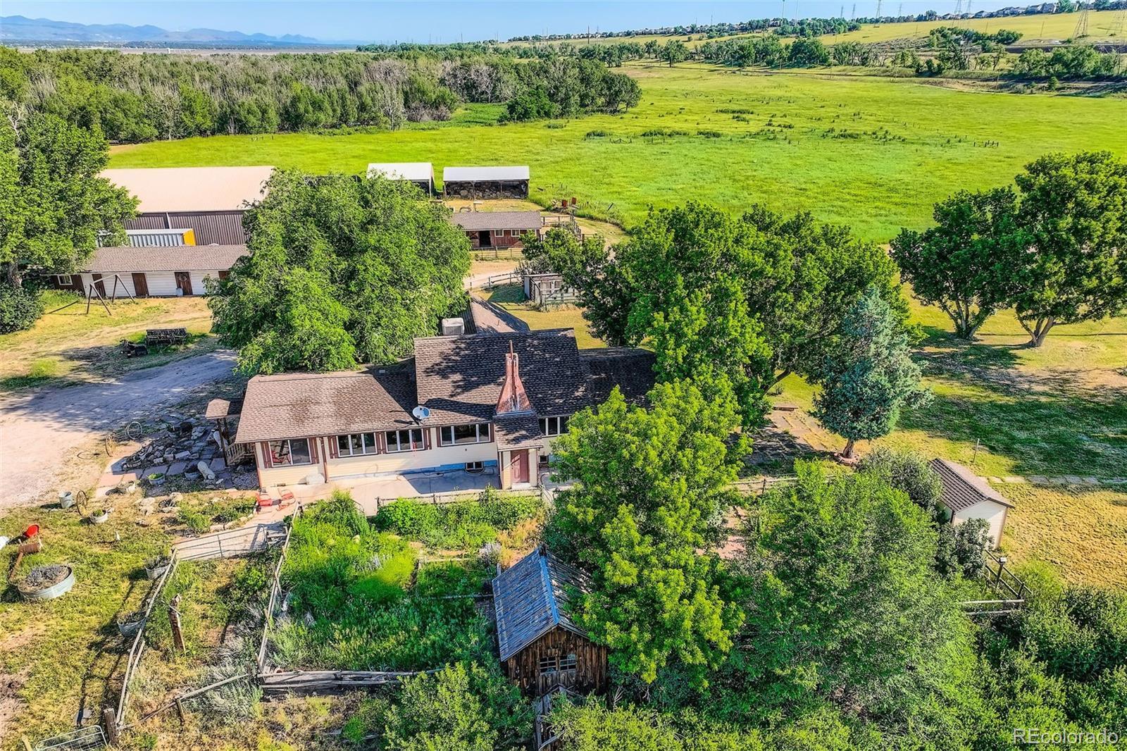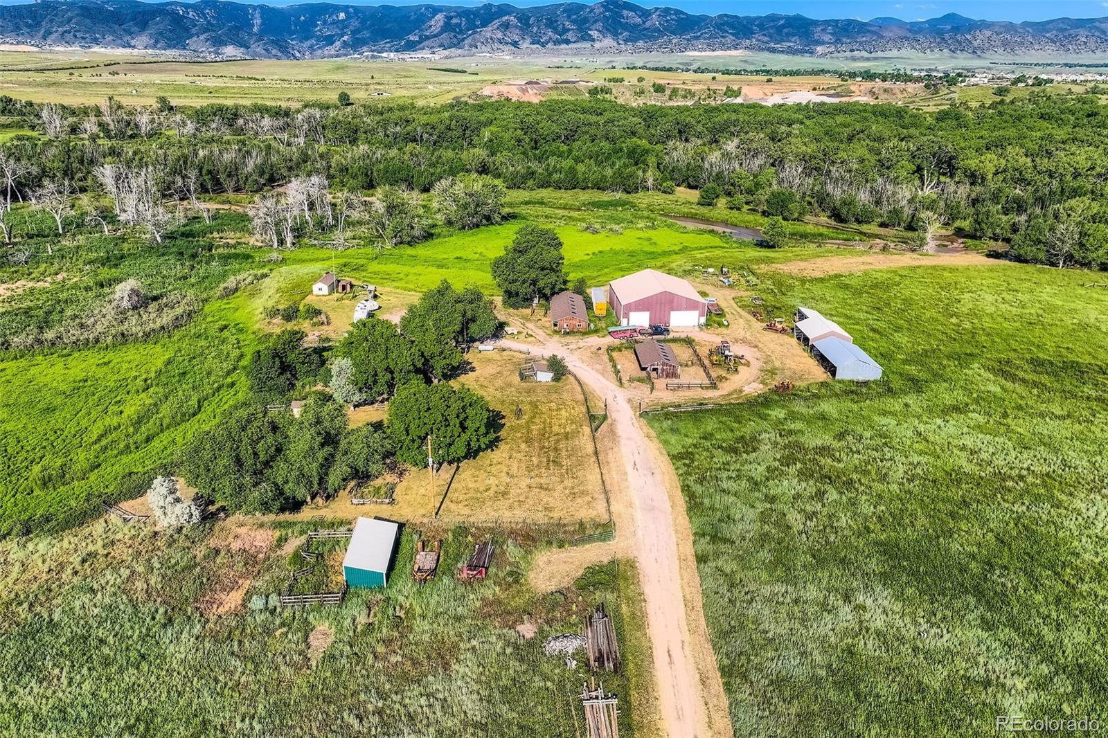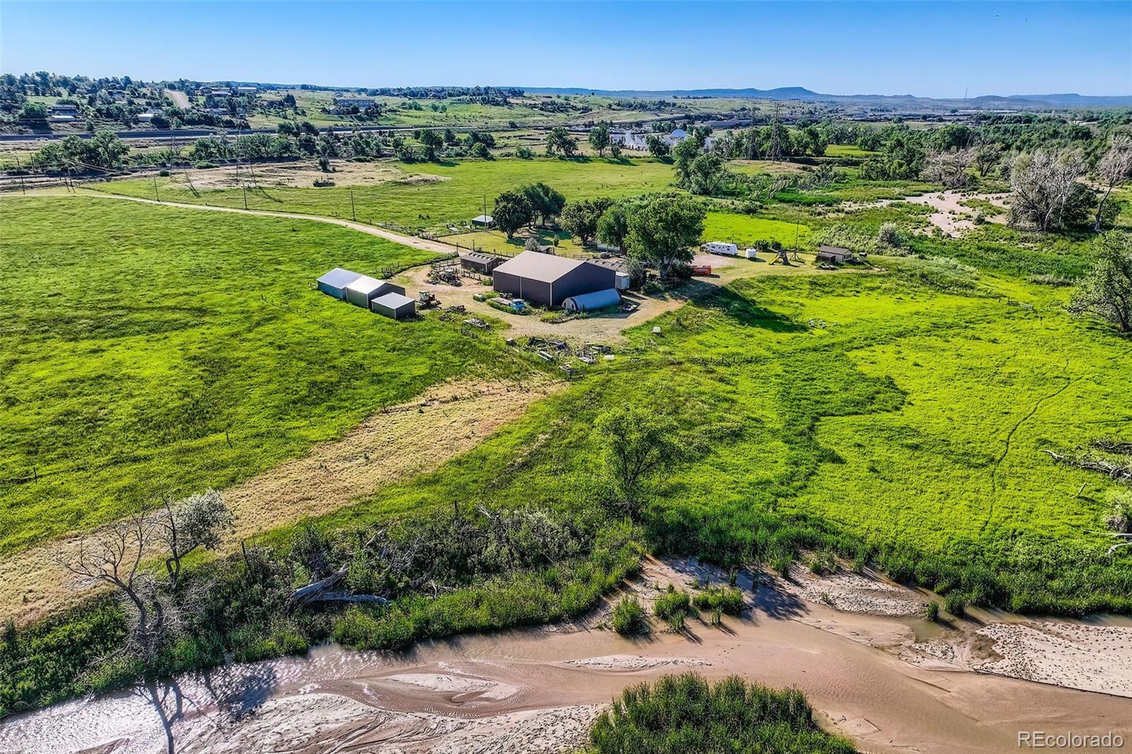 Highly sought after Agricultural/Farm land, with house, workshop, barn, storage and hay sheds situated on 43 acres next to Chatfield State Park! House has over 2000 square feet above grade with open floor plan. Hardwood floors throughout the kitchen and great room. Wood slat ceiling in entry and kitchen. Kitchen with slab granite countertops, tile backsplash, and stainless appliances and exhaust hood. Great room is vaulted and has a fireplace with stone surrounding it. Main floor primary bedroom with its own 3/4 bath and a sliding door leading to the private screened-in porch. There is a tiled formal dining room or could be used for multiple purposes as well. There is a laundry, full bath and another 3/4 bath rounding out the main floor. Upstairs is anther bedroom with a large sloped ceiling closet. The finished basement adds another area for a family room as well as storage. There are four parcels of land making up the 43 acres. The land is zoned A1 and can be used for farm, ranch or just to enjoy the mountain and valley views as well as Chatfield State Park. There is a 3 car detached garage, enormous 4040 square foot heated shop/barn with 2 large overhead doors, cement floors and and upstairs with rough-in for what could possibly be an apartment. There are also 4 three-sided hay sheds, a 3 stall barn, and two more sheds on the land. This land at one time was the school house for the Colorado Territory of Acequia and the small school house is still on the property being used for storage. Imagine all of the possibilities this land has to offer. Make your own touches and instant equity. Also included are the Oliver Tractor, Swather and Hay Baler.