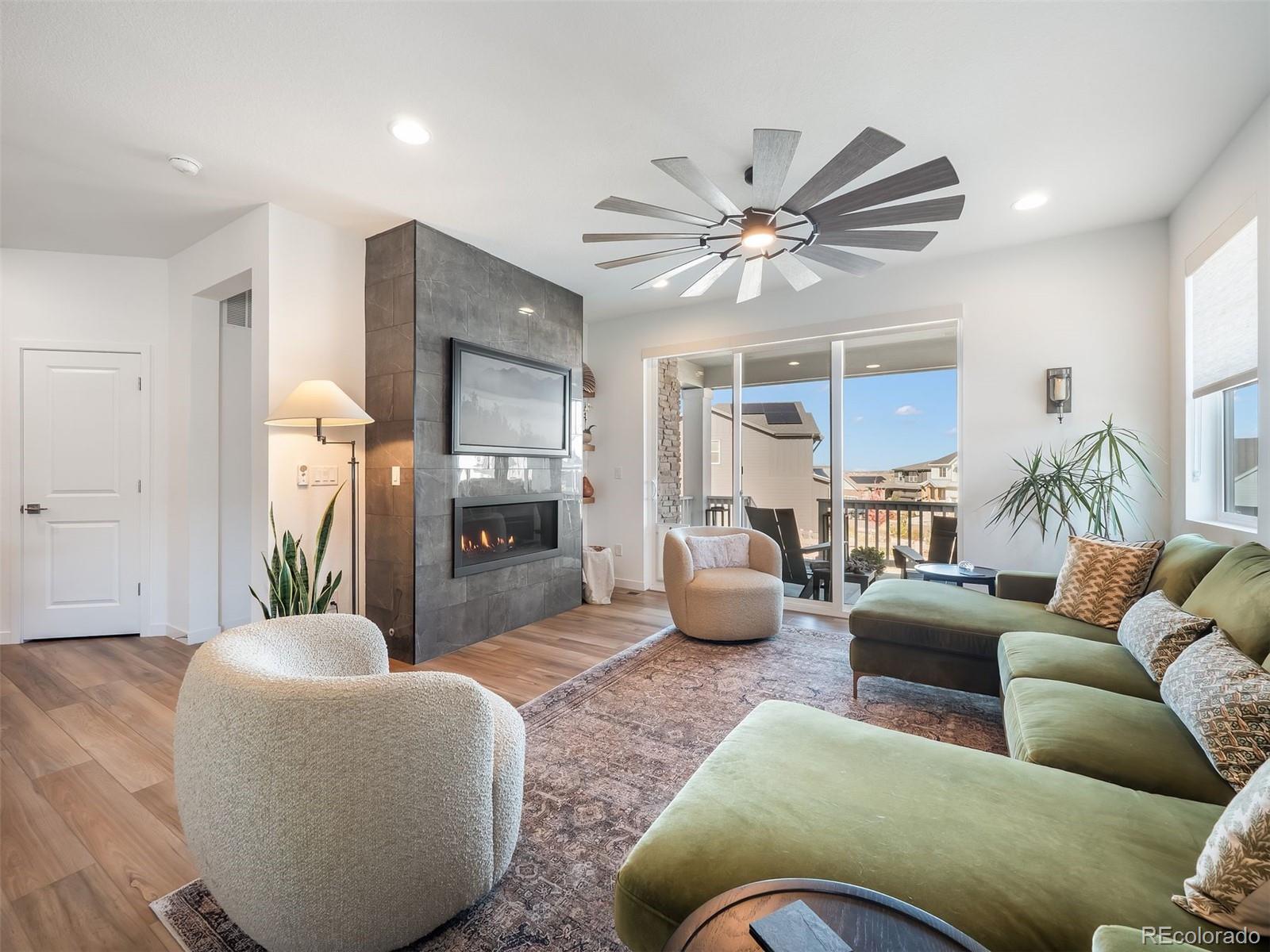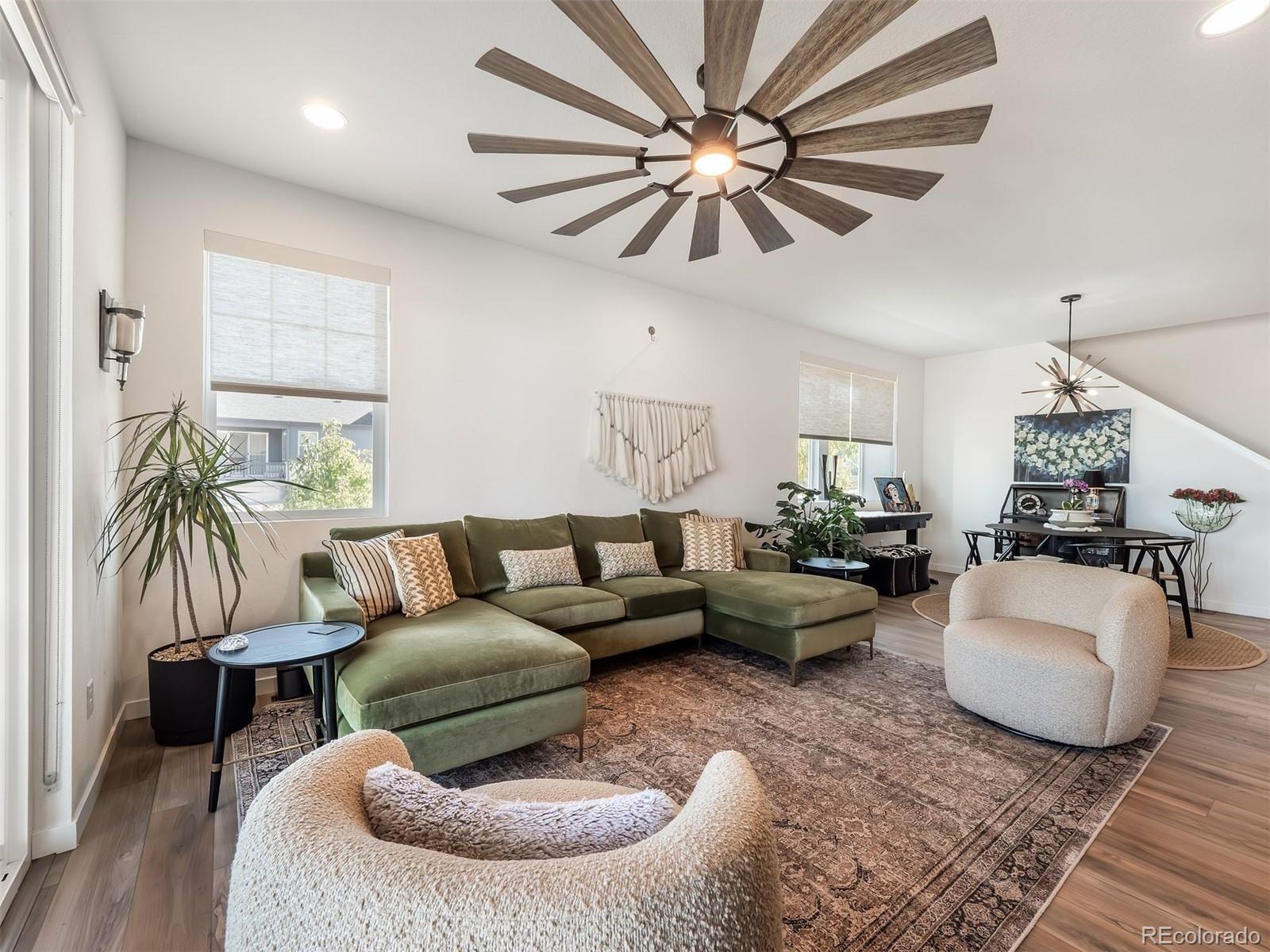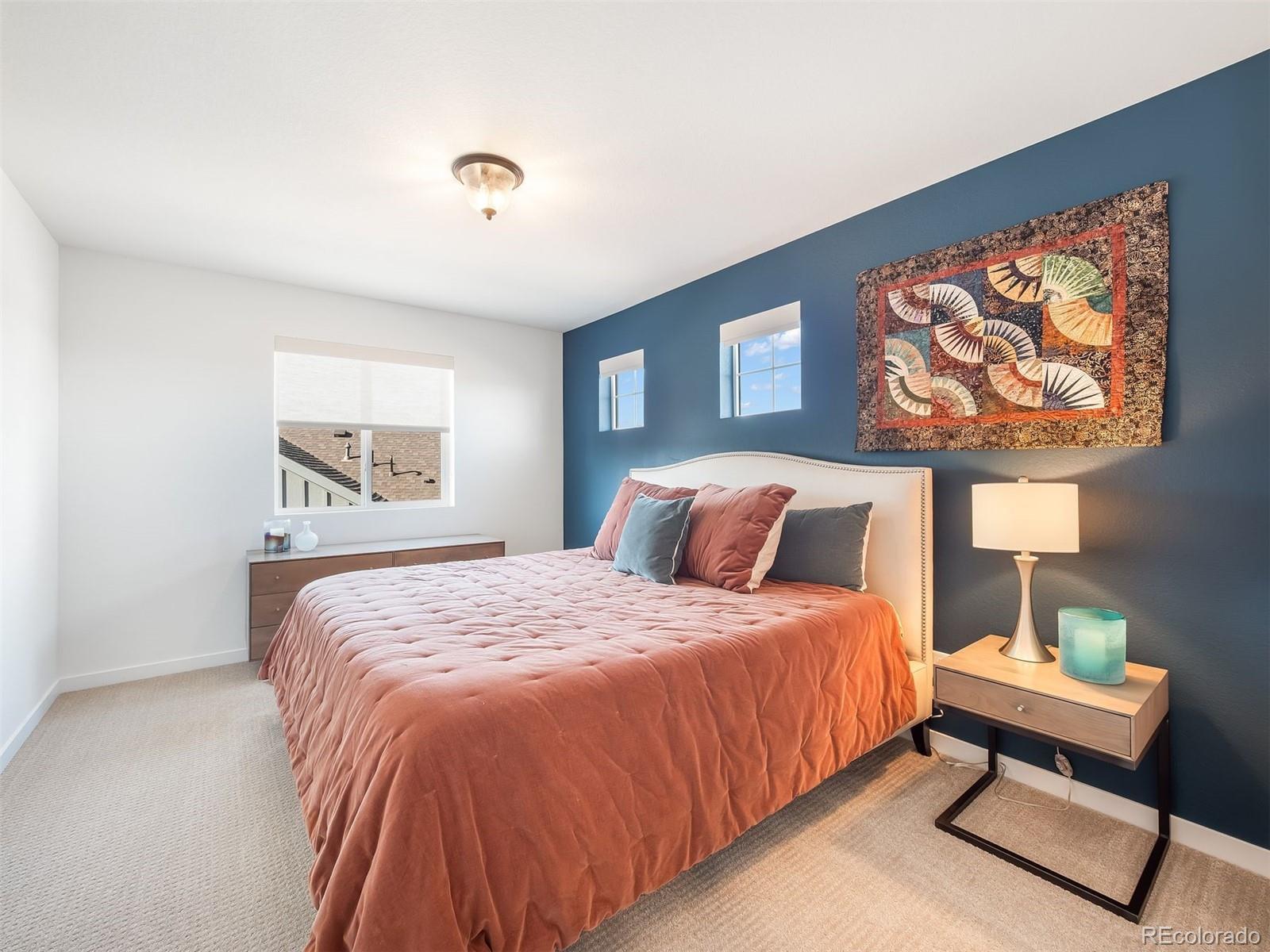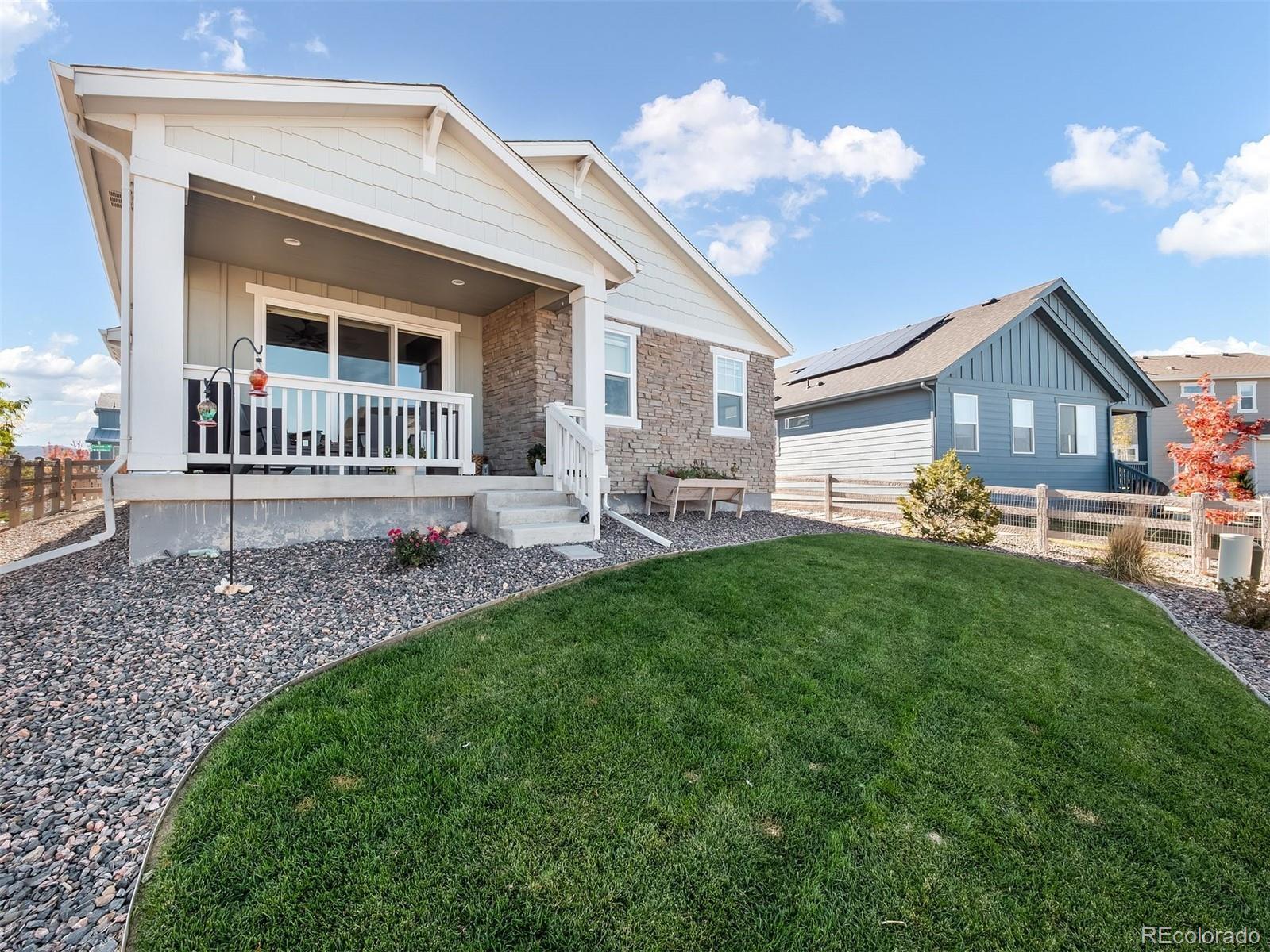 This home began as a model, selected for its elevated finishes and thoughtful design—exactly why model homes are so desirable. From day one, it reflected the builder’s best work, offering a polished look that feels both welcoming and refined. After moving in, the current owners enhanced the home even further, adding features that many buyers discover they need only after purchasing new construction. Custom closet built-ins, upgraded window treatments, a premium lighting package, and custom garage cabinetry were all thoughtfully completed—saving the next owner the time, coordination, and unexpected costs that often add up quickly. Outdoors, the backyard has been professionally designed and installed to create a true extension of the living space. The landscape blends soft plantings with hardscape elements, including decorative boulders, and is fully enclosed by a custom fence—an inviting setting that’s already finished and ready to enjoy. Inside, the open floor plan is filled with natural light and flows effortlessly from the gourmet kitchen into spacious living and dining areas. Luxury vinyl plank flooring adds both style and durability, making the home equally suited for relaxed everyday living and easy entertaining. Generous bedrooms and a versatile loft provide flexible space for guests, a home office, or play area. In addition to its thoughtful upgrades, the home is equipped with solar panels that offer substantial energy savings—adding efficiency and long-term cost benefits to its already impressive list of features. With quality finishes and modern conveniences throughout, this Sterling Ranch home offers the comfort and appeal of new construction—without the wait, decisions, or added expense of completing upgrades after move-in. Located in the #1 best-selling master-planned community in the Denver Metro area for 5 consecutive years, it delivers both lifestyle and long-term value. A full list of upgrades is available from listing agent & in MLS supplements.