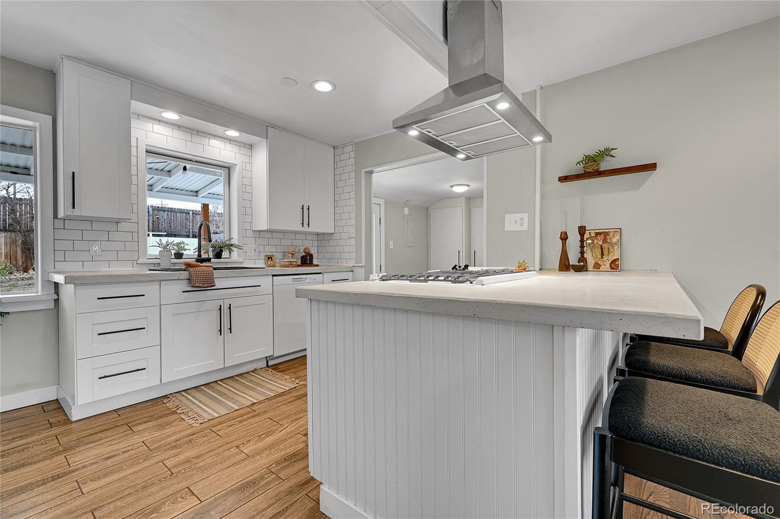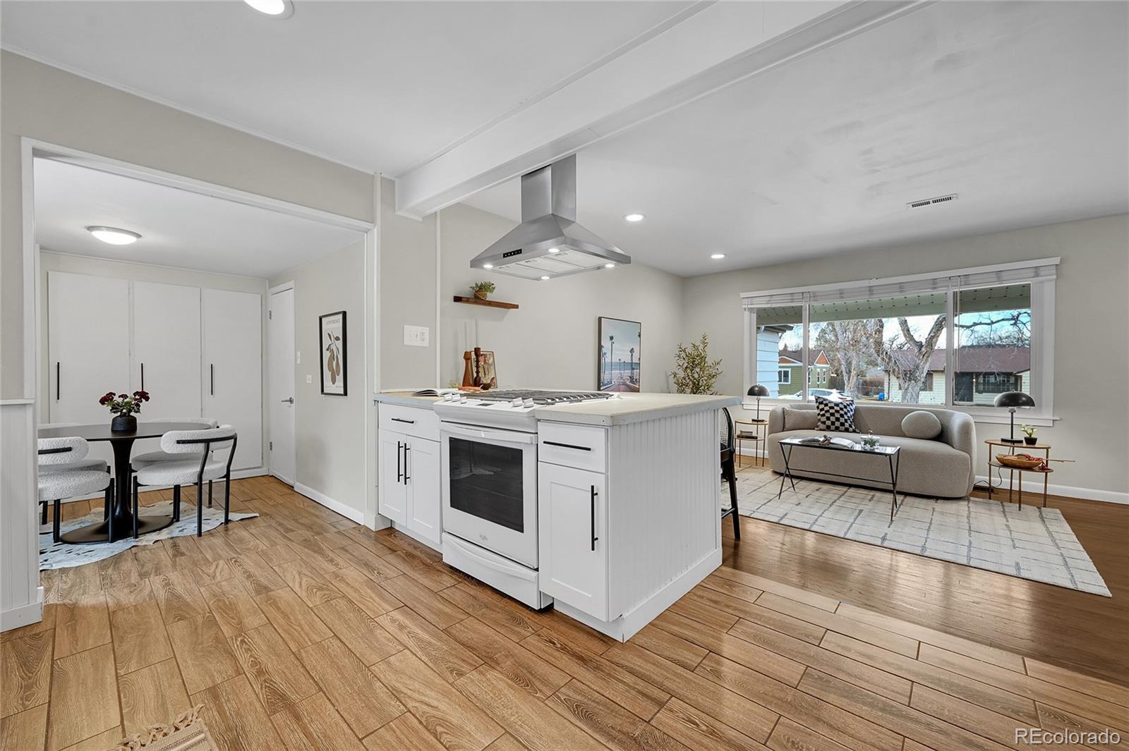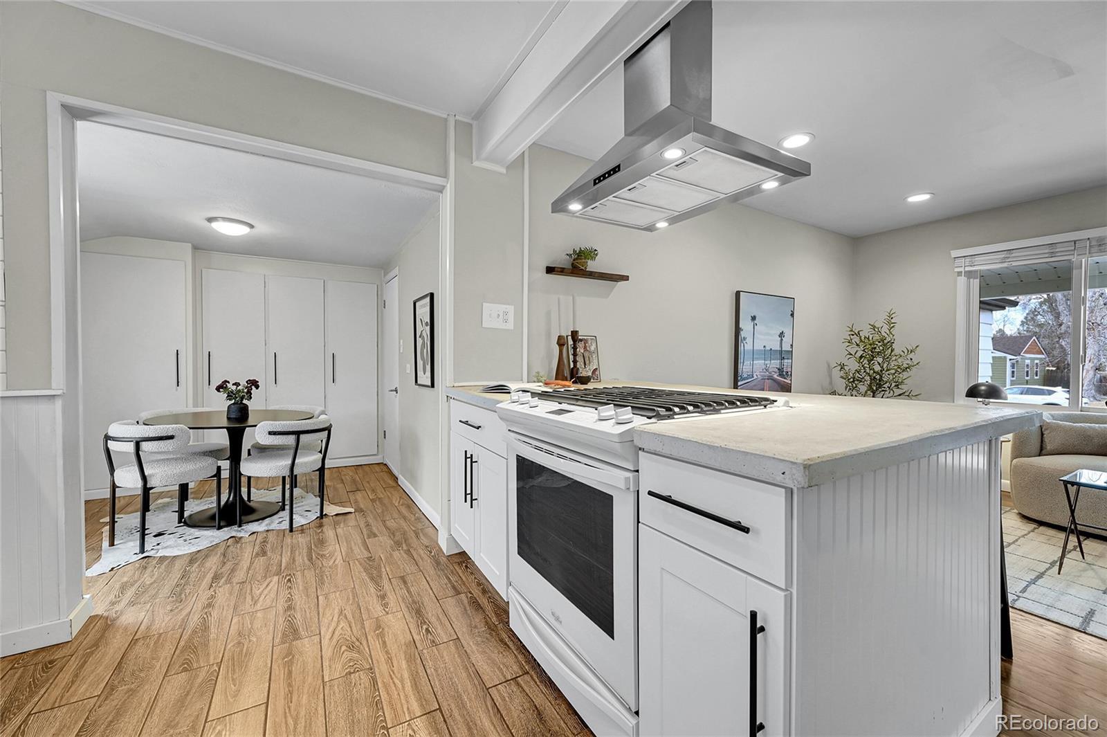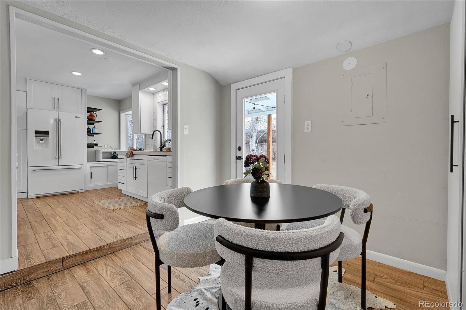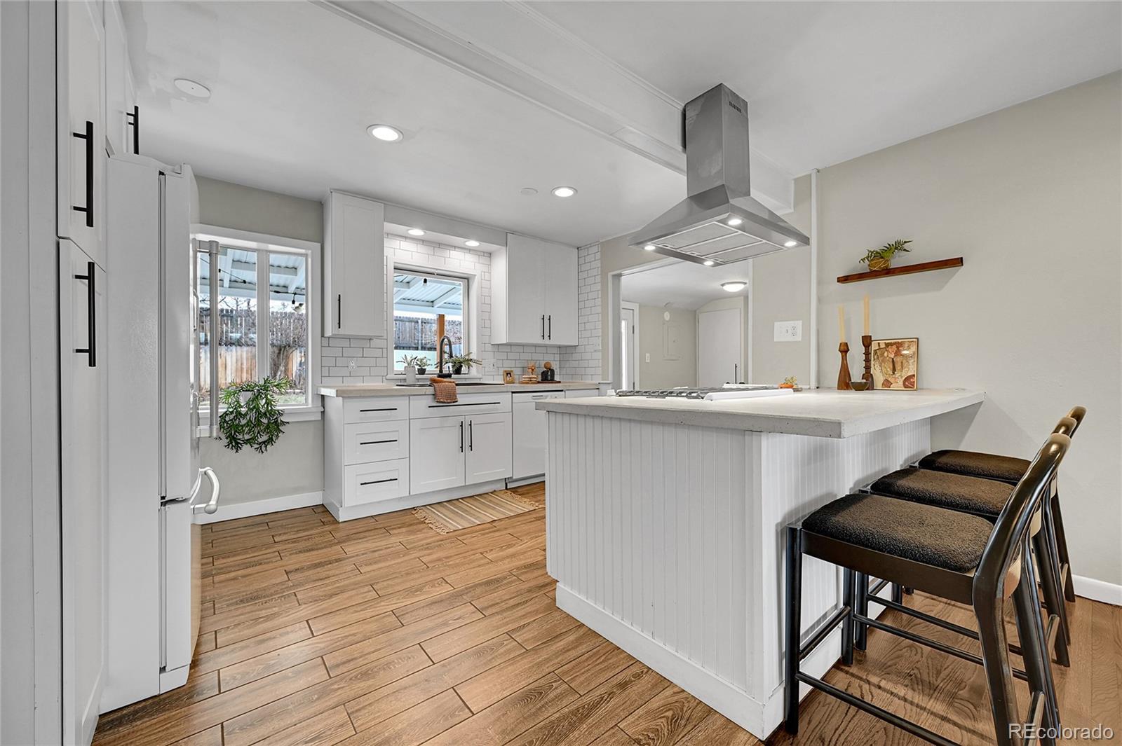 Welcome to this beautifully updated 2-bedroom, 2-bath home nestled in one of Denver’s most desirable neighborhoods. This west-facing property offers wonderful natural light and inviting curb appeal, highlighted by a covered front porch - perfect for enjoying Colorado sunsets. Step inside to a spacious, open living and kitchen area, enhanced by hardwood floors and a layout designed for both everyday living and entertaining. The updated kitchen is a standout, with a striking focal-point range hood, clean white appliances, and a thoughtfully arranged layout that’s as functional as it is stylish. The primary bedroom is a true retreat, featuring two closets with built-ins and a private ensuite bathroom complete with a large walk-in shower and double vanity. The second bedroom is highly versatile and can easily serve as a bedroom, office, workout room, or a combination of all three, making it ideal for modern living. Major updates include a newer roof (2021), central A/C with a new unit installed in 2021, and Andersen windows throughout. Additional highlights include a 1-car attached garage, a separate laundry room, and a large backyard ideal for entertaining, relaxing, or enjoying the outdoors. Surrounded by well-maintained homes in a highly sought-after location, this property offers the perfect blend of comfort, style, and Denver character.