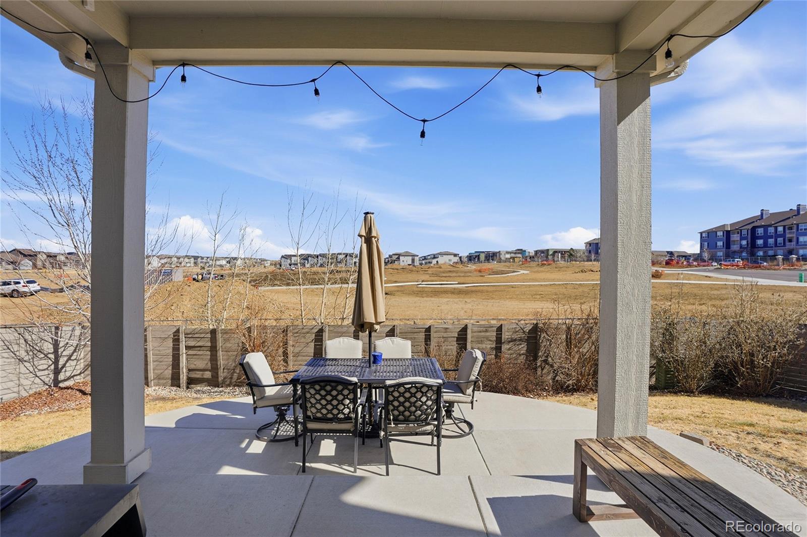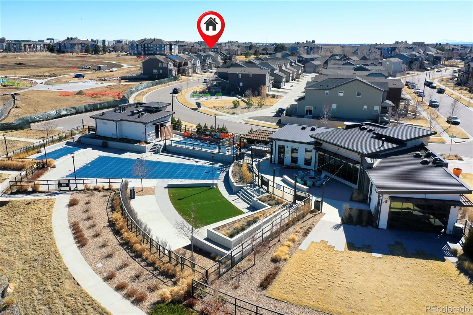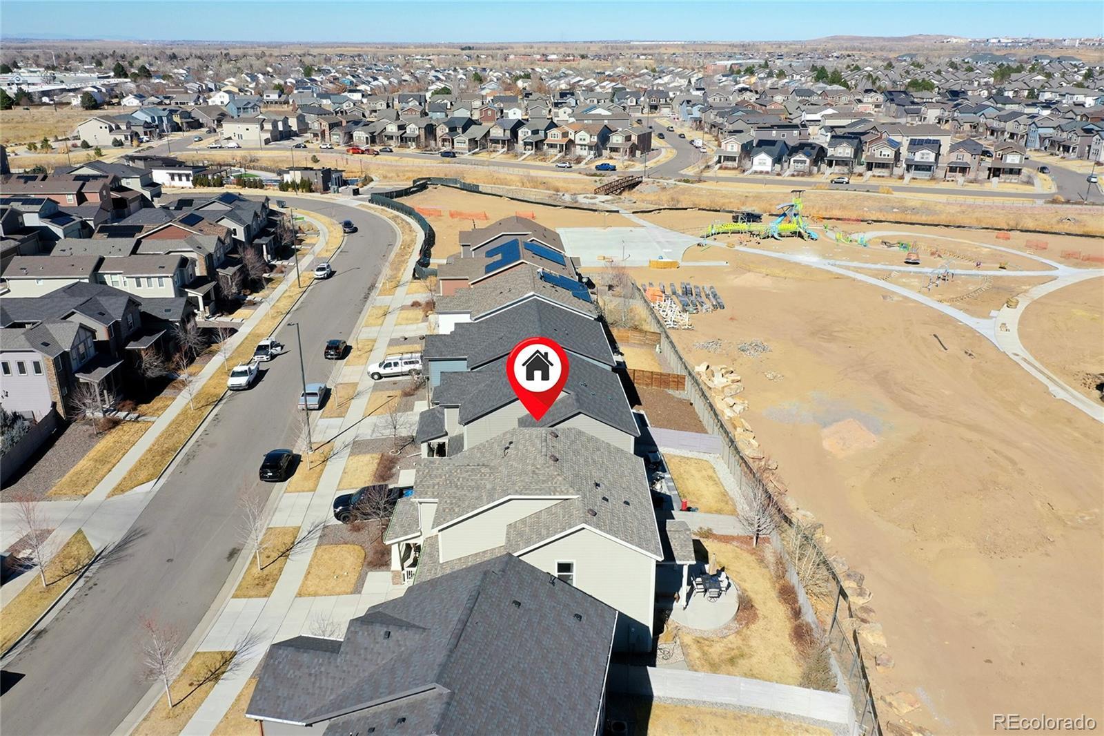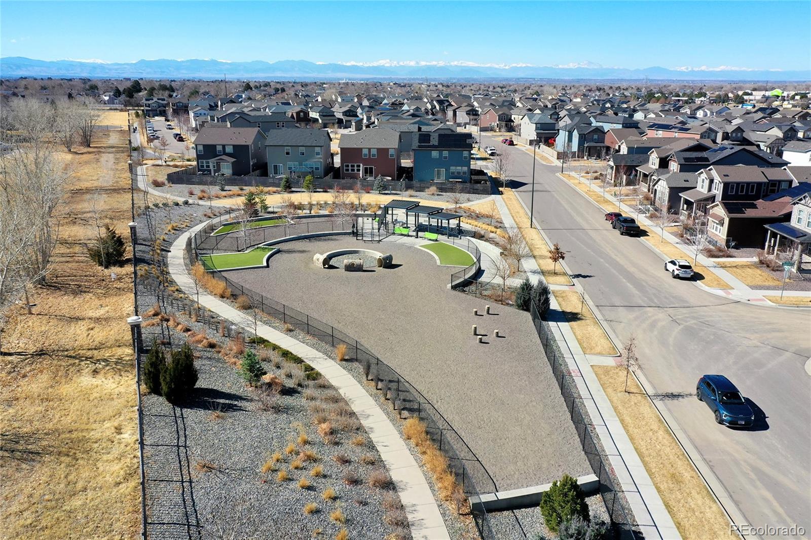 Welcome to this beautifully maintained home in the sought-after Avion at Denver Connection neighborhood of Green Valley Ranch. Thoughtfully designed with an open and functional layout, the main level welcomes you with a bright entry that flows into the spacious kitchen, dining, and living areas. Large windows fill the home with natural light, creating an inviting atmosphere. Step outside to the backyard where a covered patio provides the perfect place to relax. One of the standout features of this property is its location backing to open space that is currently being transformed into a new Denver park. Planned at approximately nine acres, the park will include a playground, athletic fields, basketball court, walking paths, picnic areas, and native landscaping that offers preserved views and an incredible outdoor amenity just steps from your backyard. Upstairs, you’ll find four generously sized bedrooms and two full bathrooms, including a spacious primary suite with a 5-piece bathroom. The home has been significantly enhanced by the current owners with thoughtful upgrades, including a professionally finished basement adding an additional bedroom, bathroom, and living space—ideal for guests or extended living. Each morning you’ll love the mountain views as you head downstairs to start your day. Additional improvements include a new roof in 2025, whole house fan, EV charger, Ecobee smart thermostat with multi-room sensors, radon mitigation system, custom blinds, and an upgraded garage door. Perfectly positioned between Downtown Denver and Denver International Airport, this home also enjoys close proximity to the growing Flyway development, which features Costco, new shops and restaurants. Residents of Avion enjoy access to the neighborhood “Hub,” offering a community pool, dog park, and gathering spaces. This is a rare opportunity to own a move-in-ready home in one of Denver’s fastest-growing communities with a brand-new park right in your backyard.