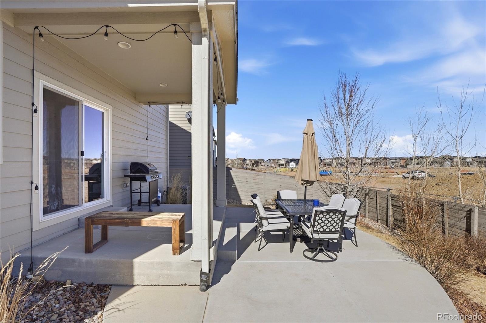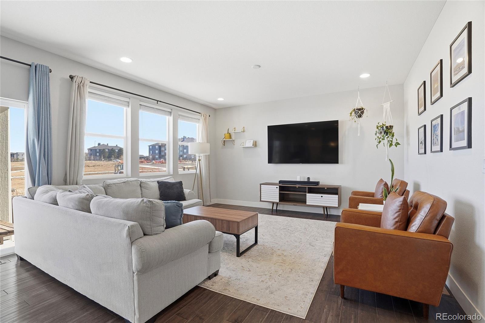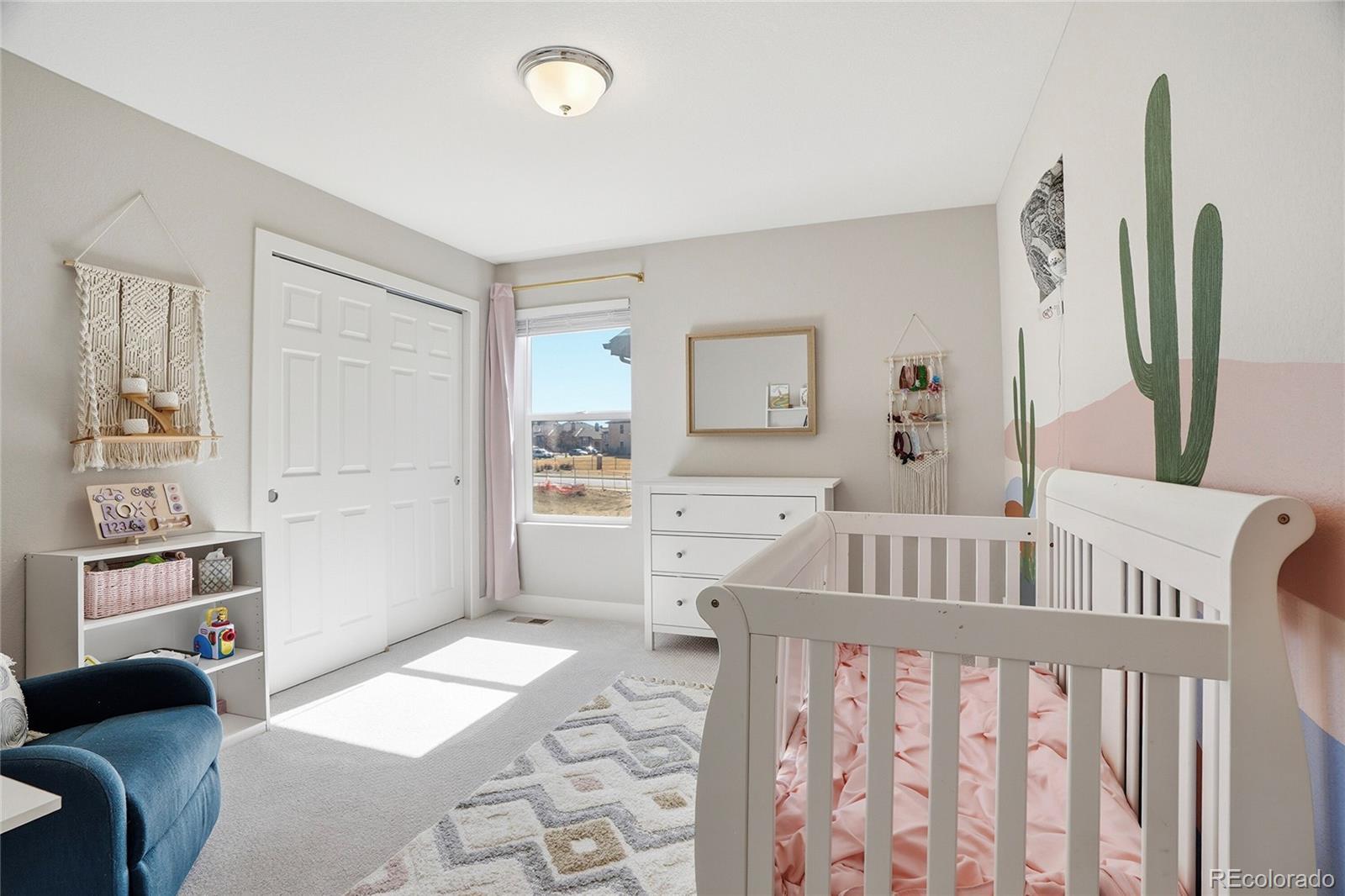 Welcome to this beautifully maintained home in the sought-after Avion at Denver Connection neighborhood of Green Valley Ranch. Thoughtfully designed with an open and functional layout, the main level welcomes you with a bright entry that flows into the spacious kitchen, dining, and living areas. Large windows fill the home with natural light, creating an inviting atmosphere. Step outside to the backyard where a covered patio provides the perfect place to relax. One of the standout features of this property is its location backing to open space that is currently being transformed into a new Denver park. Planned at approximately nine acres, the park will include a playground, athletic fields, basketball court, walking paths, picnic areas, and native landscaping that offers preserved views and an incredible outdoor amenity just steps from your backyard. Upstairs, you’ll find four generously sized bedrooms and two full bathrooms, including a spacious primary suite with a 5-piece bathroom. The home has been significantly enhanced by the current owners with thoughtful upgrades, including a professionally finished basement adding an additional bedroom, bathroom, and living space—ideal for guests or extended living. Each morning you’ll love the mountain views as you head downstairs to start your day. Additional improvements include a new roof in 2025, whole house fan, EV charger, Ecobee smart thermostat with multi-room sensors, radon mitigation system, custom blinds, and an upgraded garage door. Perfectly positioned between Downtown Denver and Denver International Airport, this home also enjoys close proximity to the growing Flyway development, which features Costco, new shops and restaurants. Residents of Avion enjoy access to the neighborhood “Hub,” offering a community pool, dog park, and gathering spaces. This is a rare opportunity to own a move-in-ready home in one of Denver’s fastest-growing communities with a brand-new park right in your backyard.