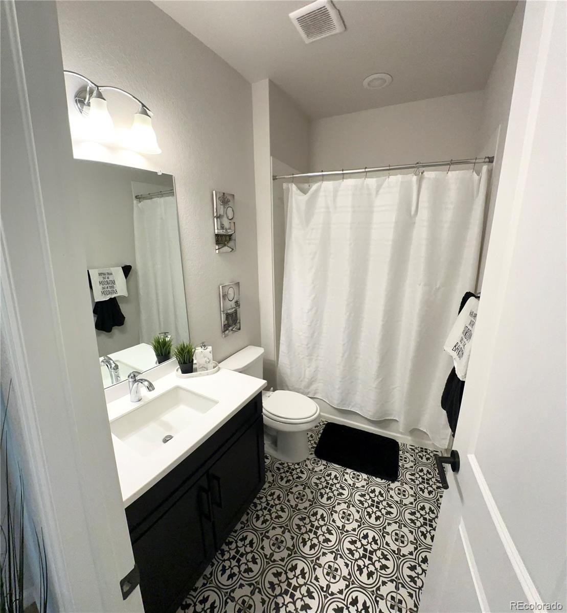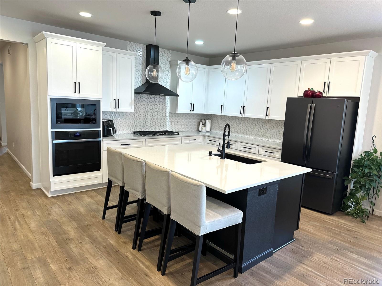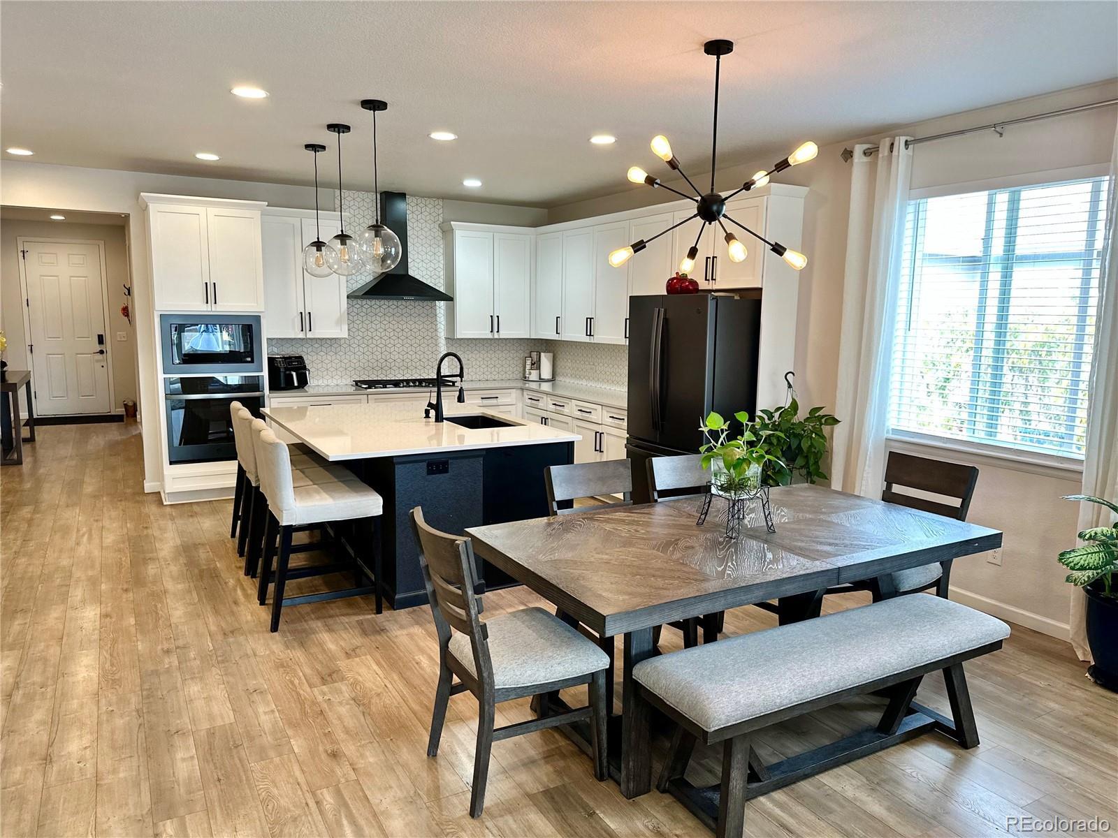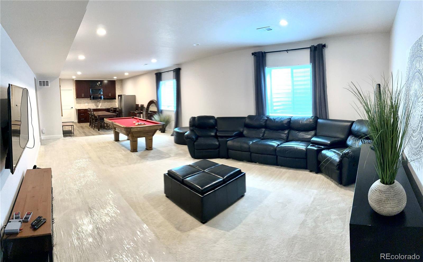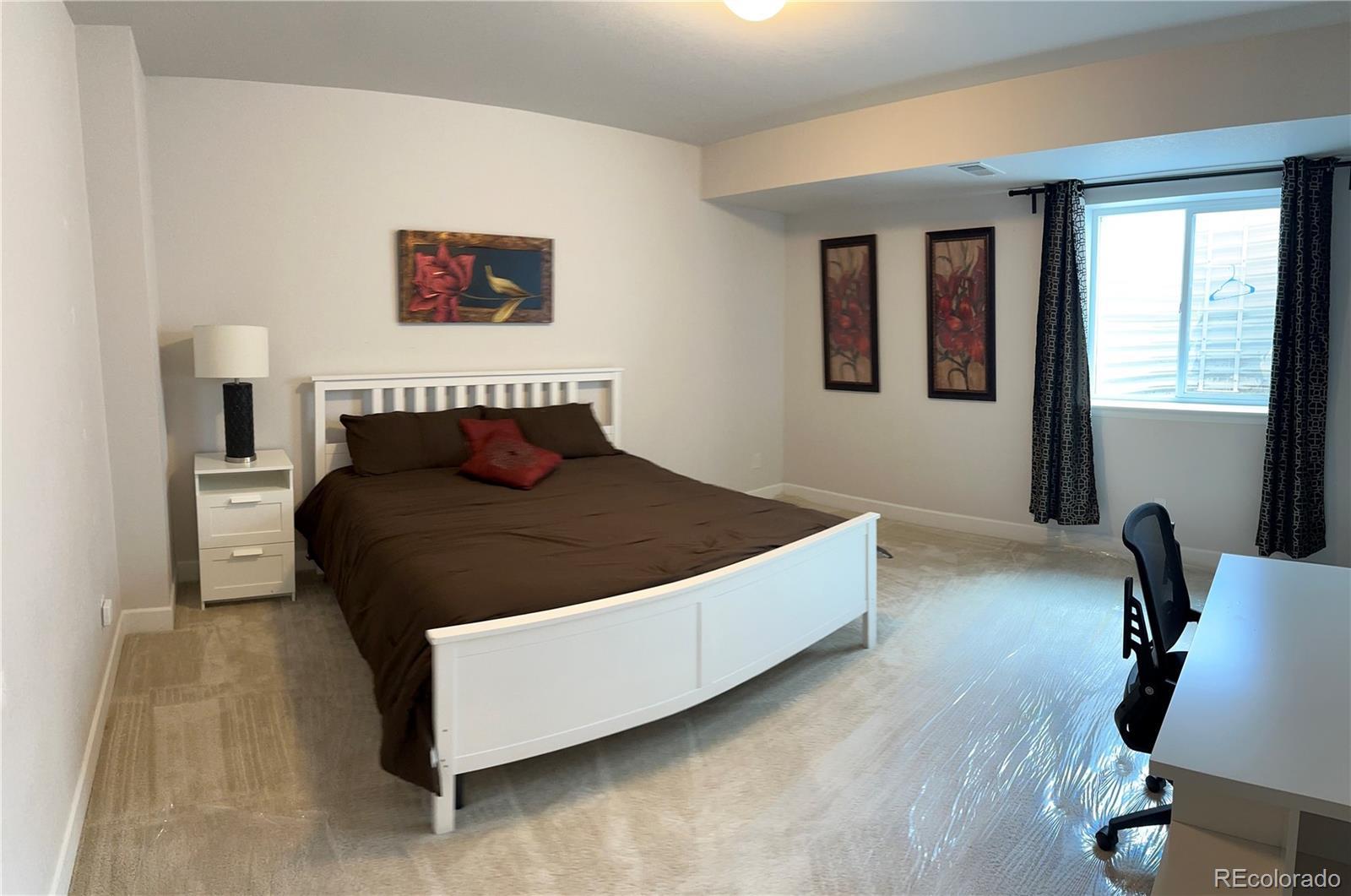 This exquisite 3,884 square foot Richmond American ranch boasts over $100,000 in builder upgrades. Nestled in the desirable Reunion community, it’s just a 15-minute drive from DIA, a 25-minute drive from Denver, and a 45-minute drive from the mountains. Grocery stores, coffee shops, breweries, restaurants, and shopping are all conveniently located within walking distance. But Reunion offers more than just convenience. Put your tennis shoes on and explore the parks, trails, and open spaces, or grab your golf clubs and enjoy a round at the Buffalo Run Golf Course. The 21,000 square foot Reunion Recreation Center features an indoor gymnasium, full fitness center, classes, meeting areas, and an outdoor pool with a water slide. The Southlawn Pool offers swim lanes, a wood dock. Check out the Reunion website for a comprehensive list of amenities and events. Step through the front door and be greeted by the natural light and LVP flooring that lead you to your open-concept living area. The kitchen is a culinary delight, featuring a spacious island, black slate appliances with a gas range and vent hood, two-toned shaker cabinets, quartz countertops, and an upgraded kitchen backsplash that cost over $26,000 at the design center. Cozy up next to the gas fireplace in the living room and enjoy a cup of coffee or tea. When it’s time to rest and unwind, retreat to your spacious primary bedroom with an en suite bathroom. The $50,000 upgraded finished basement is a massive space with 8-foot ceilings, two additional bedrooms, a full bathroom and full kitchen. An unfinished storage area. The fully fenced, 9,100 square foot backyard is perfect for hosting backyard barbecues, building snowmen, or simply enjoying Colorado’s many sunny days. And enjoy the fully paid ION solar panels installed in 2021! Don’t miss your opportunity to own this gem!