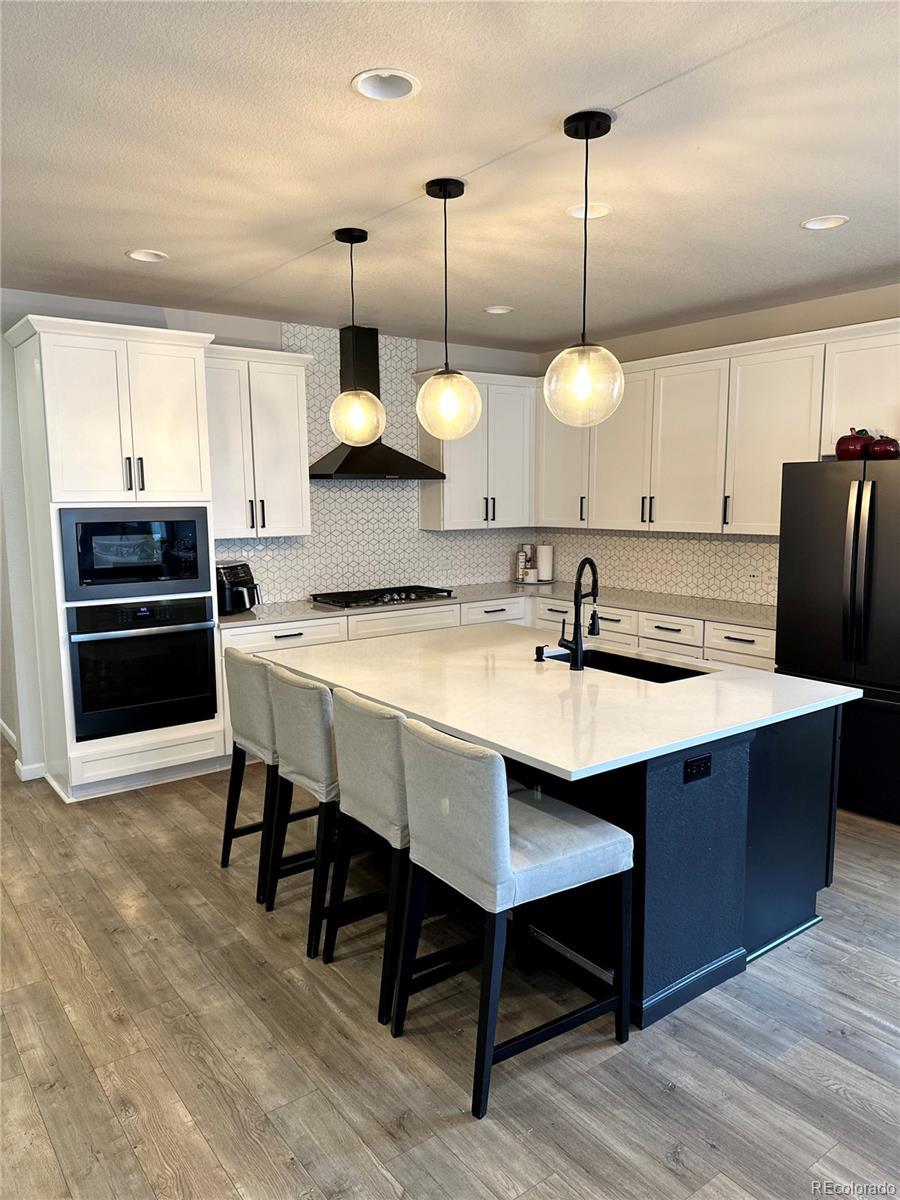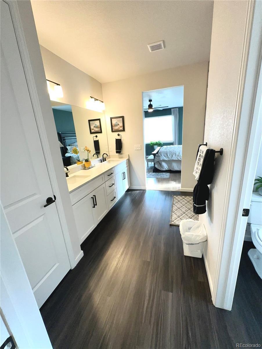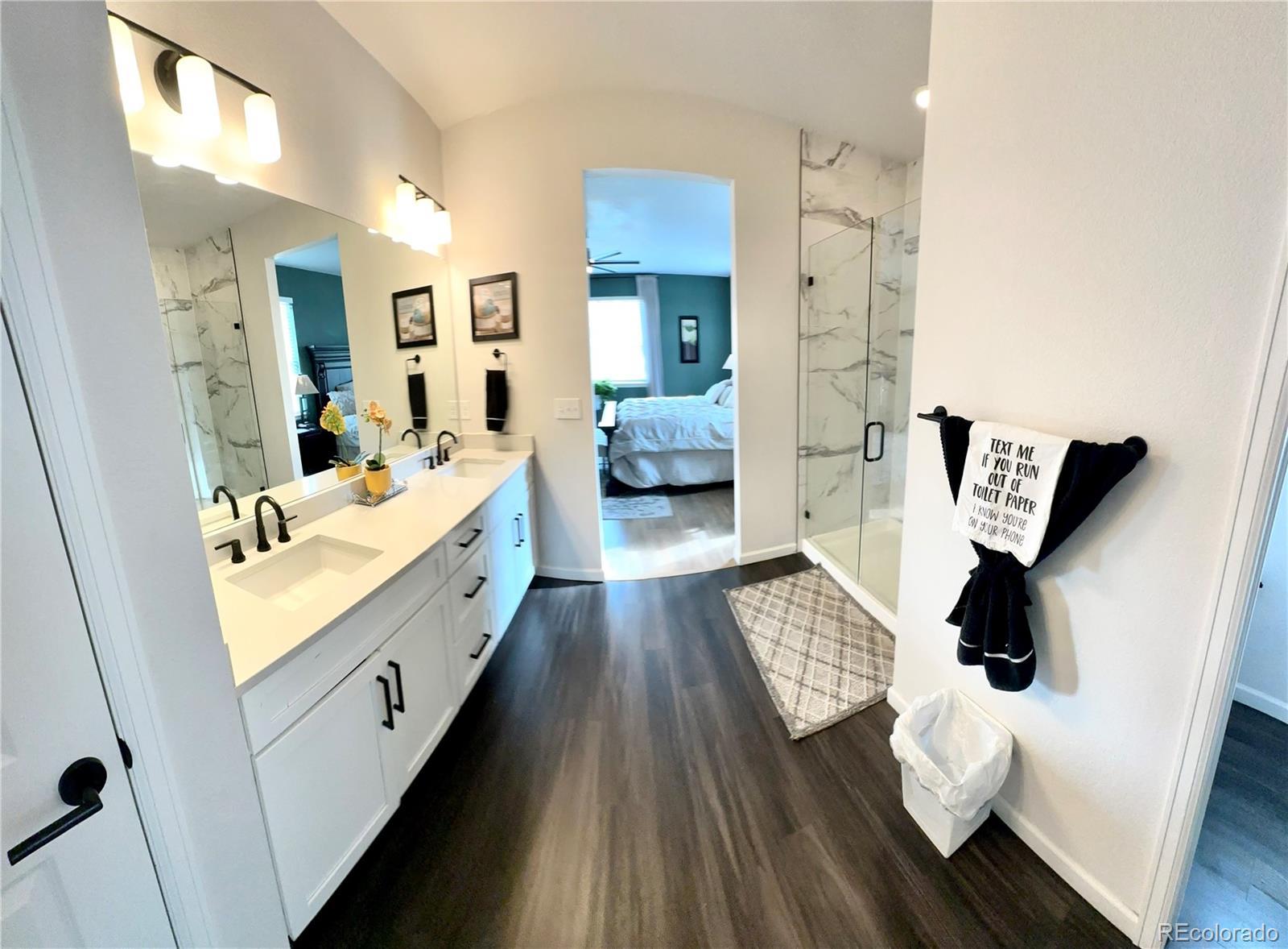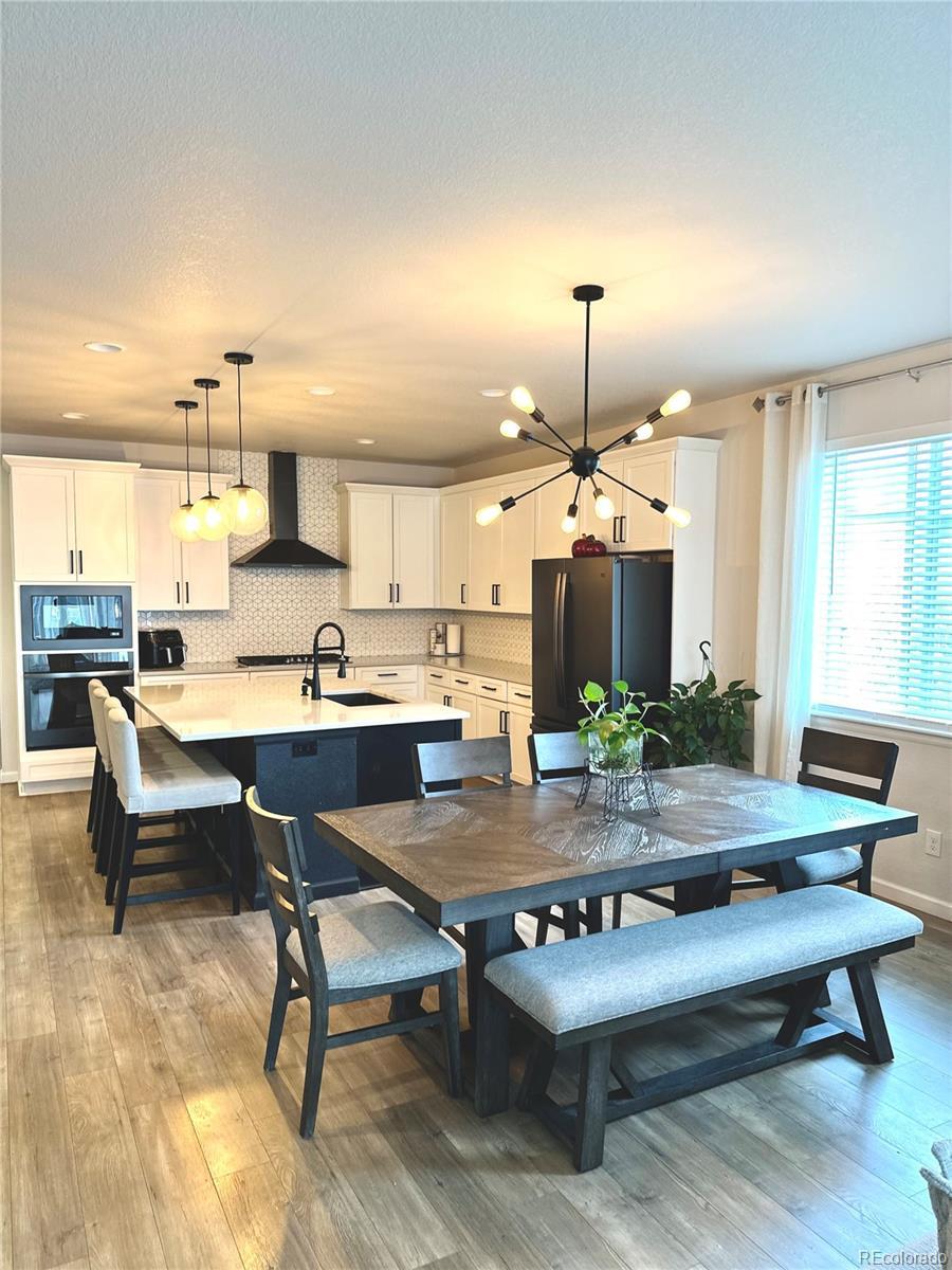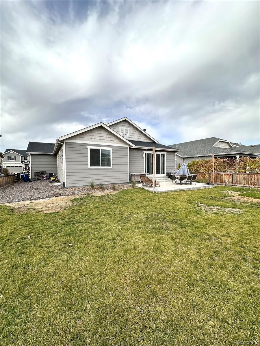 This exquisite 3,884 square foot Richmond American ranch boasts over $100,000 in builder upgrades. Nestled in the desirable Reunion community, it’s just a 15-minute drive from DIA, a 25-minute drive from Denver, and a 45-minute drive from the mountains. Grocery stores, coffee shops, breweries, restaurants, and shopping are all conveniently located within walking distance. But Reunion offers more than just convenience. Put your tennis shoes on and explore the parks, trails, and open spaces, or grab your golf clubs and enjoy a round at the Buffalo Run Golf Course. The 21,000 square foot Reunion Recreation Center features an indoor gymnasium, full fitness center, classes, meeting areas, and an outdoor pool with a water slide. The Southlawn Pool offers swim lanes, a wood dock. Check out the Reunion website for a comprehensive list of amenities and events. Step through the front door and be greeted by the natural light and LVP flooring that lead you to your open-concept living area. The kitchen is a culinary delight, featuring a spacious island, black slate appliances with a gas range and vent hood, two-toned shaker cabinets, quartz countertops, and an upgraded kitchen backsplash that cost over $26,000 at the design center. Cozy up next to the gas fireplace in the living room and enjoy a cup of coffee or tea. When it’s time to rest and unwind, retreat to your spacious primary bedroom with an en suite bathroom. The $50,000 upgraded finished basement is a massive space with 8-foot ceilings, two additional bedrooms, a full bathroom and full kitchen. An unfinished storage area. The fully fenced, 9,100 square foot backyard is perfect for hosting backyard barbecues, building snowmen, or simply enjoying Colorado’s many sunny days. And enjoy the fully paid ION solar panels installed in 2021! Don’t miss your opportunity to own this gem!