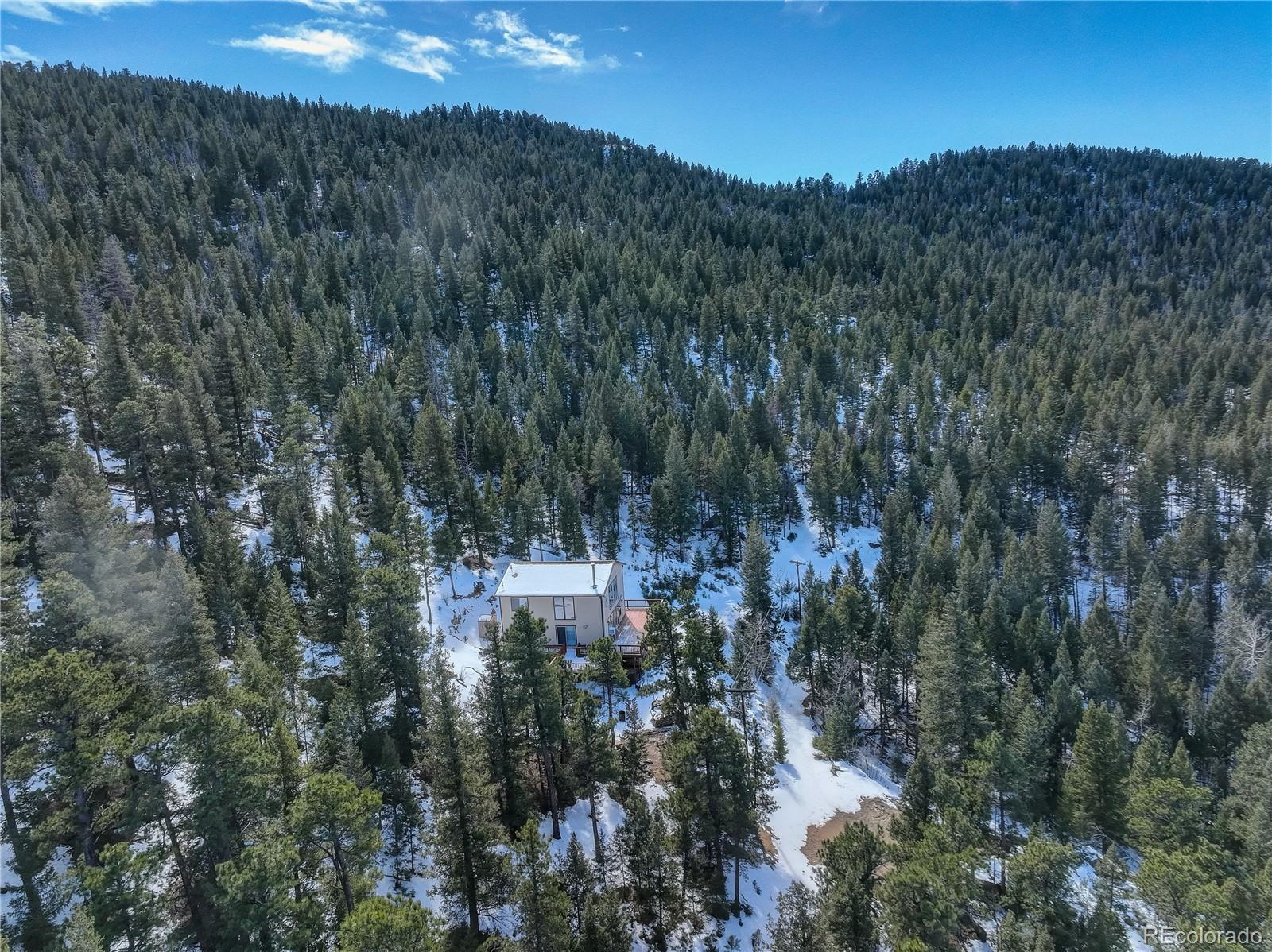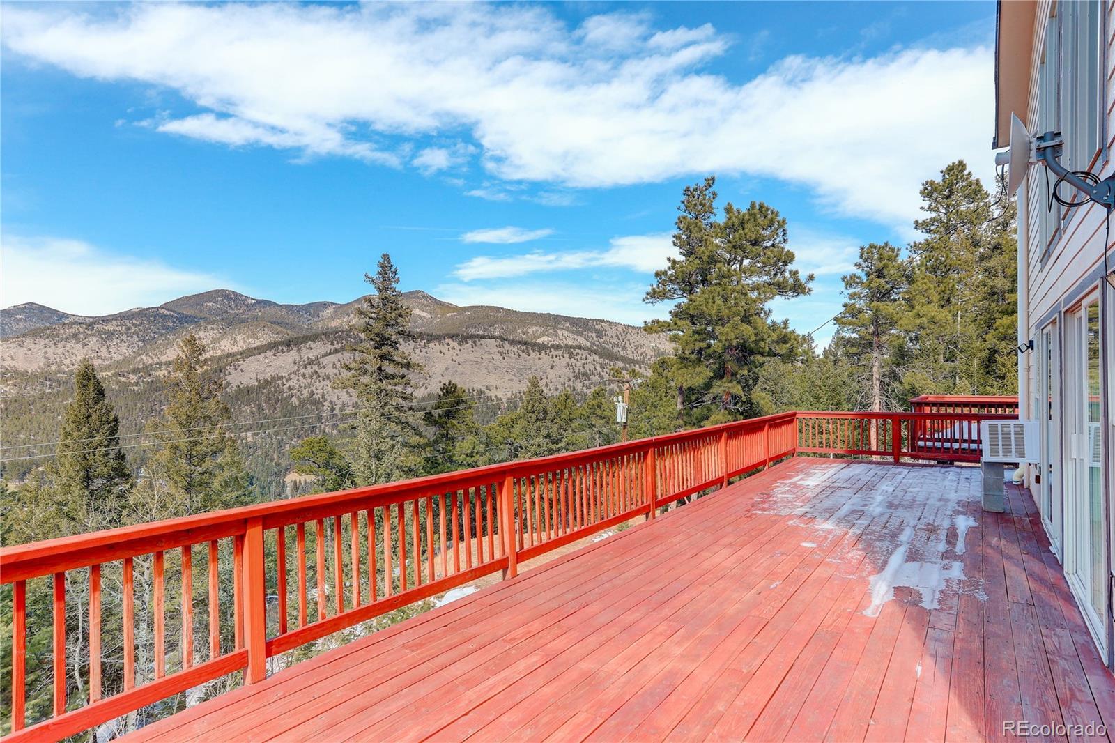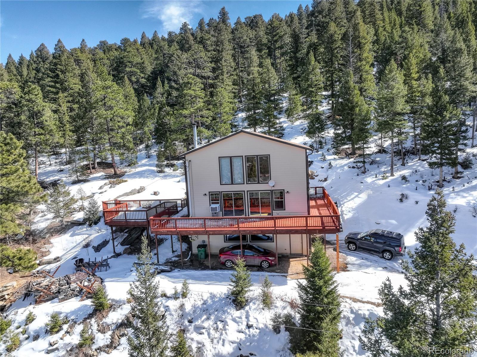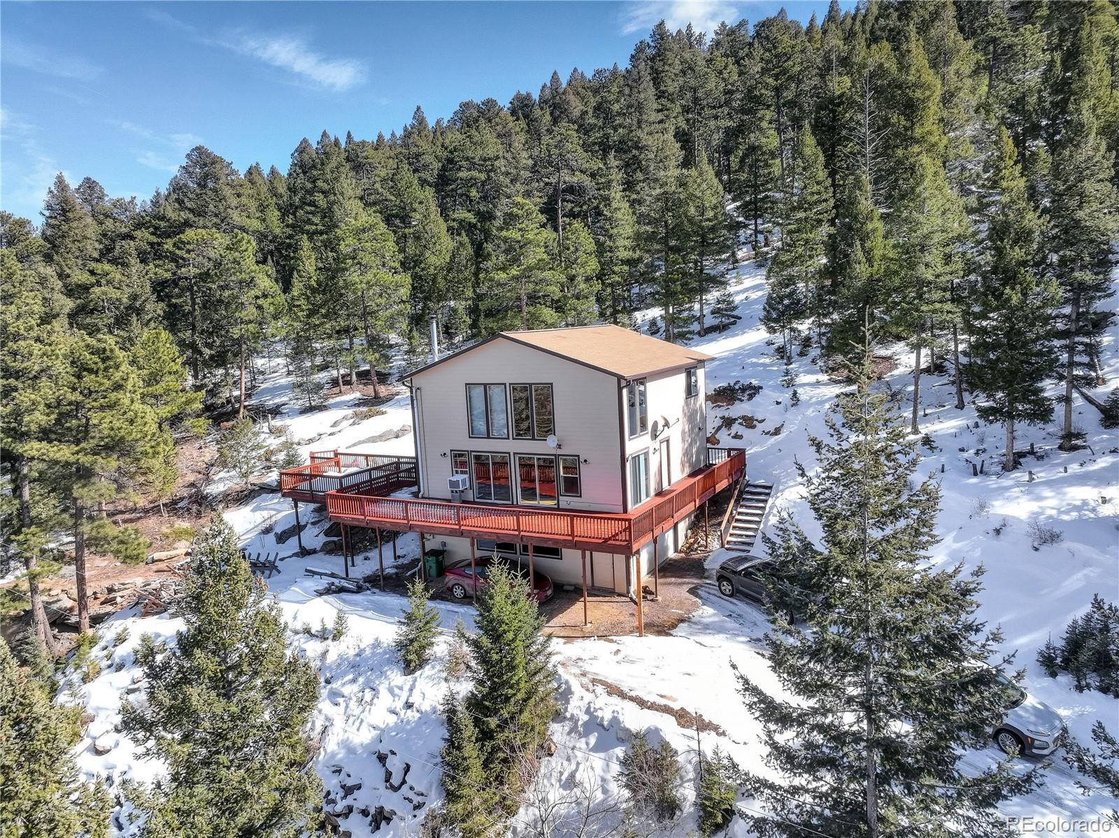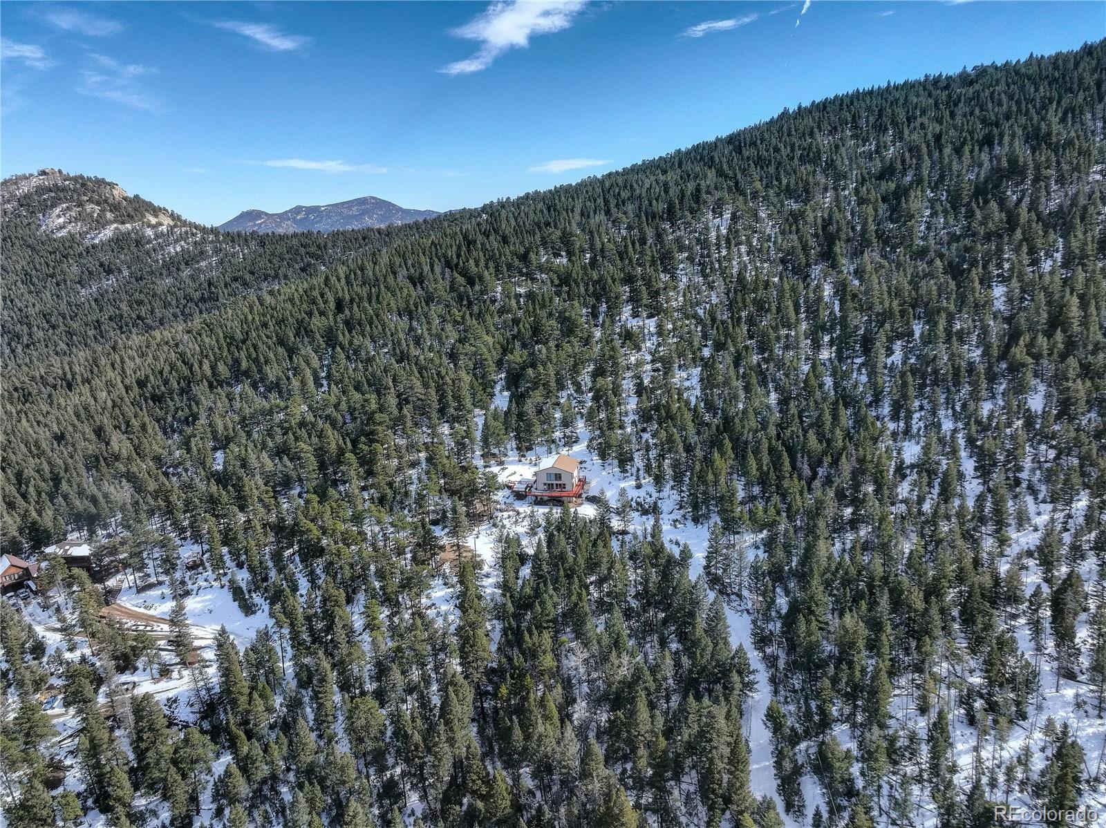 WILL CONSIDER TRADE – WOW! Discover this charming 2-story mountain hideaway perched high above Upper Bear Creek Road, offering spectacular views overlooking the Evergreen Valley. Sitting at an elevation of approximately 8,000 feet, this unique property includes both the main home and a second lot—together totaling over 7 acres—and backing to 700+ acres of open space and Denver Mountain Park. This home is an ideal live/work retreat for those seeking seclusion and inspiration in a forested mountain setting. Inside, the main floor features an open-concept layout, creating a versatile canvas for your personal design. Upstairs, the spacious loft bedroom provides room for expansion and could easily be reimagined into 2–3 bedrooms. The basement includes a storage area with potential for conversion into a non-conforming bedroom or studio space. Expansive windows frame the breathtaking views, filling the home with natural light and connecting you to the peace of the surrounding mountains. Additional highlights: Over 7 acres on 2 parcels, one with the home and one vacant Backs to over 700 acres of protected open space 30–45 minutes from Denver, yet worlds away from the city Endless opportunities for recreation, privacy, and mountain living Important Notes: The access road is not county-maintained Multiple sharp turns and curves—4WD or AWD is strongly recommended This property offers the rare chance to own a secluded mountain retreat with unmatched views, privacy, and potential.