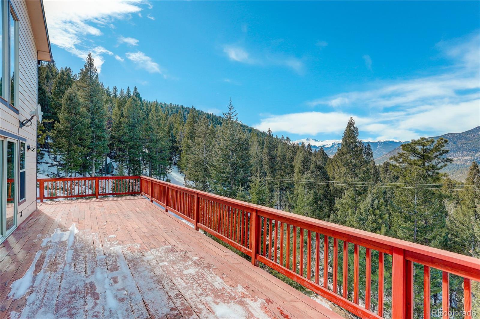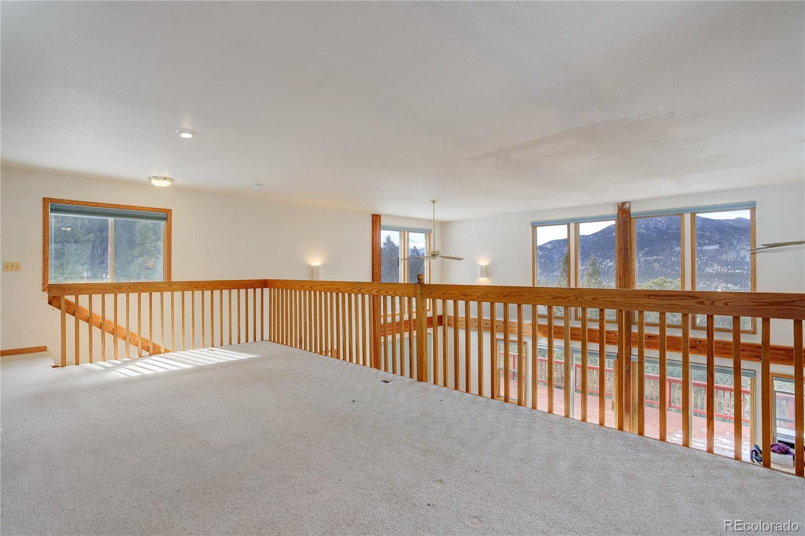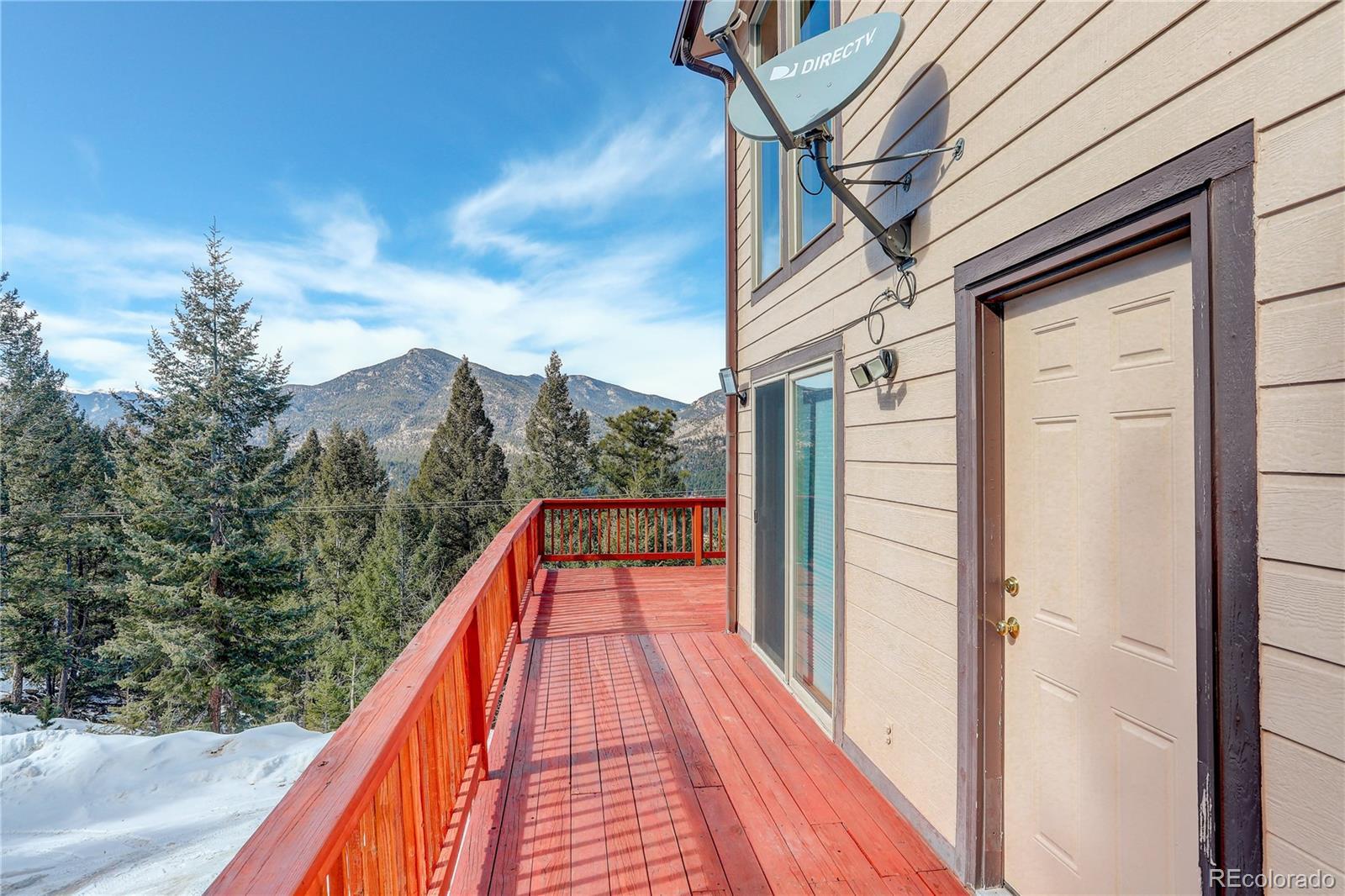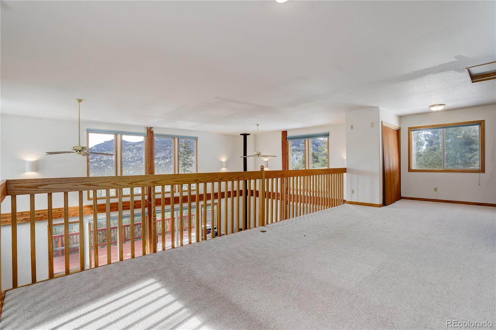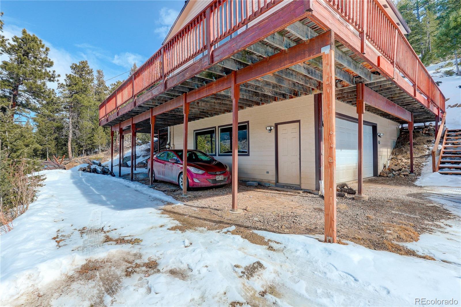 WILL CONSIDER TRADE – WOW! Discover this charming 2-story mountain hideaway perched high above Upper Bear Creek Road, offering spectacular views overlooking the Evergreen Valley. Sitting at an elevation of approximately 8,000 feet, this unique property includes both the main home and a second lot—together totaling over 7 acres—and backing to 700+ acres of open space and Denver Mountain Park. This home is an ideal live/work retreat for those seeking seclusion and inspiration in a forested mountain setting. Inside, the main floor features an open-concept layout, creating a versatile canvas for your personal design. Upstairs, the spacious loft bedroom provides room for expansion and could easily be reimagined into 2–3 bedrooms. The basement includes a storage area with potential for conversion into a non-conforming bedroom or studio space. Expansive windows frame the breathtaking views, filling the home with natural light and connecting you to the peace of the surrounding mountains. Additional highlights: Over 7 acres on 2 parcels, one with the home and one vacant Backs to over 700 acres of protected open space 30–45 minutes from Denver, yet worlds away from the city Endless opportunities for recreation, privacy, and mountain living Important Notes: The access road is not county-maintained Multiple sharp turns and curves—4WD or AWD is strongly recommended This property offers the rare chance to own a secluded mountain retreat with unmatched views, privacy, and potential.
