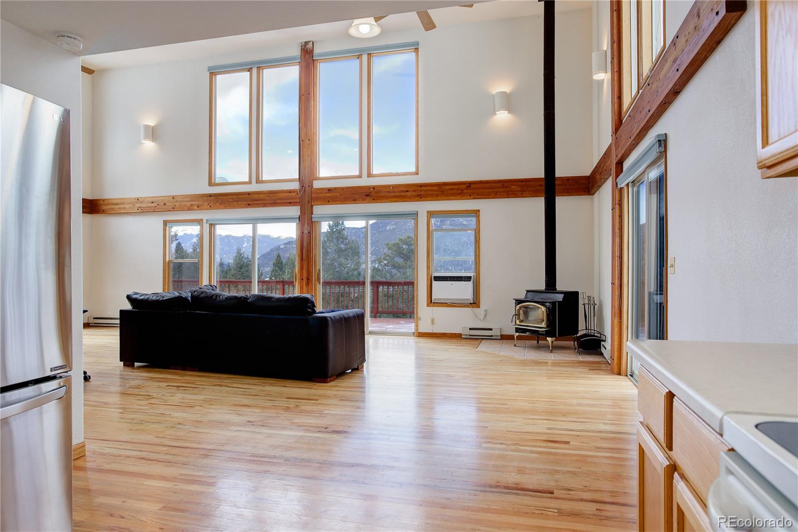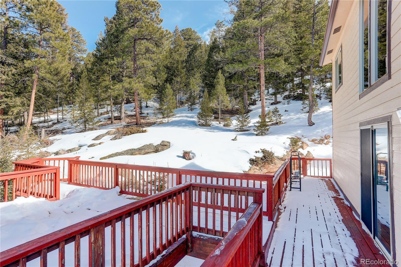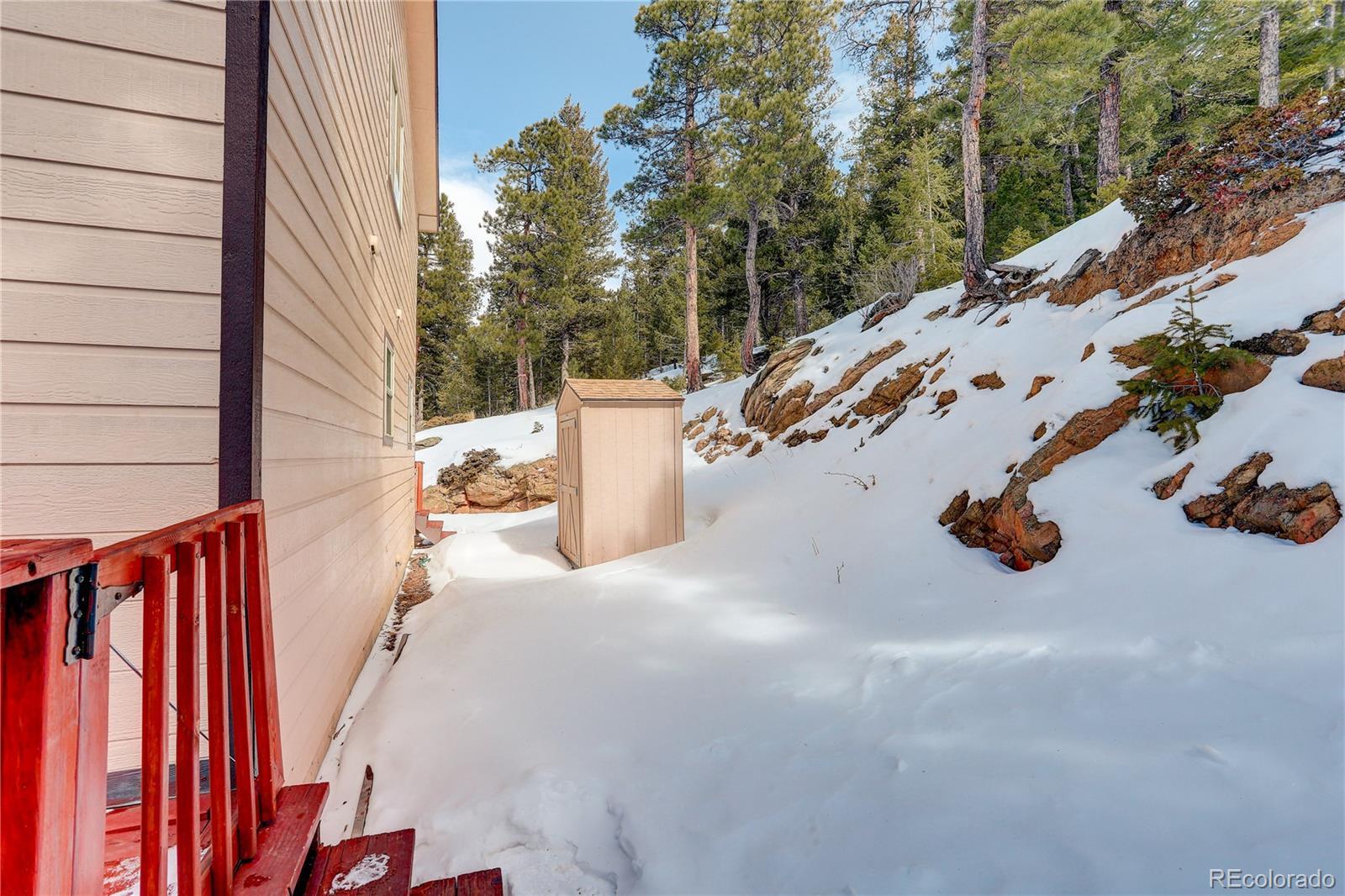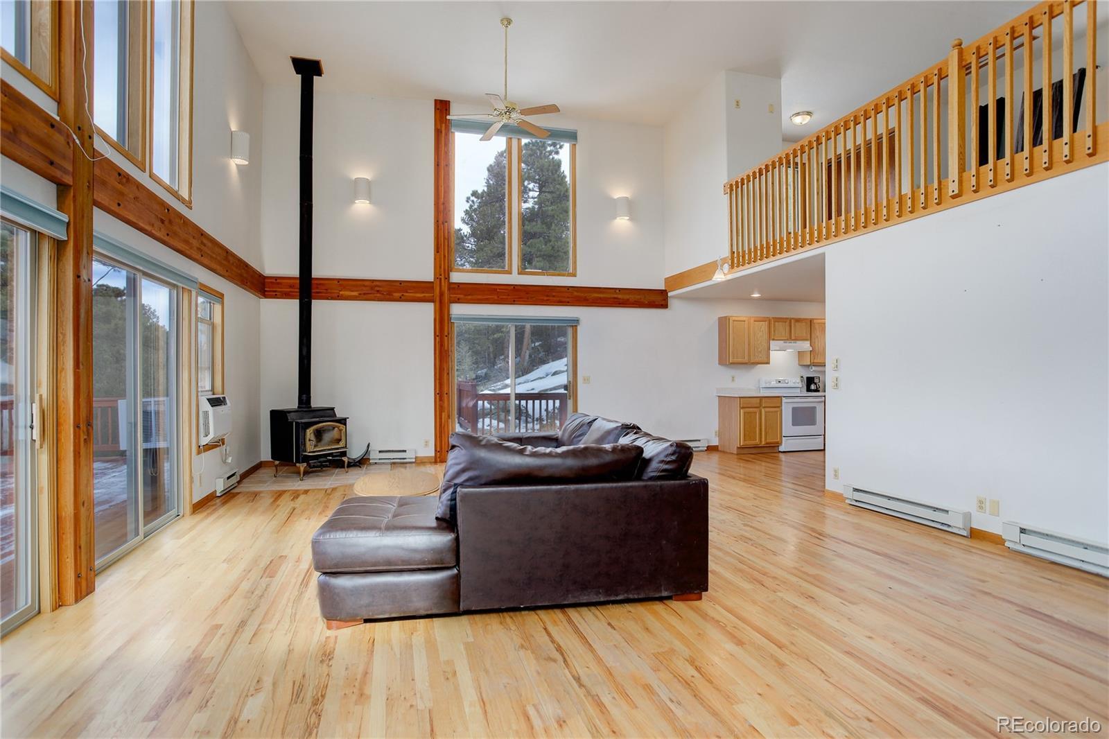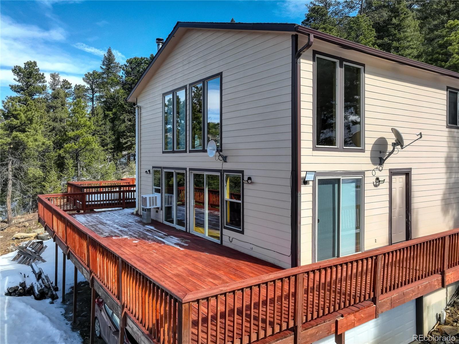 WILL CONSIDER TRADE – WOW! Discover this charming 2-story mountain hideaway perched high above Upper Bear Creek Road, offering spectacular views overlooking the Evergreen Valley. Sitting at an elevation of approximately 8,000 feet, this unique property includes both the main home and a second lot—together totaling over 7 acres—and backing to 700+ acres of open space and Denver Mountain Park. This home is an ideal live/work retreat for those seeking seclusion and inspiration in a forested mountain setting. Inside, the main floor features an open-concept layout, creating a versatile canvas for your personal design. Upstairs, the spacious loft bedroom provides room for expansion and could easily be reimagined into 2–3 bedrooms. The basement includes a storage area with potential for conversion into a non-conforming bedroom or studio space. Expansive windows frame the breathtaking views, filling the home with natural light and connecting you to the peace of the surrounding mountains. Additional highlights: Over 7 acres on 2 parcels, one with the home and one vacant Backs to over 700 acres of protected open space 30–45 minutes from Denver, yet worlds away from the city Endless opportunities for recreation, privacy, and mountain living Important Notes: The access road is not county-maintained Multiple sharp turns and curves—4WD or AWD is strongly recommended This property offers the rare chance to own a secluded mountain retreat with unmatched views, privacy, and potential.