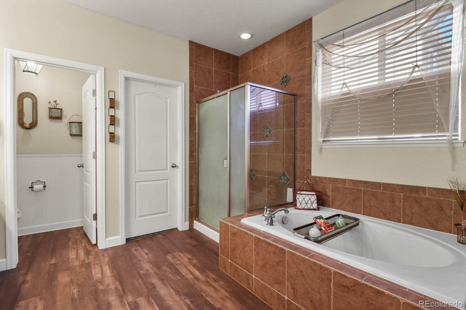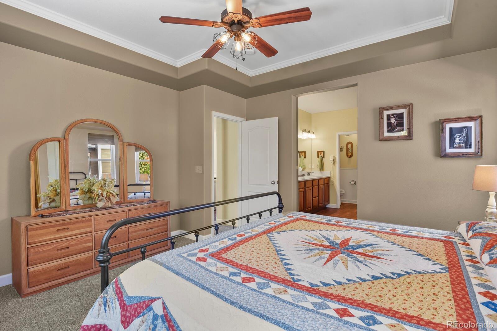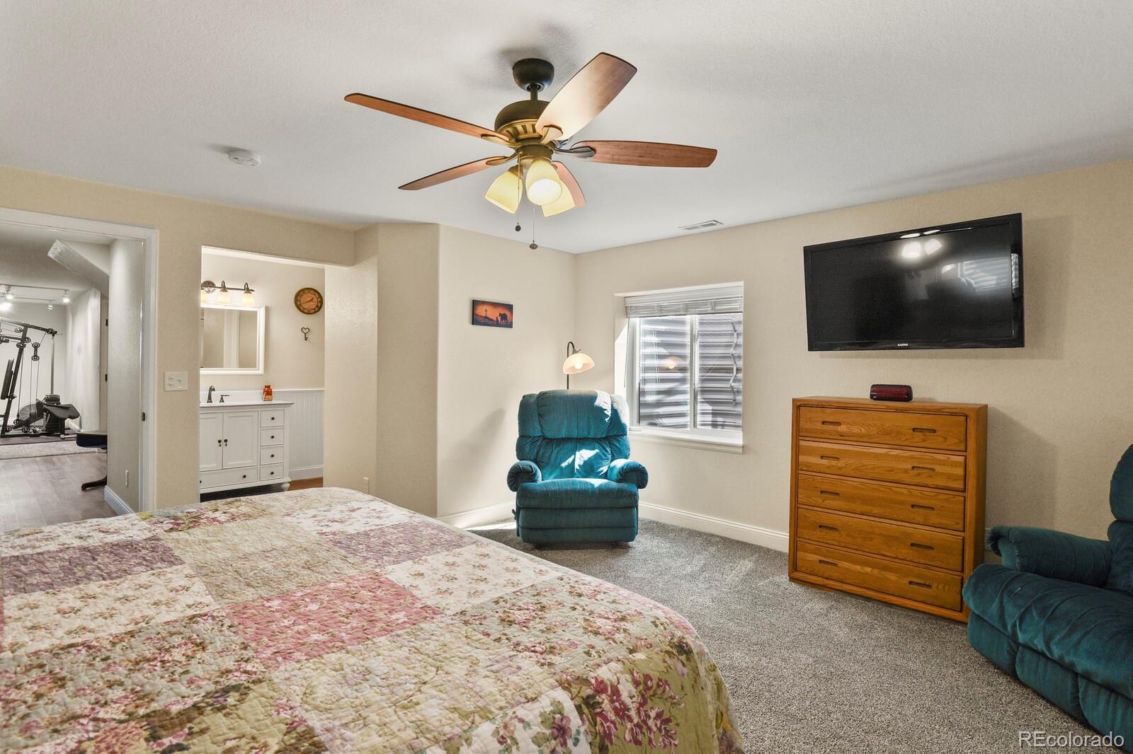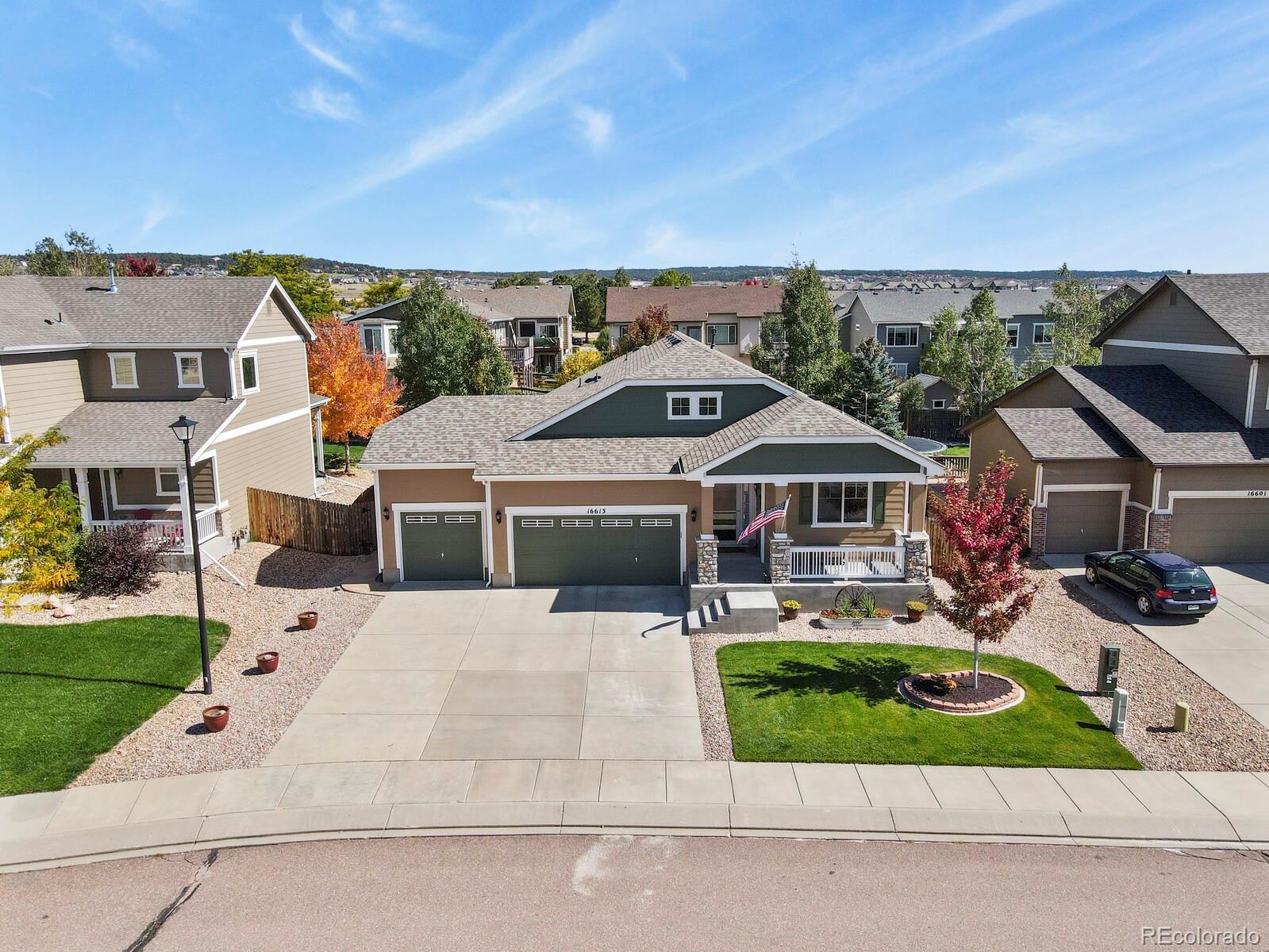 TWO PRIMARY BEDROOMS! Exceptional layout supporting multi-generational or other flexible living arrangements. The main level has a split bedroom layout with 3 bedrooms & 2 full baths that includes the owner’s suite w/ 5-piece bathroom & a generous walk-in closet. The basement hosts 2 more beds & 2 full baths; one is a Jr master bedroom with a private en-suite ¾ bathroom. | Popular ranch floor plan built by Richmond American Homes with all the essentials on the main level. Step inside to a welcoming foyer that leads into a bright, open great room with lots of windows allowing streams of natural sunlight. The kitchen is the hub of the home and features sleek counters, 42” cabinetry, and large center island that’s perfect for prepping, entertaining or casual dining at the breakfast bar. The living room centers around a striking custom stone fireplace, and surround sound is already in place! The dining area leads out to the patio & backyard oasis with mature trees & established landscaping.. it is beautiful! Downstairs, the basement extends the living space with a large rec room + flex area, and split bedrooms maximize privacy and comfort on this level too. The 3-car garage features a service door to the backyard, utility sink, smart opener, and generous workspace with shelving & select cabinetry included. This home blends thoughtful design & smart functionality with improvements over the years & impeccable maintenance. New LVP flooring throughout all traffic & wet areas, new carpet. LED lighting. Wet-bar rough-in at the basement. Central AC + ceiling fans throughout. 36” bath vanities. 5” baseboards. Tray ceiling, crown molding, & lots more! 2025: NEW ROOF & NEW WATER HEATER. Outdoor enthusiasts will appreciate being close to extensive parks, open space, & miles of trails. Premier location in one of Monument’s most desirable communities. Major commuter routes all within a short drive, only 2 miles to I-25 ramps. With no metro district, you’ll enjoy lower taxes, too!