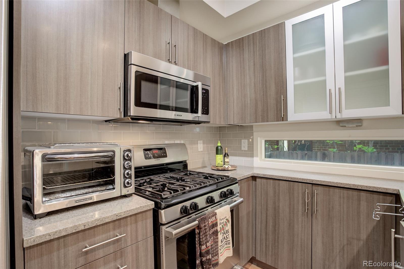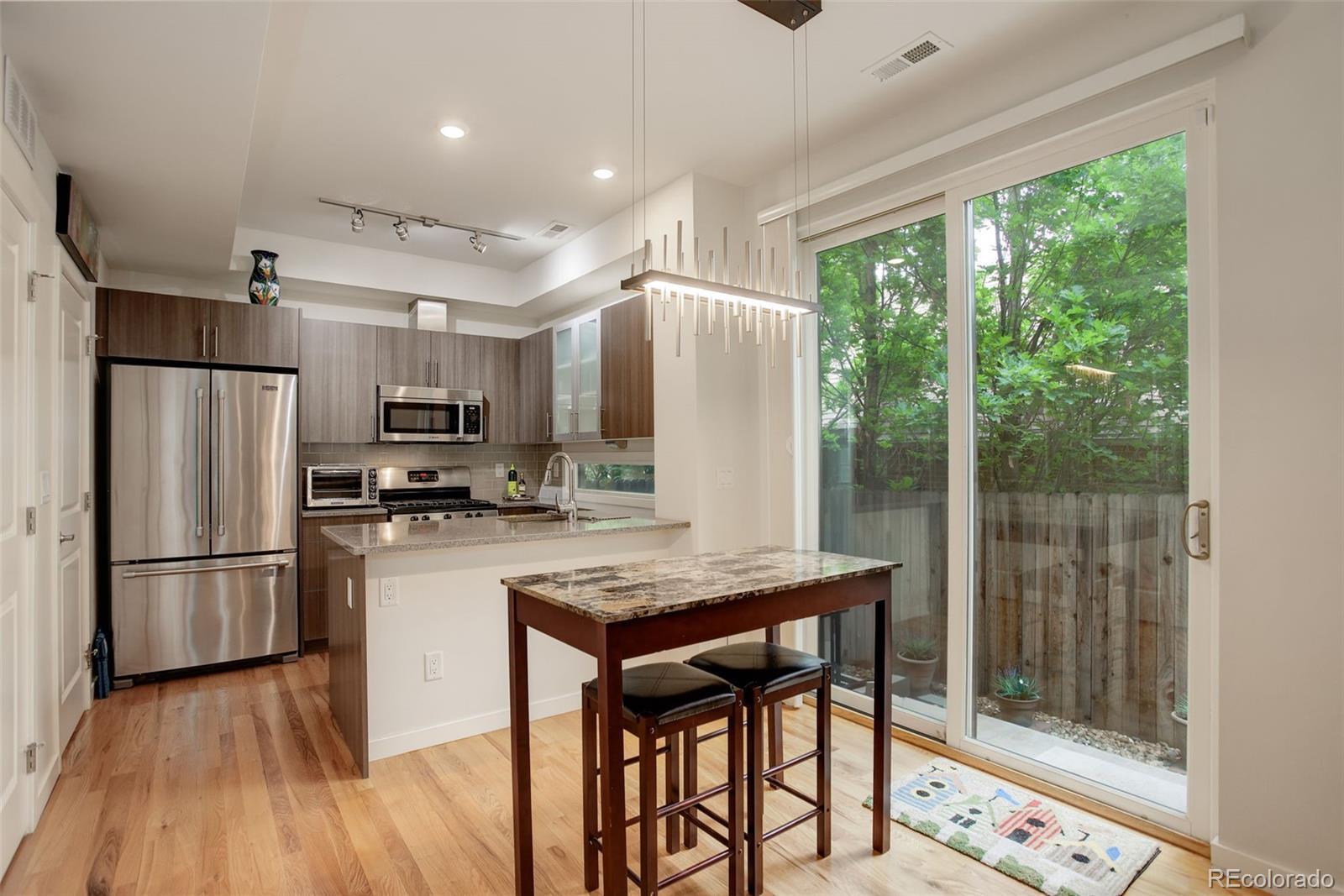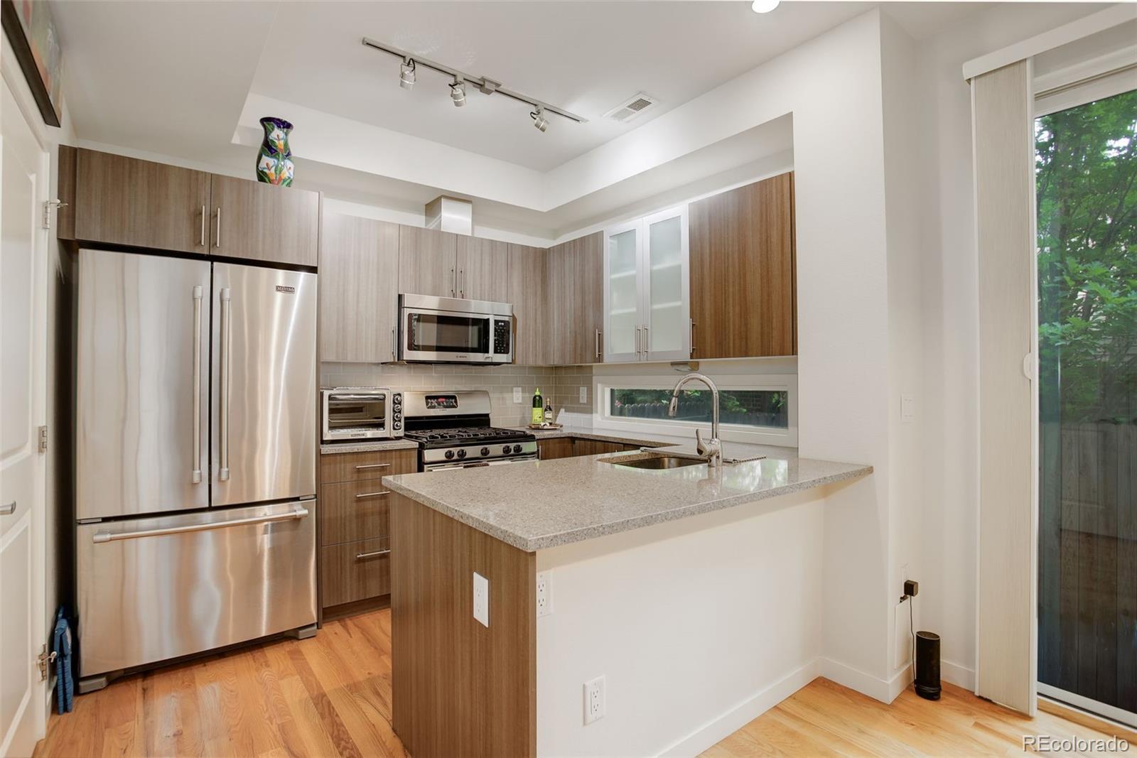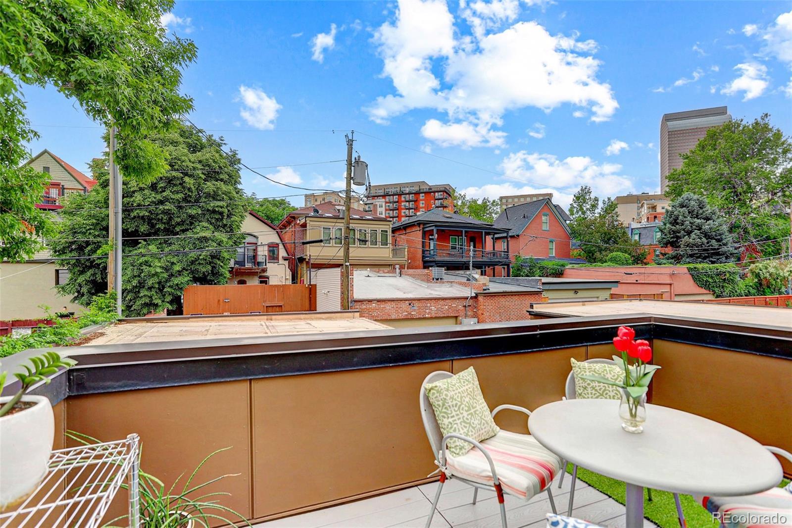 Wait, did you say TWO private outdoor spaces in the heart of Downtown?!? Yup, I sure did. Get ready to fall in love with this townhome that has it all. Tucked into the back of the property for ultimate peace and quiet your dream home awaits. Gleaming hardwood floors greet you as you enter. Cook up gourmet meals on quartz counters and using stainless steel appliances. Throw the best BBQs when you utilize your private side yard set up as a Zen rock garden. Everything will taste delicious as you enjoy the convenience of the natural gas line hooked up to the *included* Weber grill. Or take the party upstairs to the rooftop deck where your guests will take in the city skyline views. The mature trees that surround your space give you a sense of calm and relaxation while you melt away the stress of the day. The retractable awning gives you the flexibility of basking in the sun or staying cool in the shade. Never schlep your laundry again because you now have *included* laundry machines right in your home! Your private garage located just steps from your front door keeps your car and toys safe and cool in summer or warm in winter. Ditch the car altogether and walk to world-class shopping and dining as well as the best bars and clubs near Coors Field, RiNo and other spots just a few minutes away. Welcome Home!
