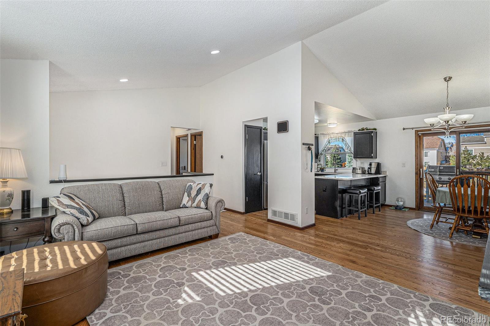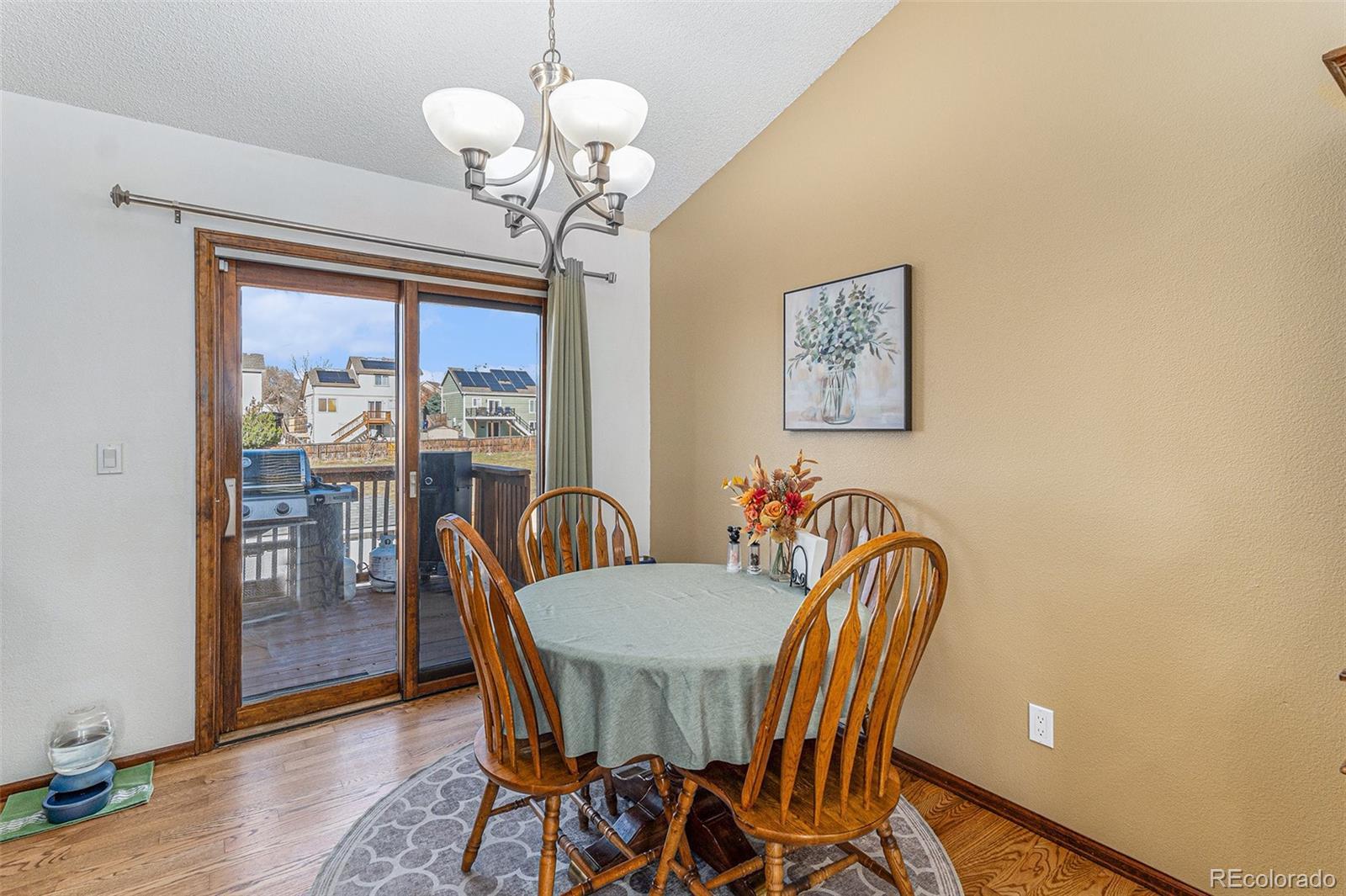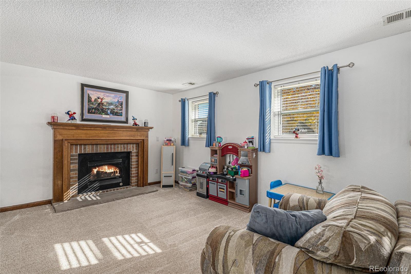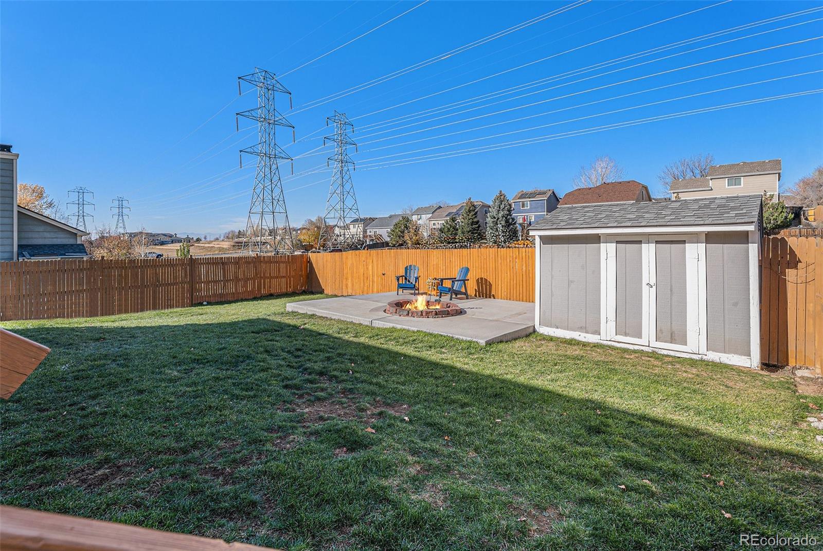 MOVE IN READY!! Great starter home in desirable Seven Hills Community and Award Winning Cherry Creek School District. The main floor features large living room open to dining room and kitchen. The living room and dining room have refinished wood floors. The dining room has direct access to the deck. The kitchen has wood floor, granite counters, stainless steel appliances and pantry. The Primary Bedroom has a walk in closet, carpet and access to the full bath. The 2nd bedroom has a full wall closet and carpet. The lower level has a family room with fireplace and room for an office or easy to make a 3rd bedroom and walkout access to the backyard. The 3/4 bath and laundry with washer and dryer complete the lower level. Walk out to a large fenced yard overlooking open space. There is a concrete pad that would be great for a firepit for late evening relaxing and entertaining. Two car attached garage with NEW garage door plus a shed for lawn and tool storage. Additional Features are central air, sprinkler system, newer carpet, new wrought iron stair spindles, lighting, door hardware, NEW roof and windows (2023), NEW exterior paint (2025) and much more. You won't want to miss this opportunity!