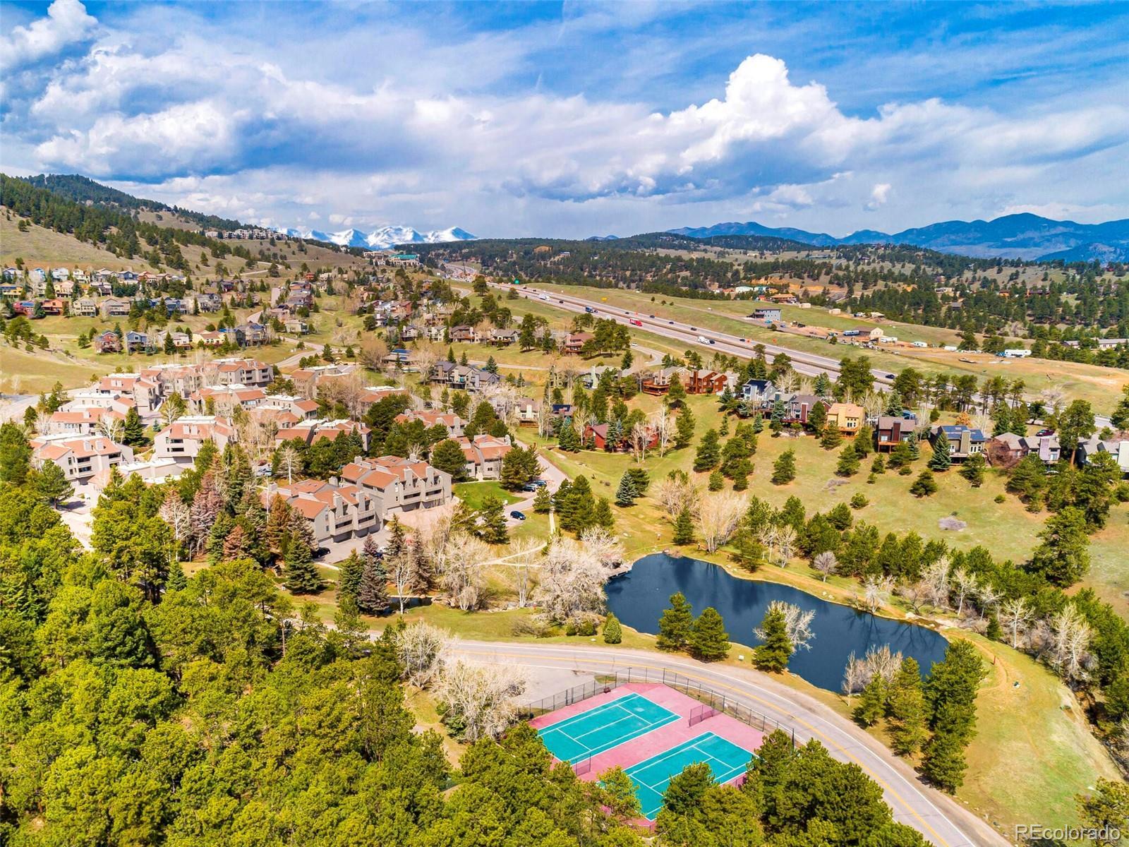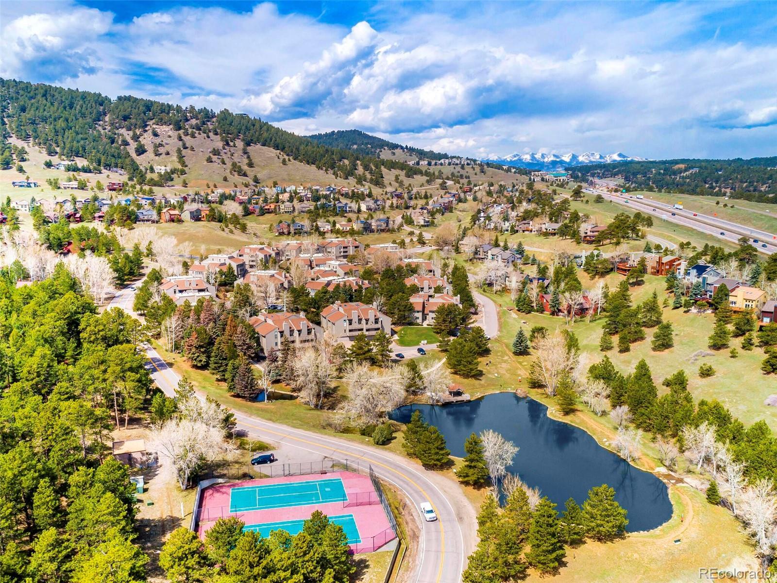 Stunning penthouse unit in sought after Genesee Village! Loft unit with an amazing mountain view that has been updated. Enjoy this spacious sunny floor plan with an open loft area. Remodeled kitchen with granite counters and stainless steel appliances. This unit has a main floor primary suite and updated primary bathroom. Secondary full bathroom has been updated. High vaulted ceilings in the primary bedroom and main living area gives this floor plan inviting energy. Enjoy daily wildlife sighting from your private deck. Watching the Elk roaming through the Village is an added bonus! Brand new Pickle Ball & Tennis courts have been finished and ready for use. The clubhouse offers a great workout facility with an outdoor pool. The streams that run throughout the village that feed into the pond allow for a peaceful and serene setting! Two very spacious additional storage units are an added bonus. Comcast services the area for internet and cable. HOA takes care of all snow removal, exterior maintenance, exterior insurance, water/sewer, trash, pool/workout gym, tennis courts, community streams and pond. 2 Storage units included, one storage unit is in the garage and the second storage unit is located just off the deck. Location is within 2 minutes of I-70 for a very East commute to Denver. Enjoy being in the foothills of the Rocky Mountains yet spoiled with all the amenities of easy mountain living. Directions