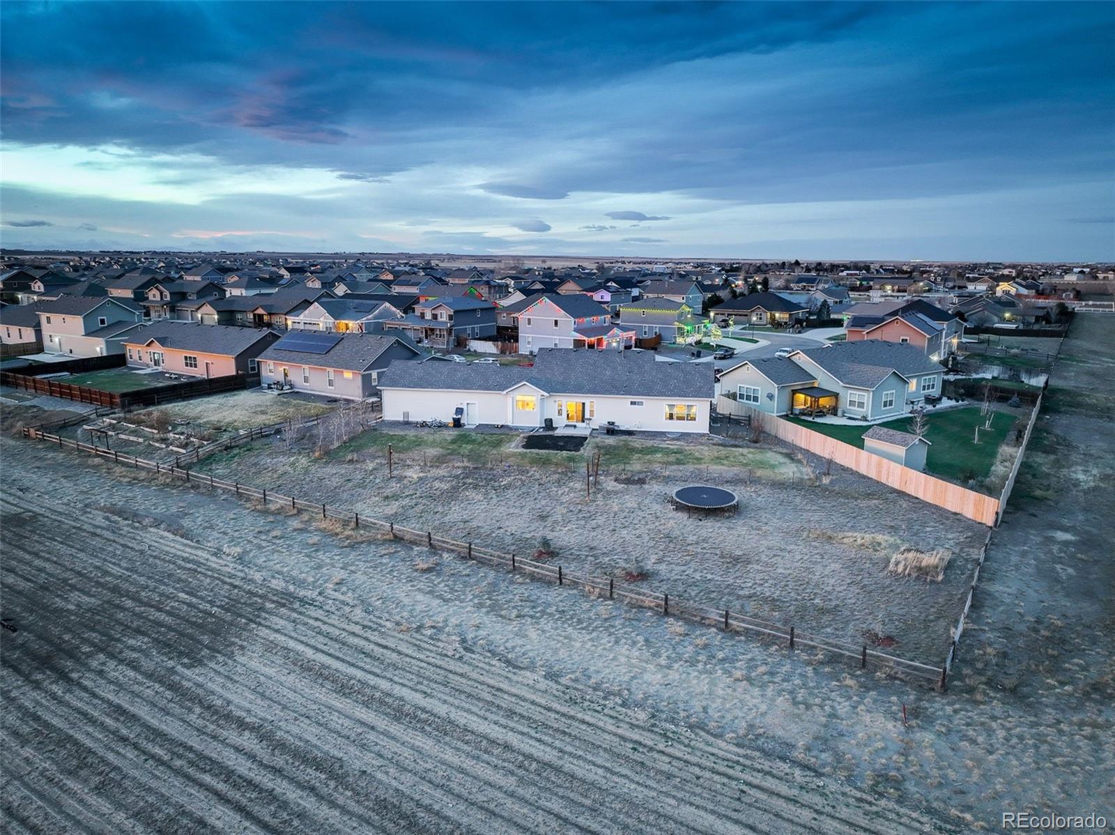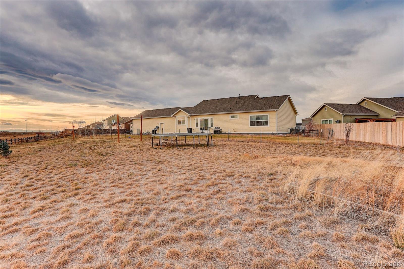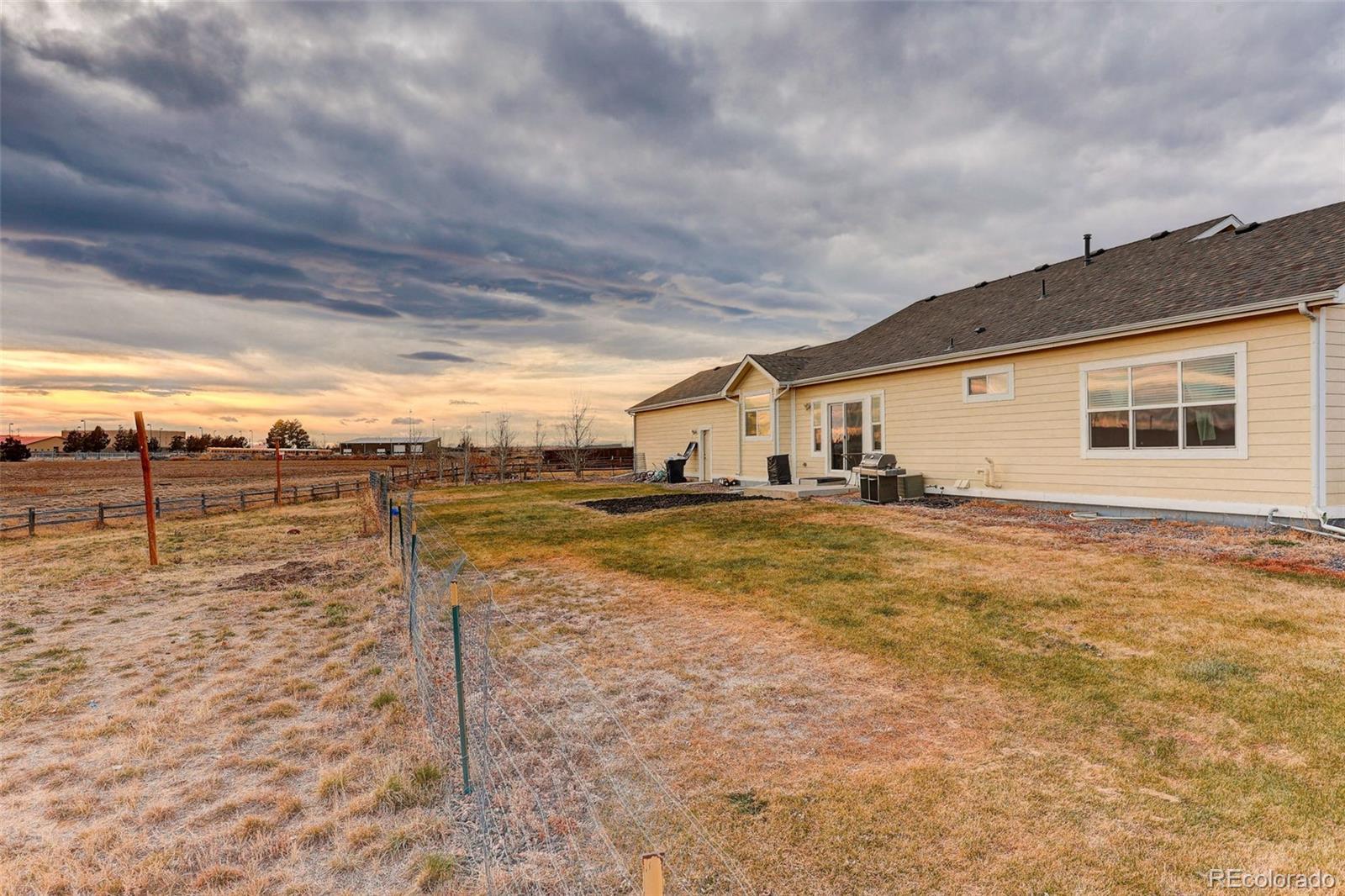 Just 7 Years New & Full of Country-Charm Sass! Welcome home to this sunny, sassy, traditional farmhouse-style ranch in the heart of Strasburg, Colorado—where small-town living meets big-time comfort. With nearly 4,000 sq ft of beautifully designed living space and a massive 23,000 sq ft lot, this home gives you room to breathe, play, plant, host, and simply enjoy the good life. It’s light, bright, and delightfully inviting. Step inside and soak up the sunshine streaming through gorgeous large windows in every direction. This home is all about bright, open spaces—perfect for morning coffee moments, lazy Sunday lounging, and golden-hour dinners with a view. 3 Spacious Bedrooms, 3 Sparkling Bathrooms. Whether you’re hosting for the holidays or soaking in some alone time, everyone gets their space. The layout is wide open and effortless—just the way main-level living should be. There is a dreamy 3-Car Garage. Bring the toys, tools, trucks, hobbies… there’s room for it all. Curb appeal for days. Grab your sweet tea and settle onto the huge front porch—this is the kind of porch that practically demands rocking chairs, twinkle lights, and long chats with neighbors. The crisp lines and charming farmhouse touches make this home an absolute standout. Amazing outdoor space that just won’t quit. Over half an acre gives you endless possibilities—garden beds, play spaces, BBQ parties, furry friends, future shop… if you can dream it, this lot can hold it. Fully fenced and with no backyard neighbors, July 4th firework viewing is one of the current owners’ favorite things! There is so much to love here! From its sunny personality and spacious layout to its incredible lot and inviting farmhouse charm, this home checks all the boxes—and then some. Don’t miss your chance to enjoy Colorado country living with style, space, and a whole lot of fun. Come see why everyone falls in love the moment they pull up. Only 25 minutes to Aurora and walking distance to all the schools.