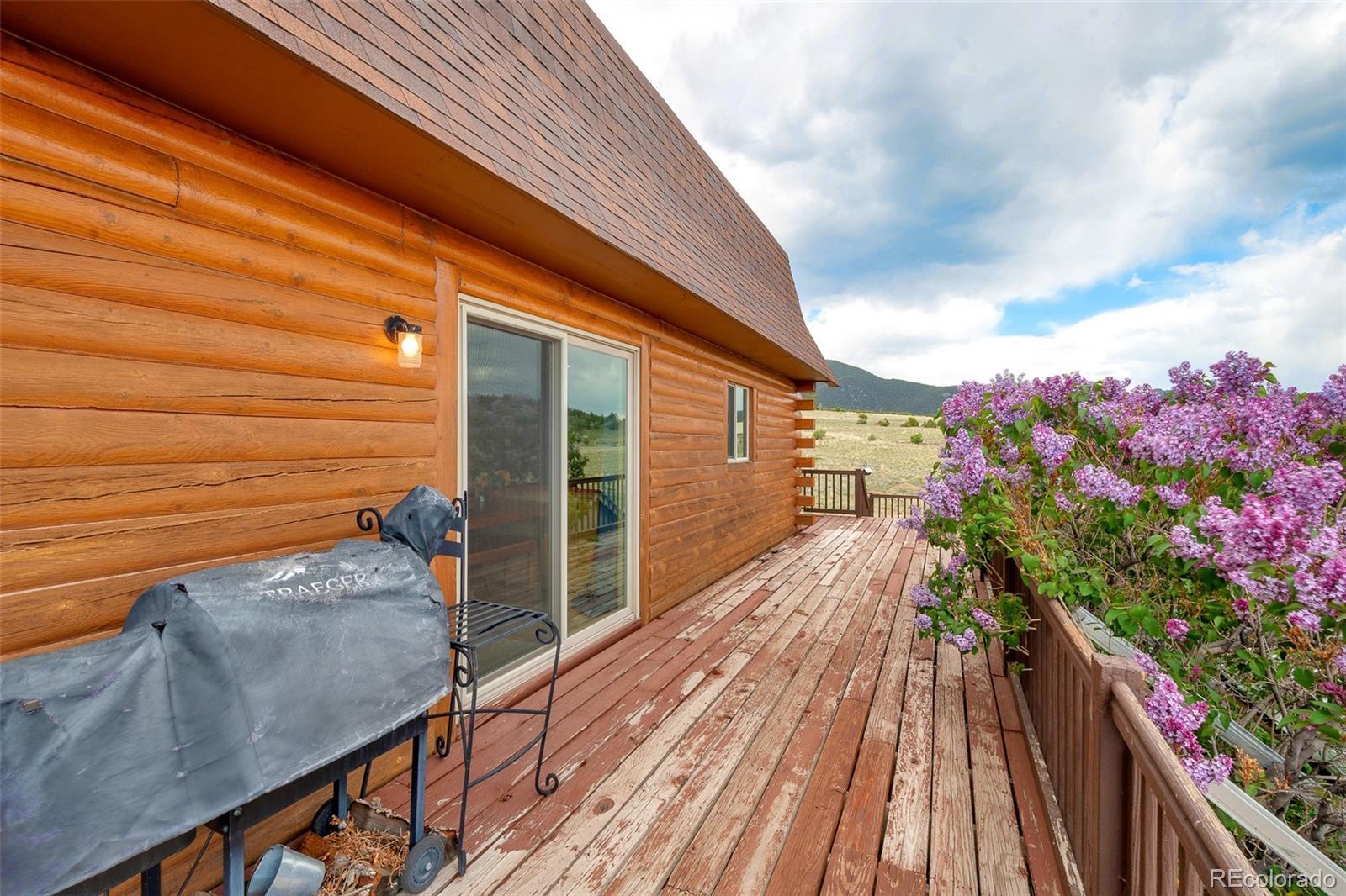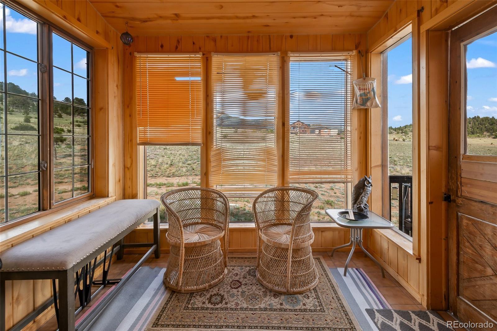 Escape to this charming 2-bedroom, 2-bathroom log cabin on 10 fully fenced acres in the peaceful South Park Ranches subdivision. This off-grid retreat offers privacy and seclusion while still being conveniently located near Highway 24 and just across from the renowned Eleven Mile Reservoir—known for world-class fishing and outdoor recreation. Step into the inviting sunroom before entering the main home, where you’ll find an open kitchen with ample cabinet space that flows seamlessly into the cozy living room. Vaulted ceilings and warm wood finishes create a spacious and comfortable atmosphere. Upstairs, a loft overlooks the main living area and includes a bedroom and bathroom—perfect for guests or a private retreat. The home also features an unfinished basement, offering plenty of potential for storage or future expansion, as well as a one-car garage. This property is entirely off-grid, powered by a reliable solar system with lithium-ion batteries—ideal for sustainable mountain living. Whether you're looking for a year-round home or a weekend getaway, this unique property combines rustic charm, modern efficiency, and unbeatable proximity to Hartsel, Breckenridge, Buena Vista, and Colorado Springs.