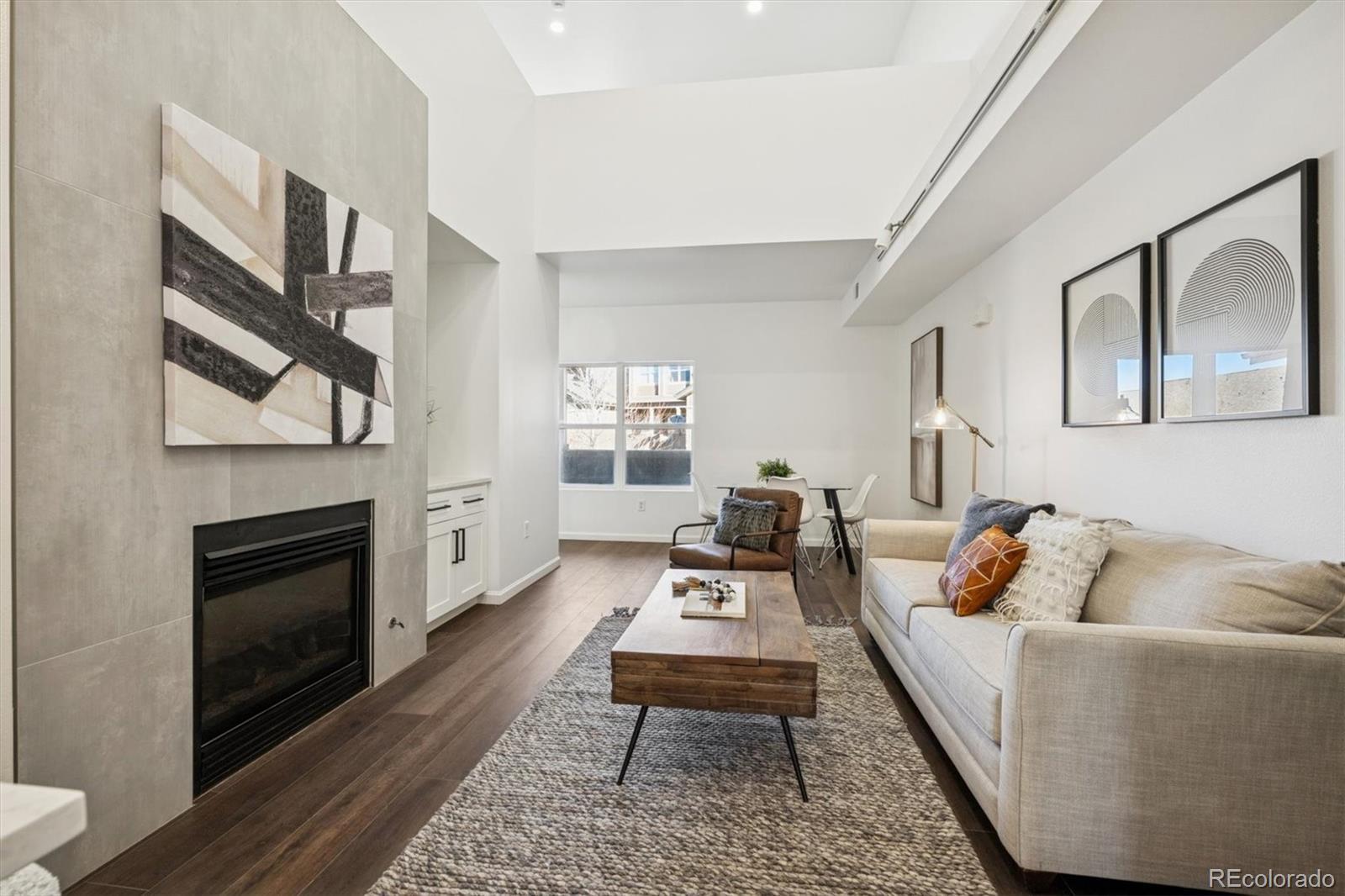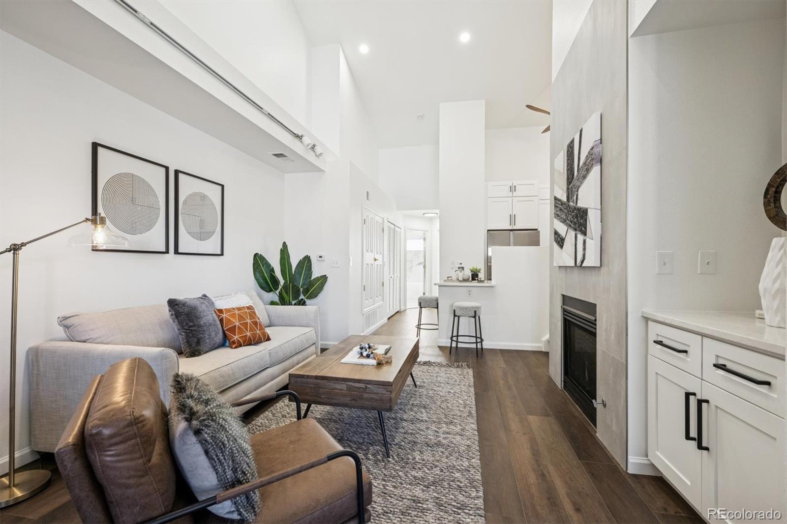 Step into this beautifully updated, open and airy condo showcasing modern flair throughout. High ceilings and abundant natural light welcome you into the bright living room, featuring soaring ceilings, custom built-in cabinetry for storage, and a cozy gas fireplace with elegant tile surround. The fully remodeled kitchen is a standout with sleek quartz countertops, fresh cabinetry, and a stylish backsplash—perfect for both everyday living and entertaining. A convenient laundry closet includes a washer and dryer for added ease. The spacious bedroom offers a peaceful retreat with vaulted ceilings and a bright, airy feel. The fully updated bathroom features gorgeous shower tile, chic finishes, and all-new modern upgrades. Upstairs, a versatile loft with brand-new carpet provides flexible space ideal for a home office, lounge, or guest area. Additional updates include new flooring throughout, a new water heater, and a convenient 1-car attached garage. Ideally located within walking distance to the W Toll Gate Creek Trail and just minutes from grocery stores, dining, and entertainment. This move-in-ready home is a must-see—schedule your showing quickly, as it won’t last long.