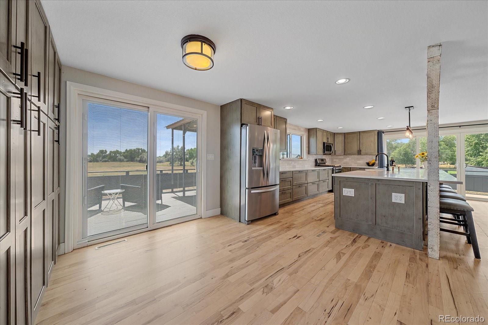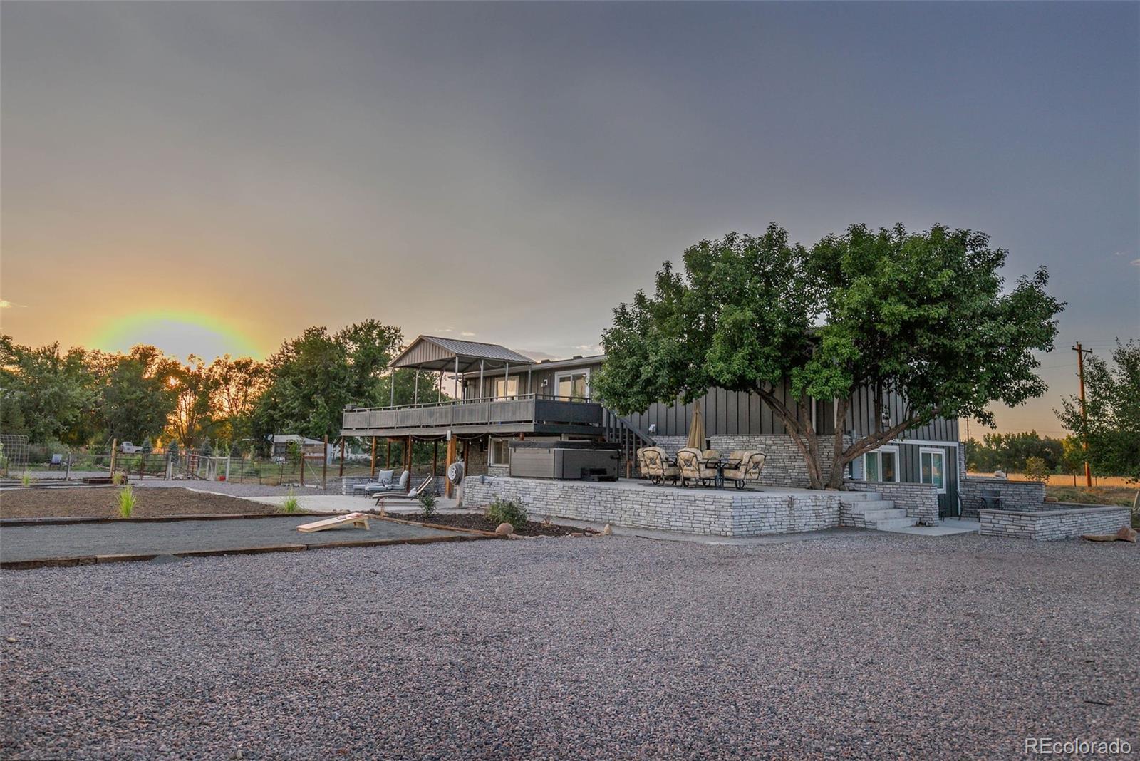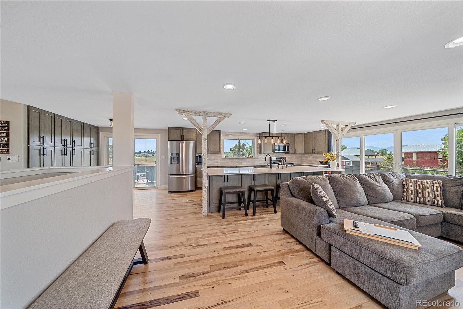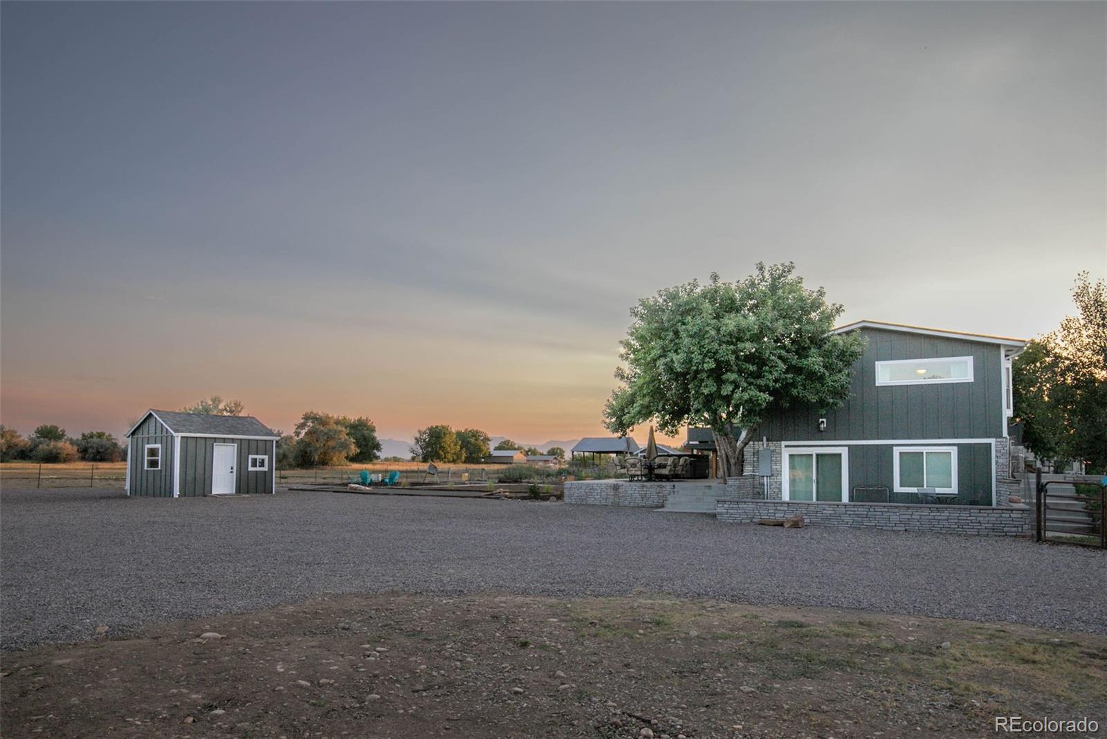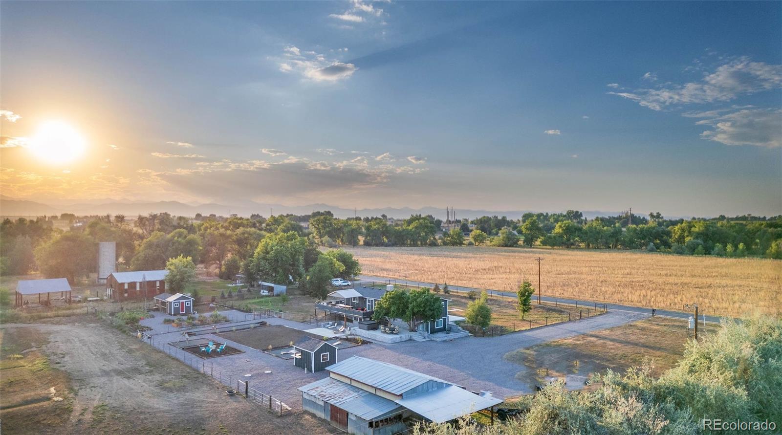 New Price! 10-Acre Mountain View Paradise & Erie Annexation. Discover a rare Colorado gem: 10 acres of privacy surrounded by 1,000 acres of open space, offering mountain views, farm amenities, and unmatched future potential. Agricultural zoning, shared irrigation water rights, city water to the house, and a private well make this property as practical as it is beautiful. A seasonal pond w/ an island and bridge creates the perfect backdrop for entertaining. The ranch style home walk-out basement was completely taken down to the studs in 2020 and rebuilt with comfort and durability in mind. Updates include upgraded insulation, James Hardie cement siding, new roof with gutters, energy-efficient windows, plumbing, electrical, HVAC, and a full interior remodel. Inside you'll find a chef's kitchen with custom cabinetry, a floor-to-ceiling pantry with pull-out drawers, and a 12-foot island designed for gatherings. Fresh living spaces, remodeled bathrooms, a primary suite with en-suite bath, and four additional bedrooms make this home truly move-in ready. Outdoors, the property offers a 10k SF garden with raised beds, melon/pumpkin patches, and orchard. A covered chicken coop with a large run set on a concrete perimeter provides both space and security, while the classic barn features 2 horse stalls and a lean-to area for additional animals or storage. For recreation enjoy a semi wrap-around deck, 4 concrete patios with accent finishes and sit walls, a fire pit, horseshoe, cornhole, and axe-throwing pits, and a bar/shed. Recent annexation into the Town of Erie unlocks extraordinary possibilities. Unlike neighboring Boulder County properties, this parcel allows flexibility to add structures, build an ADU, host farm events, or even scrape/rebuild without size restrictions. Whether you're envisioning a private retreat, hobby farm, or event venue, this property delivers a lifestyle rarely available with such sweeping views and long-term potential.