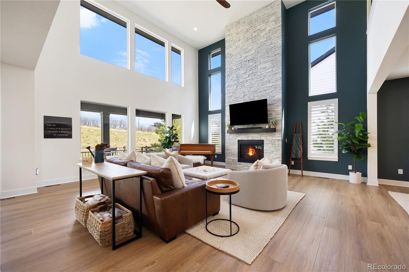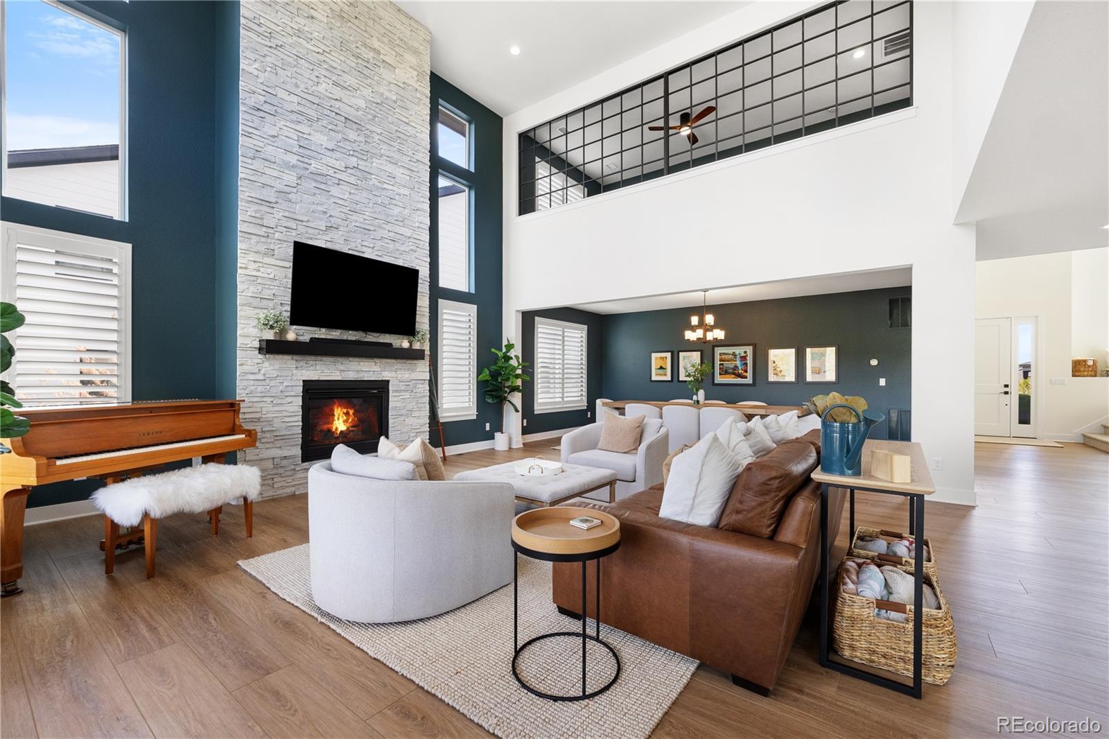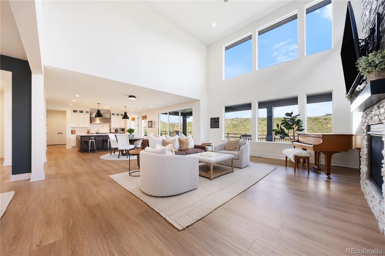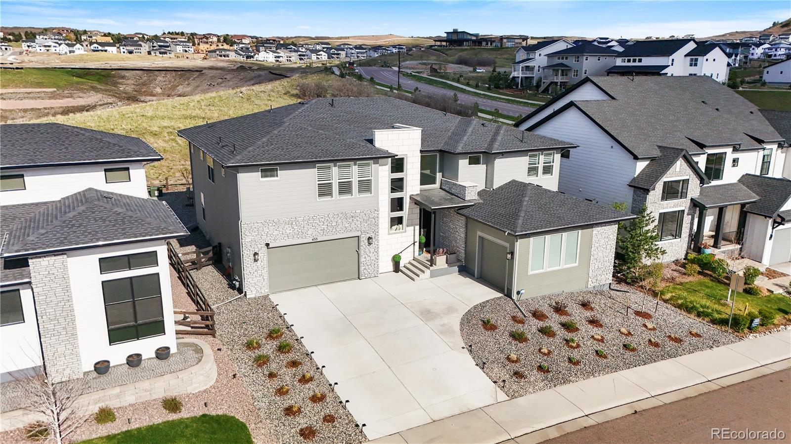 Luxurious “Shavano” model in Montaine. Own It Now—No Wait. To achieve this level of finish in today’s market, buyers often must jump to a higher price point-just to match what this home already offers. With rising construction costs, builder delays, and increasing tariffs, replicating these upgrades would cost thousands more and take months longer. This is your opportunity to secure top-tier luxury, value, and location—now. This home sits on a premium west-facing lot that backs to open space in Montaine, offering privacy, daily wildlife, and a snowmelt-friendly driveway. Over $120K in high-end upgrades are complete: plantation shutters, designer lighting, custom wall accents, upgraded paint, epoxy-coated garage floors, built-in storage, and an outdoor fridge in the oversized finished garage. The chef’s kitchen impresses with professional-grade JennAir appliances (including 4 ovens), a massive quartz island, soft-close cabinetry to the ceiling, and upscale finishes throughout. The great room features 21-ft ceilings and expansive stackable sliders for seamless indoor-outdoor living. The main-floor office doubles as a guest suite. Upstairs includes a custom loft, three spacious bedrooms—one en-suite, two Jack-and-Jill—and a bonus room ideal for a second office or pet retreat. The primary suite showcases a spa-style wet room with dual showers, soaking tub, and dual walk-in closets. Enjoy resort-style amenities: clubhouse, pool, fitness center, and miles of scenic trails—just minutes from Castle Rock’s top shopping, dining, and commuter access. Listing broker makes no guarantees. All information, including square footage, schools, and HOA details, to be independently verified by buyer.