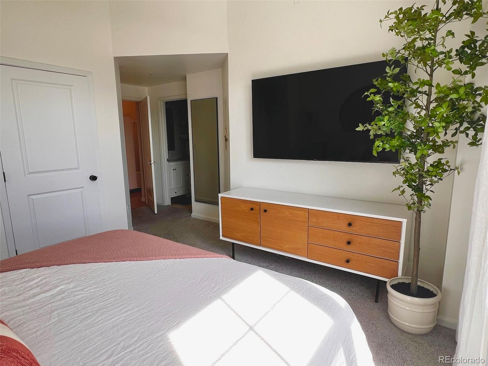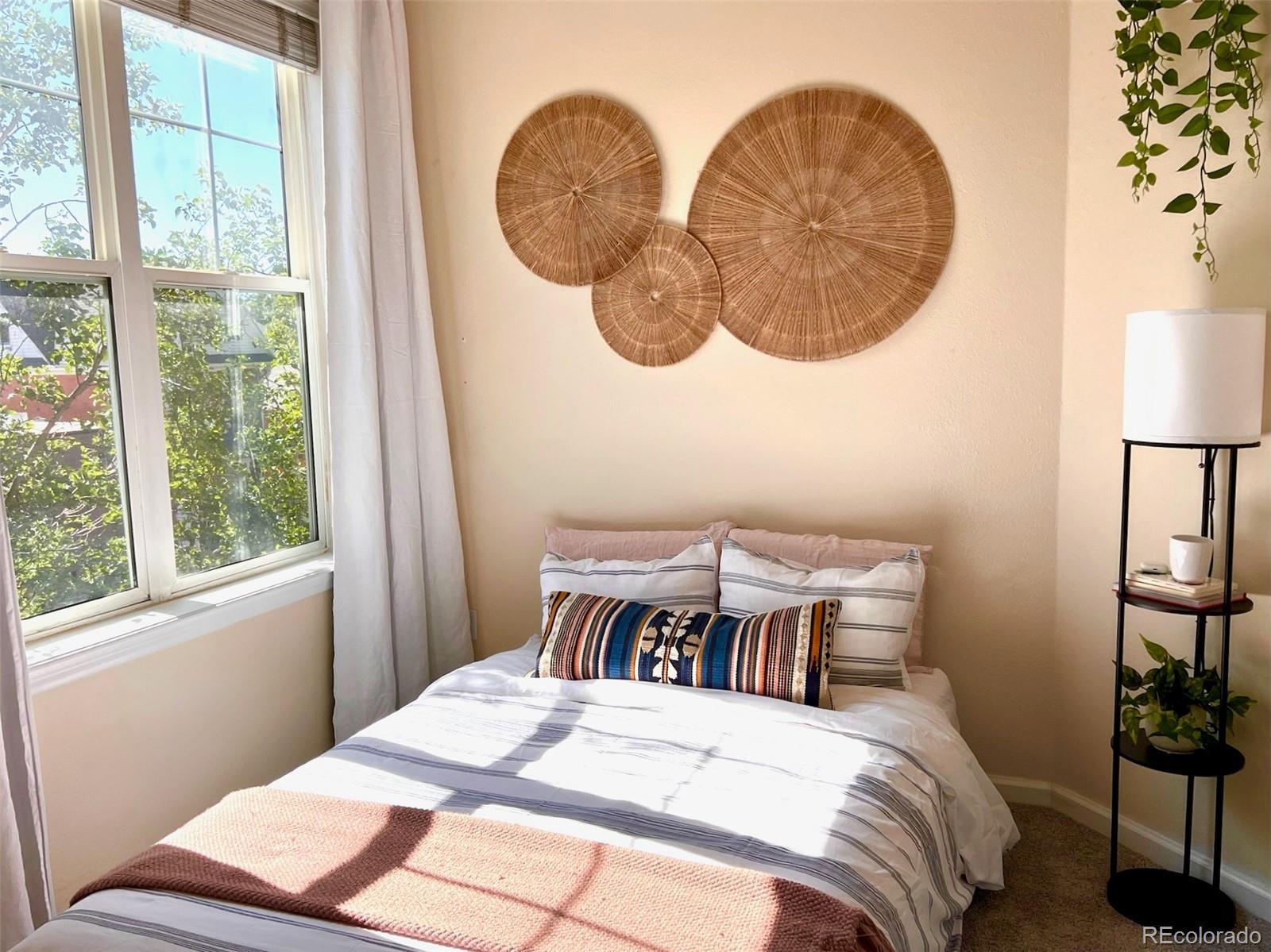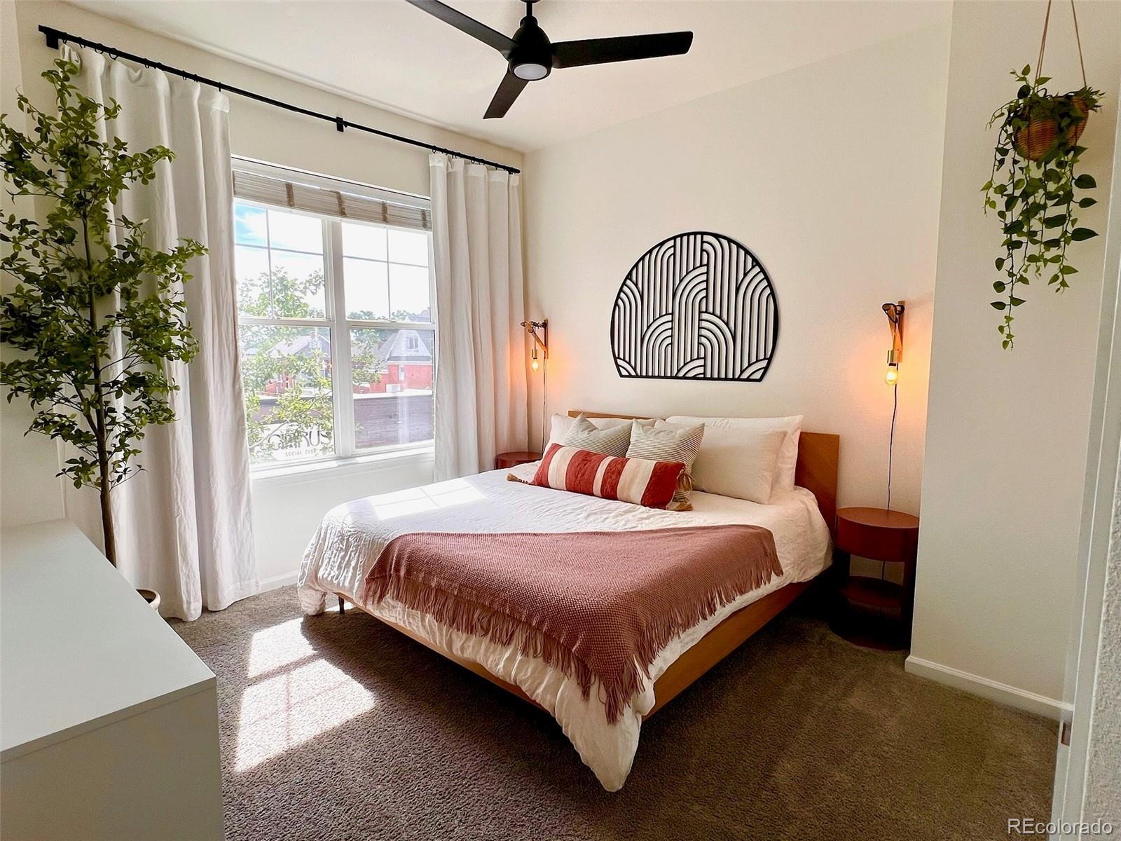ight-filled corner unit in one of the best positions in the building. Surrounded by walkable amenities just outside your door, this rare layout features wraparound north- and east-facing windows across the kitchen, living, and dining areas, filling the home with natural light throughout the day. Oversized windows sit at tree-canopy level, creating a uniquely private, leafy setting—unlike many units that offer only a single exposure or face directly into neighboring buildings. The primary bedroom includes an en-suite bathroom and walk-in closet. The living area is highlighted by tall ceilings, a cozy gas fireplace, and access to a private balcony, ideal for everyday living or entertaining. Recent updates include a new A/C unit, refrigerator, bathroom vanities, updated lighting throughout, and fresh paint in every room. Additional highlights include: One of the lowest HOA dues in the building Covered garage parking with storage In-unit laundry Elevator access Secure, well-managed, primarily owner-occupied building Step outside and enjoy immediate access to cafés, groceries, dining, fitness and yoga studios, salons, and the Bluebird Theater—without sacrificing quiet or privacy at home. With upcoming Colfax transportation improvements enhancing long-term accessibility and value, this home offers both immediate livability and future upside. A standout unit—rarely available and offered for a limited time before returning to successful long-term rental use. Offered as a private listing with opportunities for private showings and daily open houses.