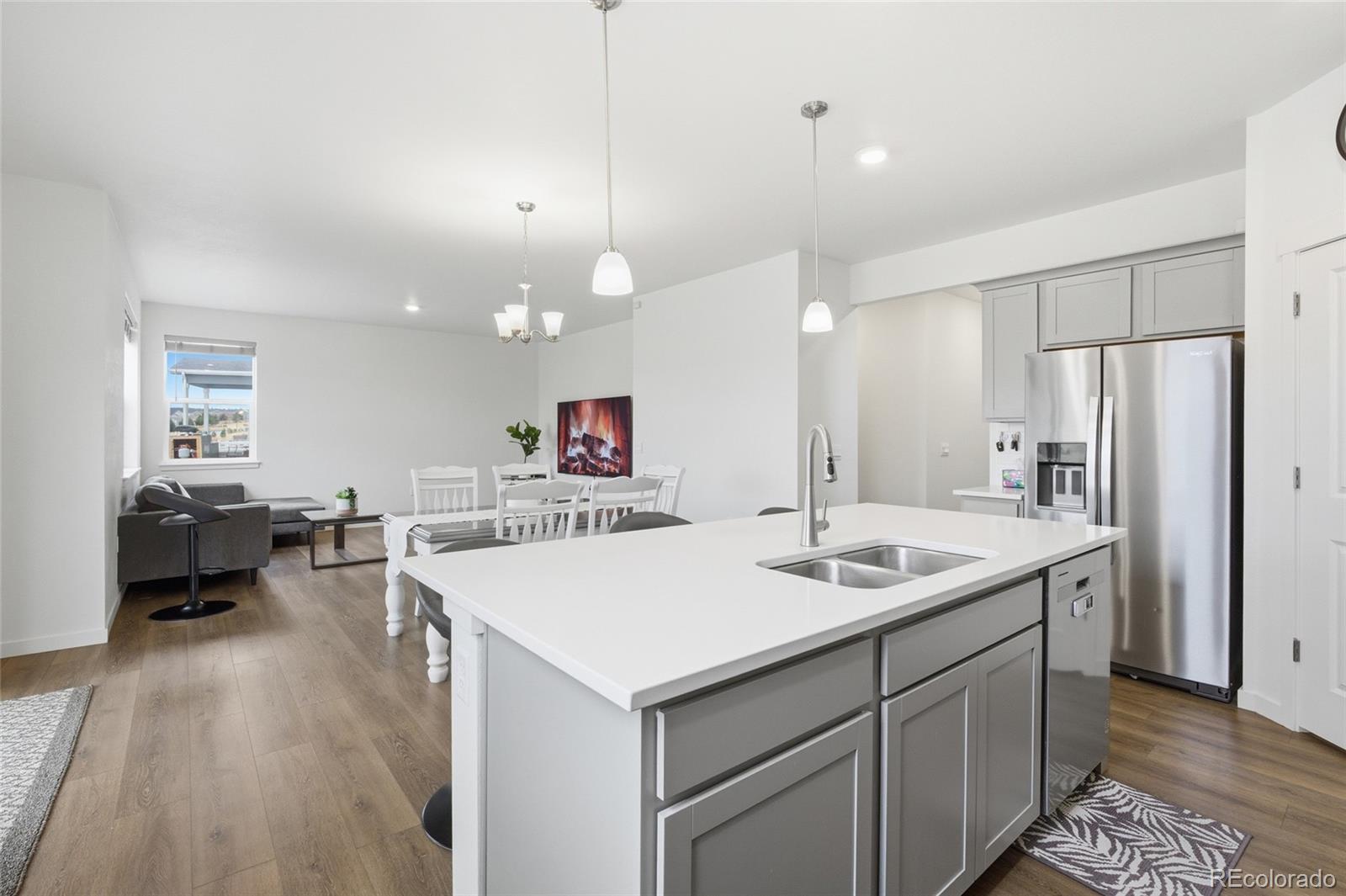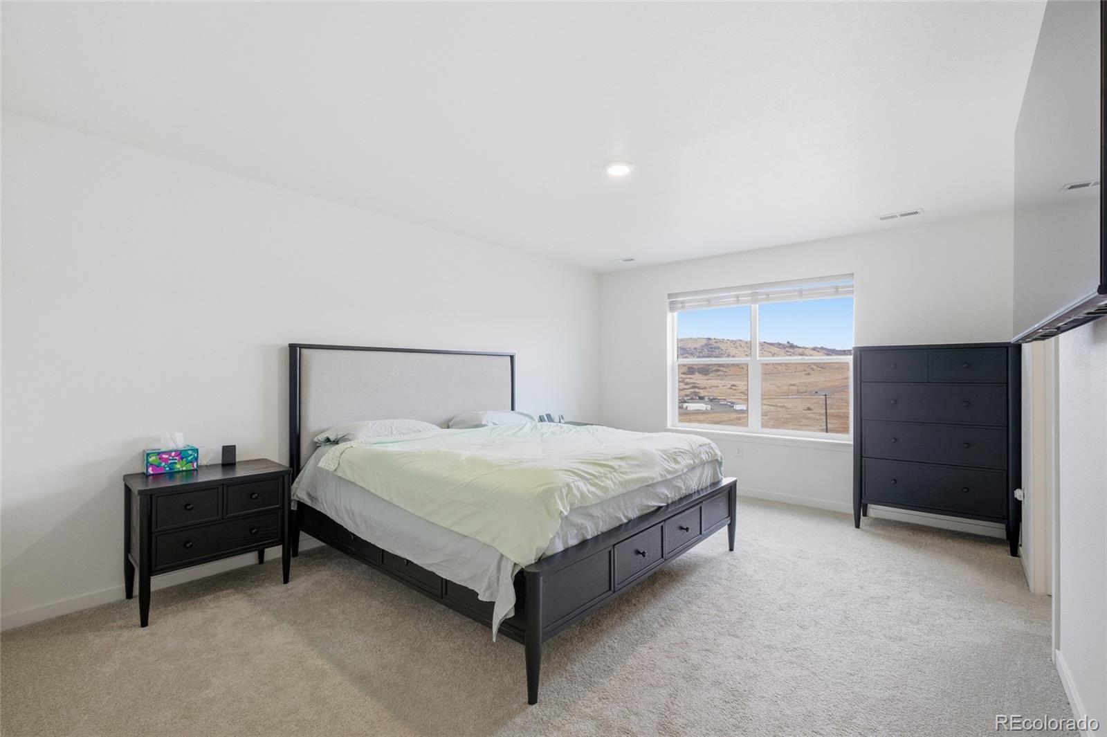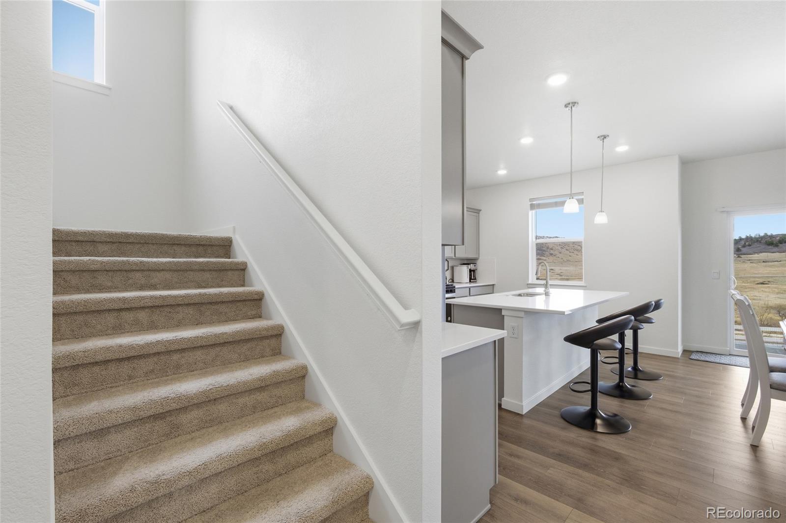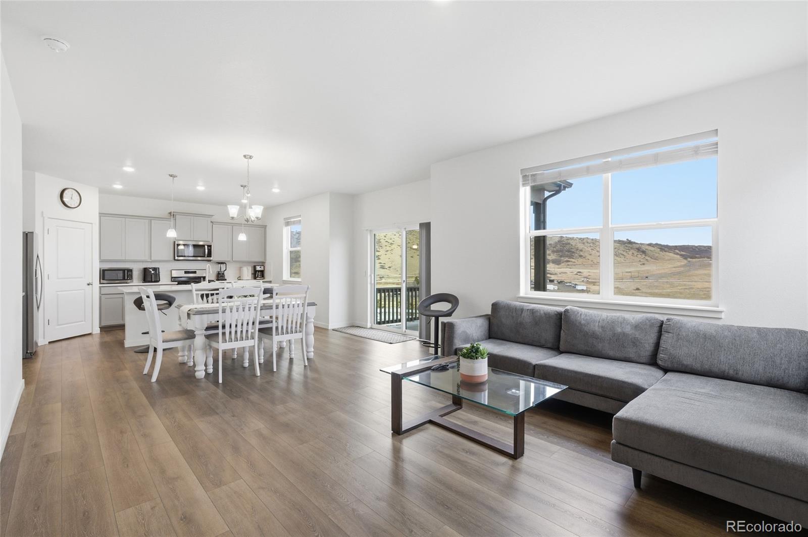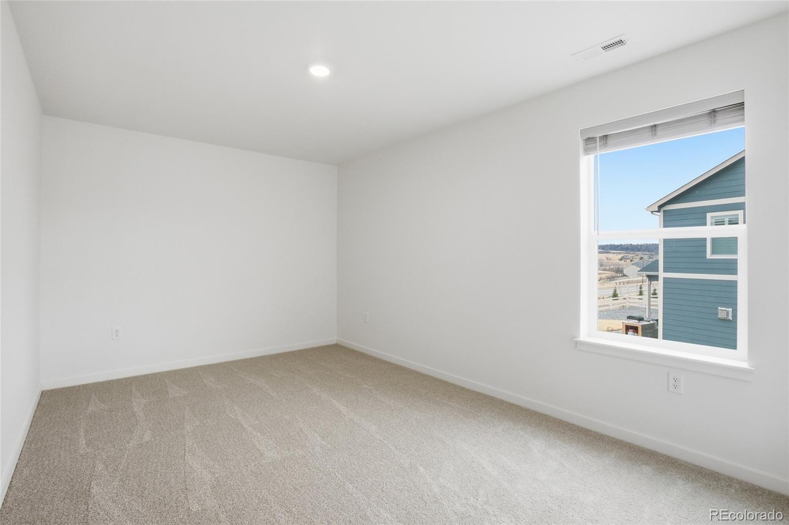 Welcome home to this beautifully designed two-story residence in the highly sought-after Crystal Valley Ranch community of Castle Rock. This popular Holcombe floorplan offers 4 bedrooms, 2.5 bathrooms, a deep 3-car garage, and 2,398 square feet of thoughtfully designed living space that blends modern style with everyday comfort. Lovingly maintained by the seller for the past year and a half, this home shows true pride of ownership and is in better-than-new condition. From the moment you enter, you’re greeted by a warm, inviting foyer and a private front-facing study—perfect for a home office or quiet retreat. A conveniently located powder room and linen closet enhance the home’s smart, functional layout. Moving past the staircase and garage entry, the home opens into a bright, open-concept living area where the kitchen, dining space, and great room flow seamlessly together. A sliding glass door leads to the backyard, which backs to open space, offering scenic views, added privacy, and an ideal setting for entertaining or relaxing outdoors. The kitchen is the true centerpiece of the home, featuring stainless steel appliances, ample counter space, a walk-in pantry, and a large center island perfect for gatherings, meal prep, or casual dining. Upstairs, you’ll find three generously sized secondary bedrooms offering flexibility for guests, home offices, or playrooms. A well-appointed shared bathroom includes dual vanities and a separate tub and toilet area for added convenience. The upstairs laundry room makes daily routines a breeze. The spacious primary suite serves as a private retreat, complete with an ensuite bathroom featuring dual sinks and a large walk-in closet. A 1032 sq ft. unfinished basement with 9' ceiling awaits your personal touch—offering endless potential for future living space, a home gym, media room, or additional storage.