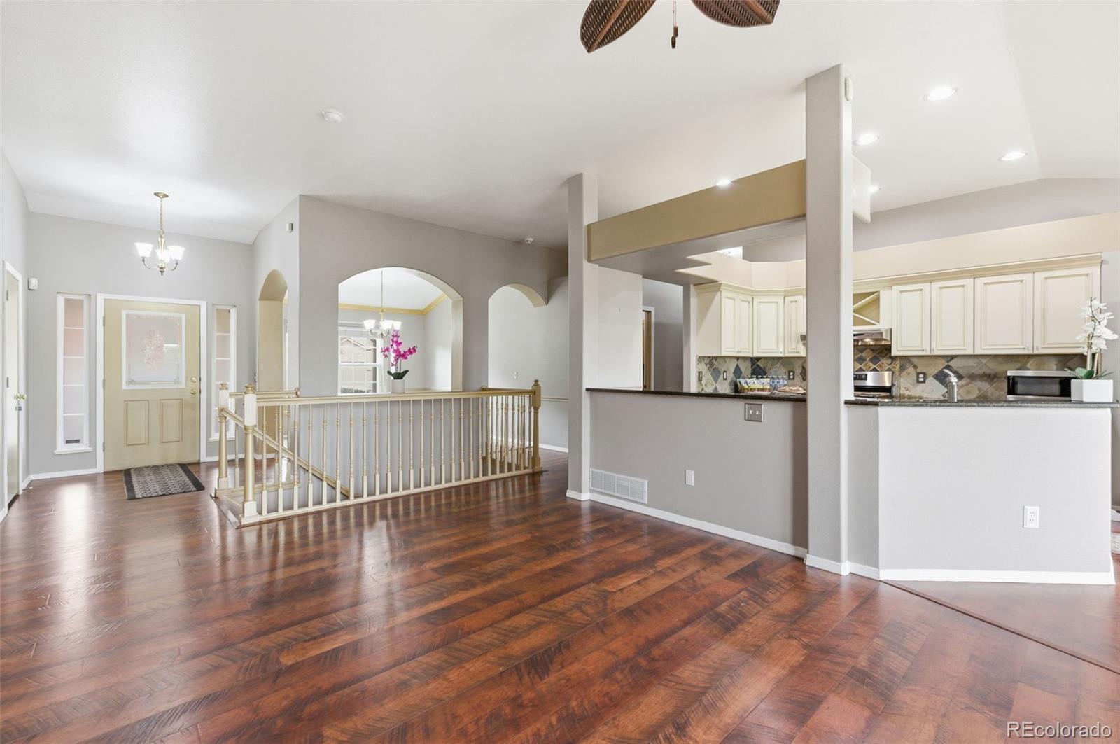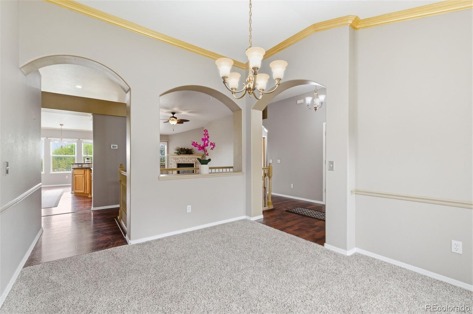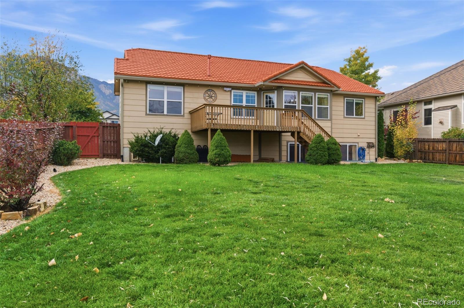 Broadmoor Glen ranch on a quiet cul-de-sac with mountain views (including Cheyenne Mountain) and coveted D12 schools. This spacious 6-bed/3-bath home welcomes you with an open, light-filled layout, 10’ ceilings, and fresh interior paint. The formal dining room features a vaulted ceiling with classic trim work. In the kitchen: two-toned soft-close cabinetry, stone counters, stainless appliances (including a gas range), built-in wine rack, and a breakfast bar plus casual dining nook that opens to the back deck—great for easy indoor-outdoor living. The main-level living room centers on a gas fireplace with a timeless brick hearth. The private primary suite offers a 5-piece bath and walk-in closet; two additional main-level bedrooms add flexibility for guests or a home office. The finished lower level provides an expansive rec/media room and three more bedrooms to fit changing needs. Outside, a large backyard is ready for gatherings. Notable upgrades include a Decre tile roof (Tuscan Sun) with a 50-year transferable warranty. Low annual HOA covers trash and recycling. Blocks to The Reserve Club (pool & tennis), Broadmoor Glen Park, and Pinon Valley Elementary, with everyday conveniences, Cheyenne Mountain State Park, the Cheyenne Mountain Zoo, Fort Carson, and downtown just minutes away. Welcome to Broadmoor Glen—comfort, space, and location in one.