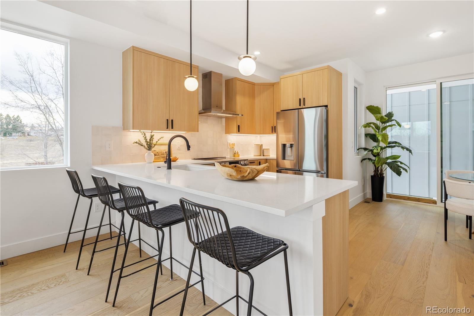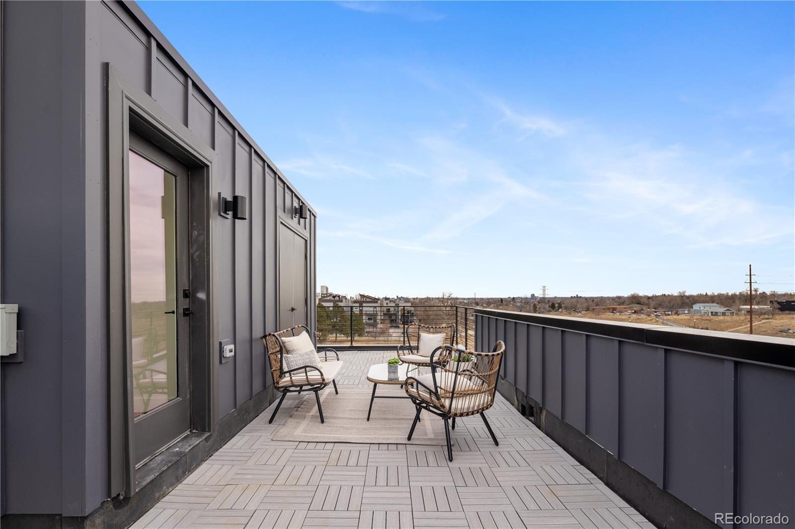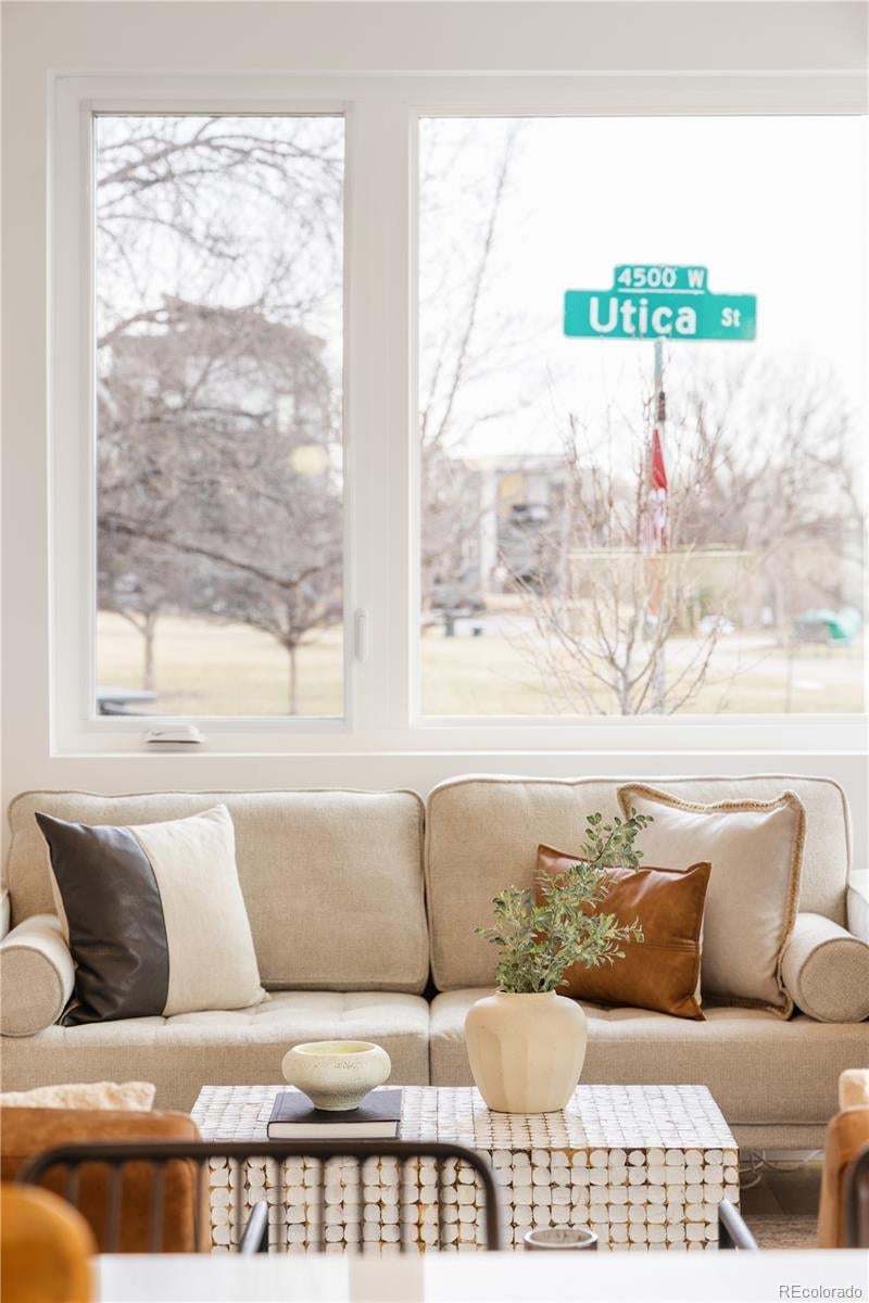 Welcome to Parkside on Utica, your opportunity to own stunning mountain and city views in the heart of Sloan’s Lake / West Colfax. This thoughtfully designed three bedroom residence features high end finishes throughout and an expansive 1,740 sq ft duplex floor plan. Step into the main living level, where hardwood floors run throughout an open-concept living and kitchen space designed for both everyday comfort and entertaining. Each level of the home offers panoramic views overlooking the park, community garden, and green belt. The second level includes two guest bedrooms, a full guest bath, and a conveniently located laundry area. The entire third level is dedicated to the primary suite, creating a private retreat above it all. This spacious primary bedroom is complemented by a large walk in closet and a spa inspired bathroom featuring dual sinks, a separate soaking tub, an oversized rain shower, and a private water closet. Soak up the Colorado sunshine from your private rooftop deck, showcasing sweeping city and mountain views, perfect for relaxing or entertaining year round. Situated directly adjacent to the Lakewood Gulch greenbelt, residents enjoy immediate access to maintained walking and biking trails, three parks, local breweries, and open green spaces with scenic city views along the entire corridor. Just a few blocks from the Zenobia Light Rail Station, this home offers an ideal commuter location with effortless access to downtown Denver. Enjoy proximity to everything West Denver has to offer, including Sloan’s Lake, Edgewater, restaurants, shopping, and dining. Lender incentives available.