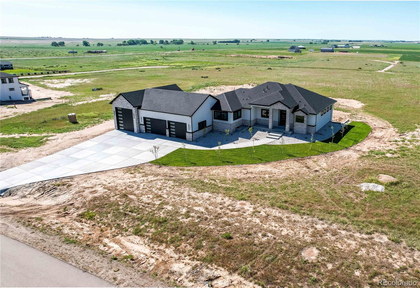 You Must Come Tour This Stunning Custom Home! This Estate Home Sits on 2.5 Acres With Almost 6000 Finished Sq. Feet of Living, that includes 6 Bedrooms and 5 Baths! The 5 Stall Garage Comes is Almost 2000 Square Feet, This Monstrous Garage is like a Warehouse with Full Size RV Door Height Entrance and Full Length Indoor Parking, Fully Finished and Insulated could Host Massive Family Events! The Curb Appeal is Palatial, Complete Stucco Exterior with Stone Accents, Exterior Lighting Along Soffits Give this an Amazing Ambiance for Quite Country Evenings! Step Through the Grand Entrance, You Are Immediately Greeted by Towering Ceiling and Doors To Match! Luxury Plank Vinyl Installed Throughout! Modern Design and Finish! The Great Room is Spectacular with A Wall of Windows And Sliding Doors with Views of your Acreage, Southern Facing Natural Light Bursts Through! This Gourmet Kitchen will Wow You again with Views to your Covered Composite Decking That Runs The Length of Your Home! Enjoy Entertaining or Just Relaxing with South and Western Views of Sunsets and Mountains! It's Tranquil Here! Main Floor Features 2 Bedrooms with En-suite Baths! The Primary Suite is To Die For with Private Exit onto Deck, DOUBLE Walk In, Primary Bath with Independent Soaking Tub! Large Office or Den Space is Perfect for Home Office-ing and has an adjoining 3/4 Shower Bath! The Main Floor is Rounded off by a Mud Room/Laundry will make even doing Laundry Inviting! Now For the OTHER Half of this Stately Home. Where are my Multi Generational Families?! The Walkout Basement is Almost 2800 Sq. Ft. and Offers 3 Bedrooms, Kitchen, Dinning Room, Family Room, Living Room, 3/4 Bath! Oh and a Wine Cellar! This Colorado Oasis is located Just 9 minutes off I-70 Which means easy Access just Without the I-70 Roar! And You are about 30 Minutes to DIA! Remember you have 2.5 Acres to Play with! Equestrian Lovers, 2 Horses are Community Approved! The Possibilities are Endless on this Little Piece of Heaven!