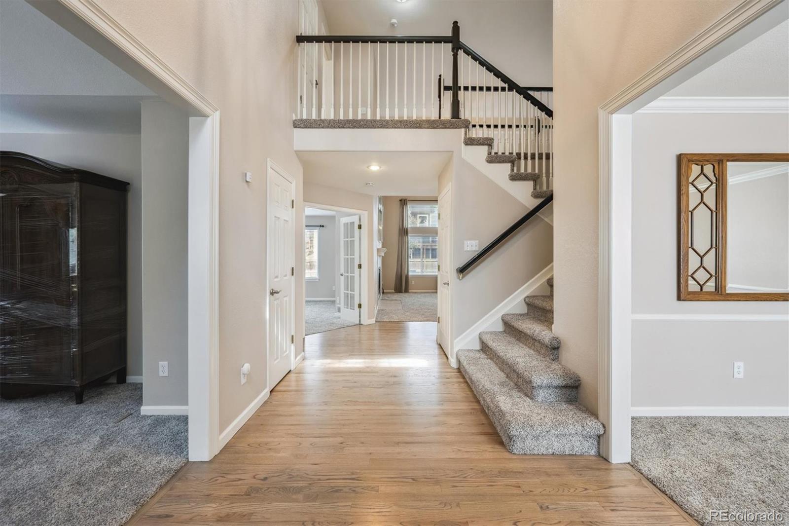 Welcome to this beautifully maintained two-story home featuring abundant living space in Signal Creek. The updated kitchen offers modern finishes, stainless steel appliances, ample cabinetry, and a functional layout perfect for both daily living and entertaining. Enjoy gatherings in the formal dining room, ideal for hosting holidays and dinner parties. This home offers flexibility with a main-level bedroom or den, perfect for a guest suite, home office, or quiet reading retreat. Upstairs, you’ll find four spacious bedrooms, including a primary suite with generous closet space and a private bath. The fully finished basement adds even more versatility with room for a family media area, game room, fitness room, or hobbies. Easy access to E-470, I-25, Hwy 7, and I-76. New roof and windows. Recently painted exterior and interior. Community pool and close proximity to parks and trails!