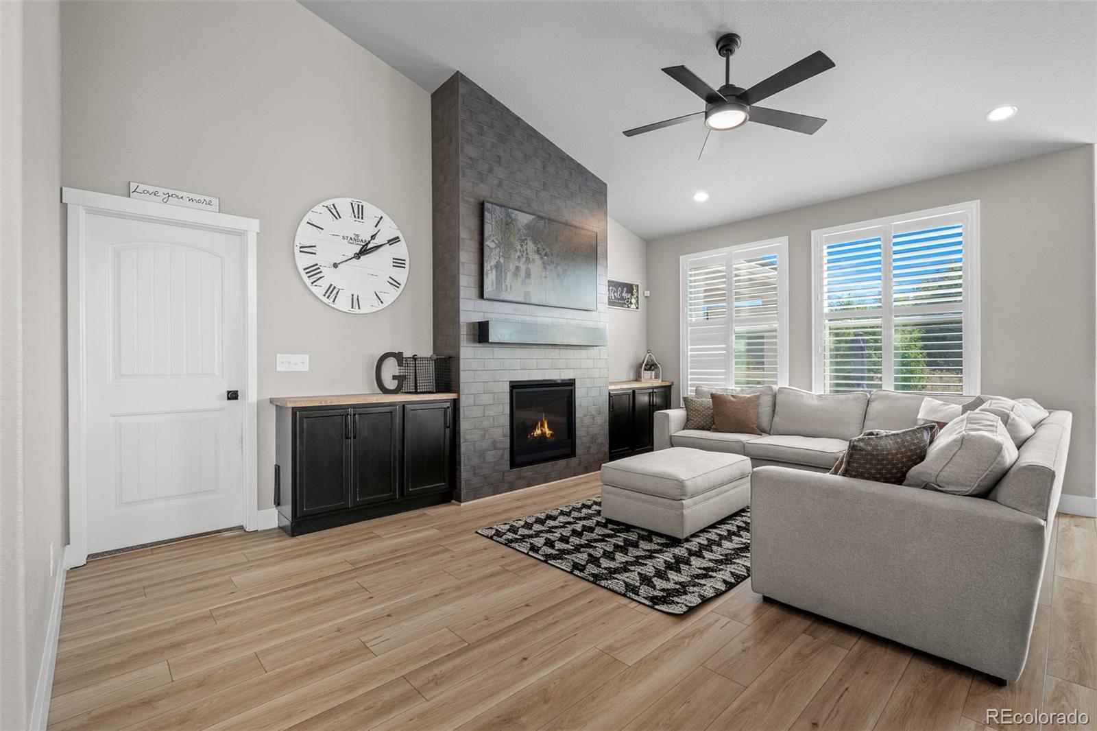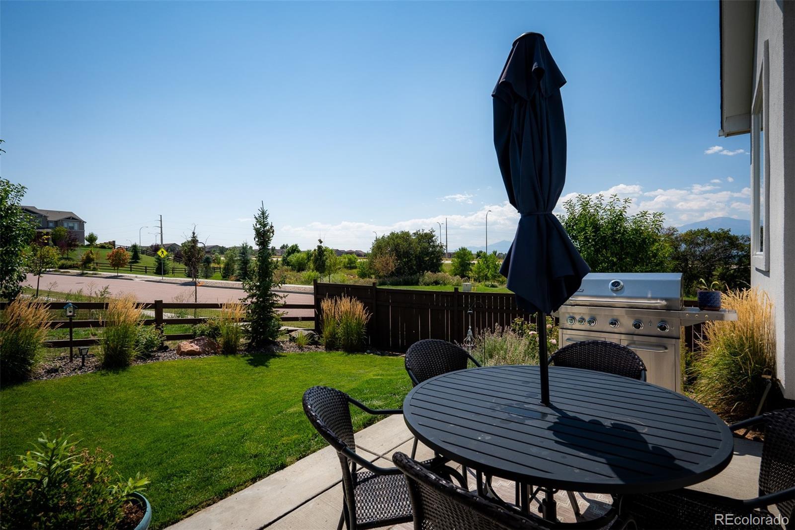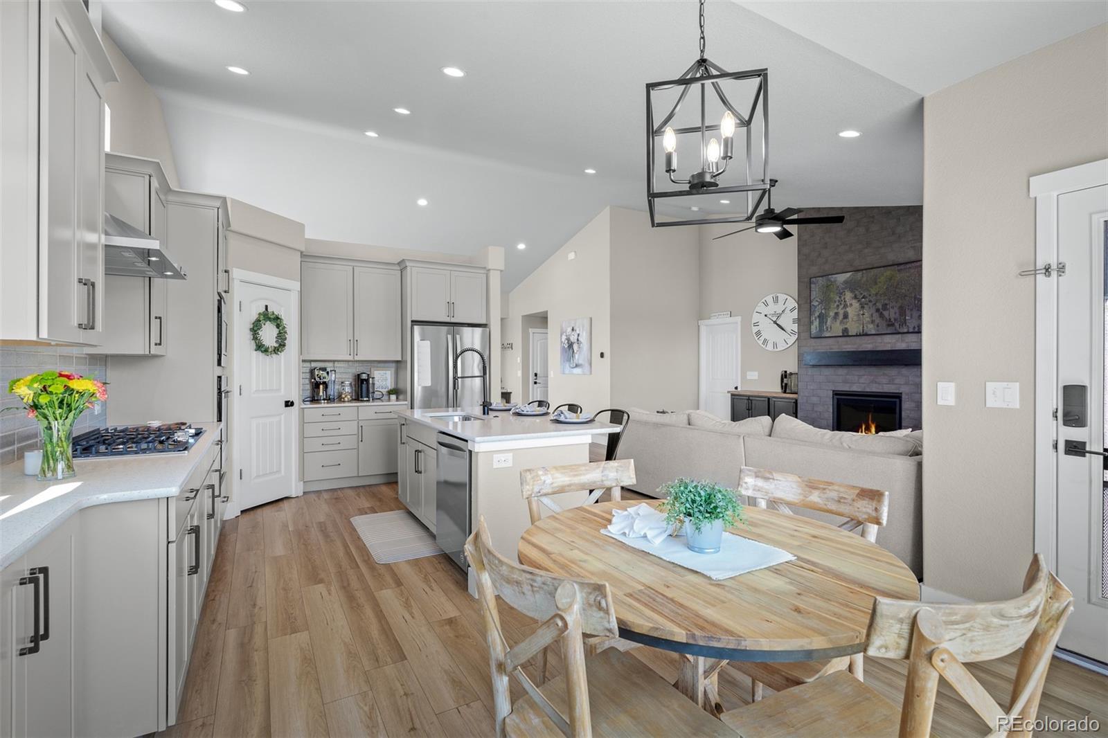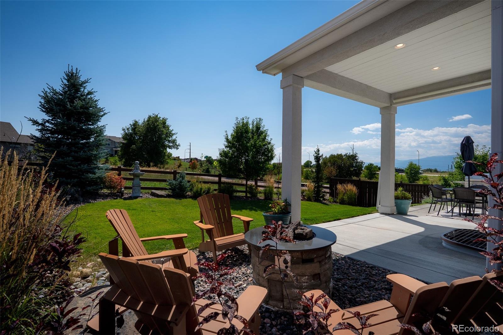 Welcome to this stunning former model ranch home in the highly desirable North Fork neighborhood within acclaimed District 20 schools. This residence showcases mountain views galore, honeycrisp apple trees and backs to open space, offering both privacy and Colorado beauty right from your covered patio and firepit. The spacious open floorplan features vaulted ceilings, accent walls, and thoughtful upgrades throughout. The main level boasts two bedrooms and two full baths, including a luxurious primary suite with its own fireplace, spa-like bathroom, and walk-in closet. A second fireplace warms the inviting living room with built-ins, while the formal dining room and breakfast nook both capture breathtaking views. The chef’s kitchen is a true highlight with quartz countertops, a down draft, extended cabinetry, and top-quality finishes. The home includes custom blinds and window coverings throughout. Downstairs, the finished basement is designed for entertaining, complete with built-in speakers for a theater experience, a wet bar, and plenty of space to relax. A junior suite with an attached bath and walk-in closet provides comfort and privacy for guests. With a 3-car garage, multiple living spaces, and countless upgrades, this home combines functionality, style, and location in one perfect package. This is one of Colorado's Finest!