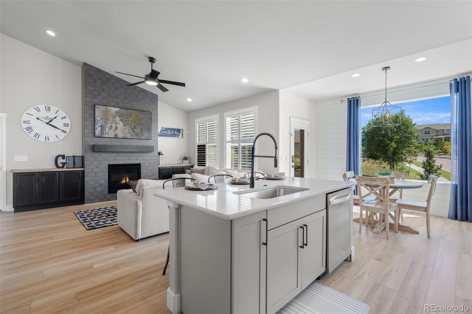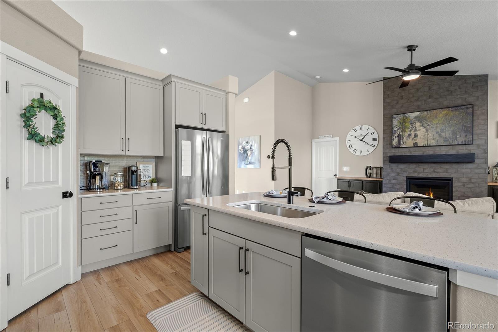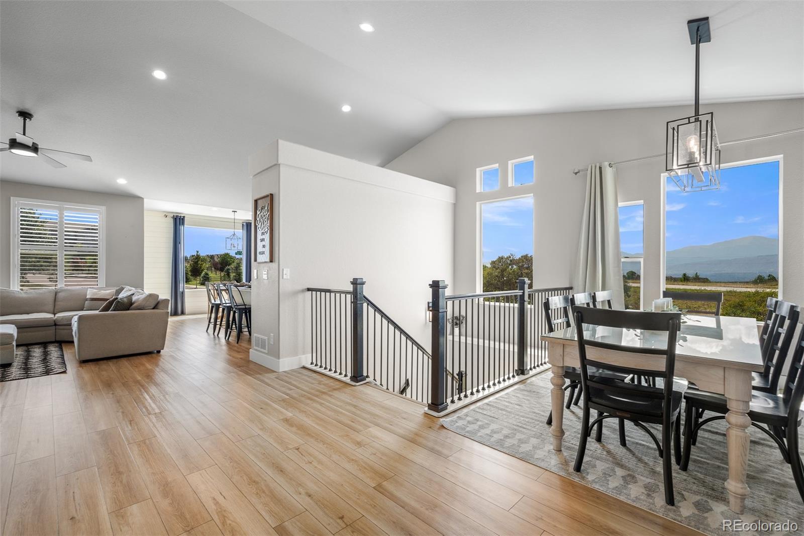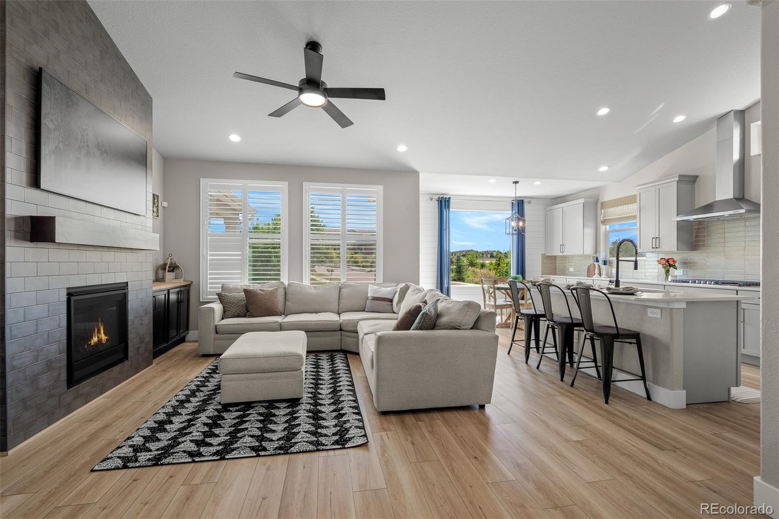 Welcome to this stunning former model ranch home in the highly desirable North Fork neighborhood within acclaimed District 20 schools. This residence showcases mountain views galore, honeycrisp apple trees and backs to open space, offering both privacy and Colorado beauty right from your covered patio and firepit. The spacious open floorplan features vaulted ceilings, accent walls, and thoughtful upgrades throughout. The main level boasts two bedrooms and two full baths, including a luxurious primary suite with its own fireplace, spa-like bathroom, and walk-in closet. A second fireplace warms the inviting living room with built-ins, while the formal dining room and breakfast nook both capture breathtaking views. The chef’s kitchen is a true highlight with quartz countertops, a down draft, extended cabinetry, and top-quality finishes. The home includes custom blinds and window coverings throughout. Downstairs, the finished basement is designed for entertaining, complete with built-in speakers for a theater experience, a wet bar, and plenty of space to relax. A junior suite with an attached bath and walk-in closet provides comfort and privacy for guests. With a 3-car garage, multiple living spaces, and countless upgrades, this home combines functionality, style, and location in one perfect package. This is one of Colorado's Finest!