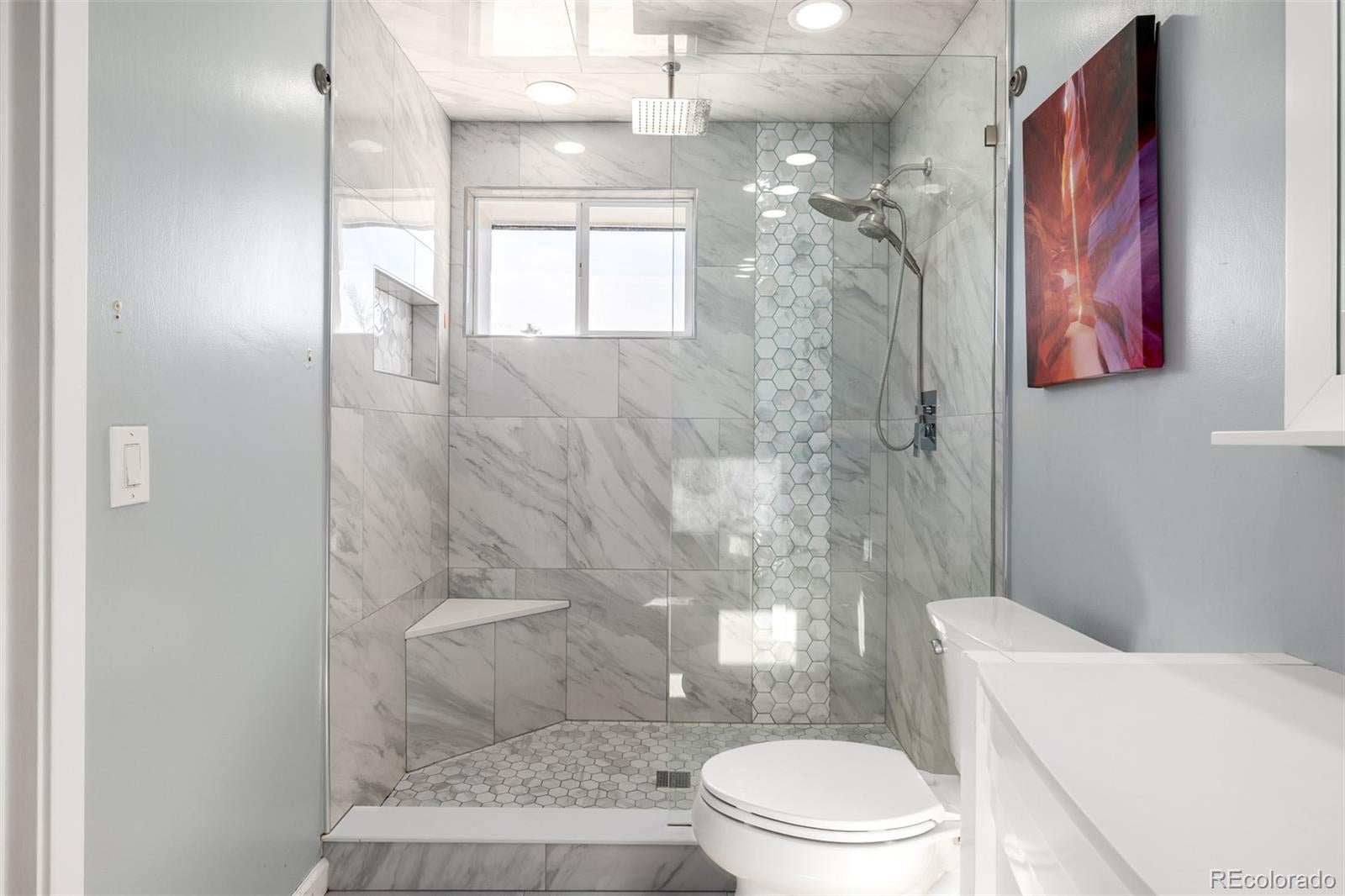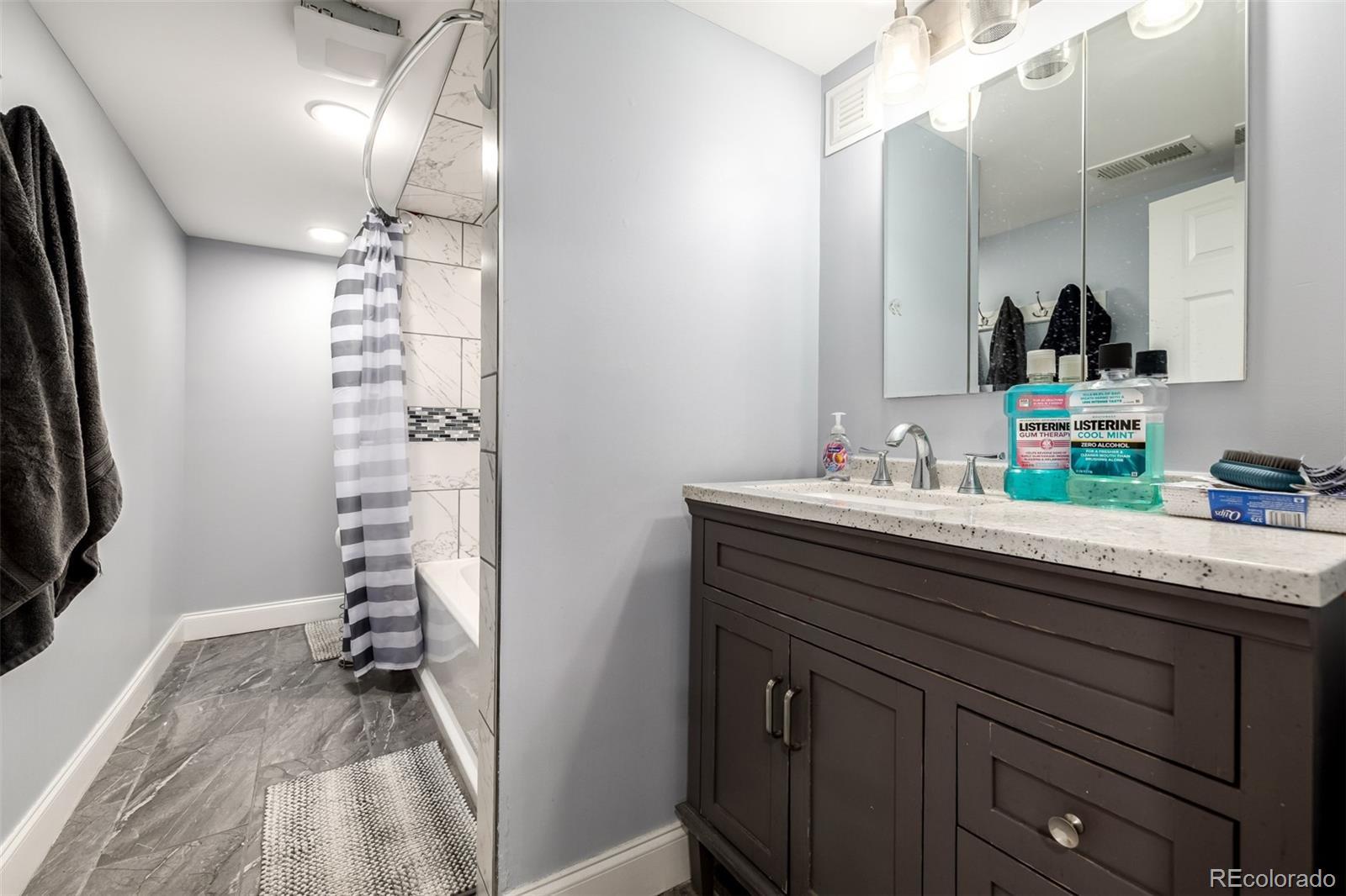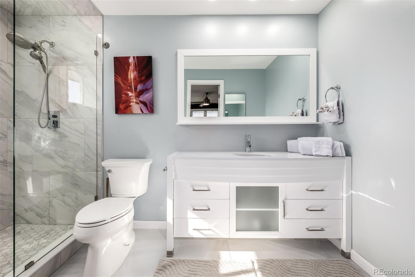 This stunning, completely updated property in highly sought-after Arvada seamlessly blends modern sophistication with functional design and an unbeatable location. Just an 8-minute drive from vibrant Old Town Arvada with its shops, restaurants, and breweries, you'll enjoy the perfect balance of peaceful residential living and urban convenience. Outdoor enthusiasts will love being only 3 minutes from Indian Tree Golf Club, 10 minutes from Standley Lake Regional Park and Wildlife Refuge for paddleboarding, running, biking, hiking, and birding, and just 15 minutes from Westminster Open Space's off-leash dog area. The showstopping 2025 kitchen renovation features elegant two-tone cabinetry with soft-close doors and drawers, a deep farmhouse sink, premium granite countertops, and a spacious center island perfect for entertaining. Brand-new stainless steel appliances include a gas range, built-in microwave, and refrigerator, all complemented by stylish lighting. Durable LVP flooring flows throughout the main level, while the open layout connects to the inviting family room featuring a striking white wood-burning fireplace as the focal point. Gorgeous 100% red oak hardwood floors grace both levels, adding warmth and timeless appeal. The completely remodeled 2023 bathroom showcases designer tile work, a custom dual-sink vanity with decorative cabinetry, and spa-like finishes. Modern comfort is ensured with a new 2025 HVAC system enhanced by a hospital-grade steam humidification system throughout for optimal air quality. The upgraded 200 AMP electrical panel with new recessed LED lighting supports all your modern power needs, while fresh exterior paint applied just 4 months ago enhances curb appeal. The fully fenced yard provides privacy and security, while generous parking easily accommodates trailers or RVs. The professionally completed lockout basement features a full kitchen, bathroom, and private entry for excellent rental income potential or flexible living.