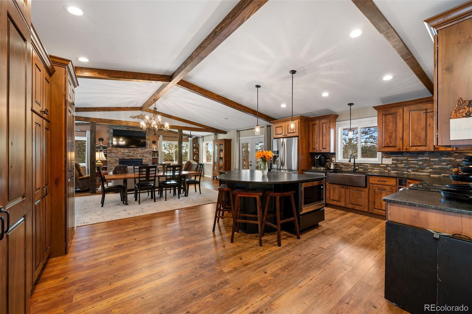 Set on 35 acres of Agriculturally zoned land free of HOA or covenants, this property offers an ultra private setting with mountain views, and 2 separate residences. The main home has seen numerous updates and offers an open floor plan with vaulted ceilings, exposed beams, and wood flooring. A stone gas fireplace serves as a focal point in the living room. The kitchen features custom Alder cabinetry, a wall pantry system with slide-out shelving, hammered copper sink, and a leathered granite island positioned to take in views of the Sangre de Cristos. The bathrooms are thoughtfully finished with heated floors, a walk-in tiled shower, dual vanities, and a separate soaking tub. Outdoor living is easily enjoyed from the spacious covered deck, and a pet-safe wire fence surrounds the main residence. Exterior maintenance is a breeze with log-look metal siding and a metal roof. The guest home offers 1,300+ square feet and has been refreshed with new cabinetry, updated flooring, and fresh interior paint. The home features 2 master suites both with walk-in closets and private bathrooms. Making the home well suited for guest accommodations or rental use. Additional improvements include a detached garage, and a 1000+ square foot insulated metal workshop with wood burning stove and electricity. The domestic well supplies water to the main home, while the guest residence is supported by its own cistern. Each home has its own septic system and power. With multiple structures, two complete residences, and room to spread out, this property offers a practical and adaptable mountain setting that’s ready for your next chapter—whether that’s full-time living, a family compound, generational retreat, or smart income-producing haven. Don’t just dream about Colorado mountain freedom—come live it. Schedule your tour today and see why this 35-acre gem won’t stay available long. Your Sangre de Cristo views are waiting!
