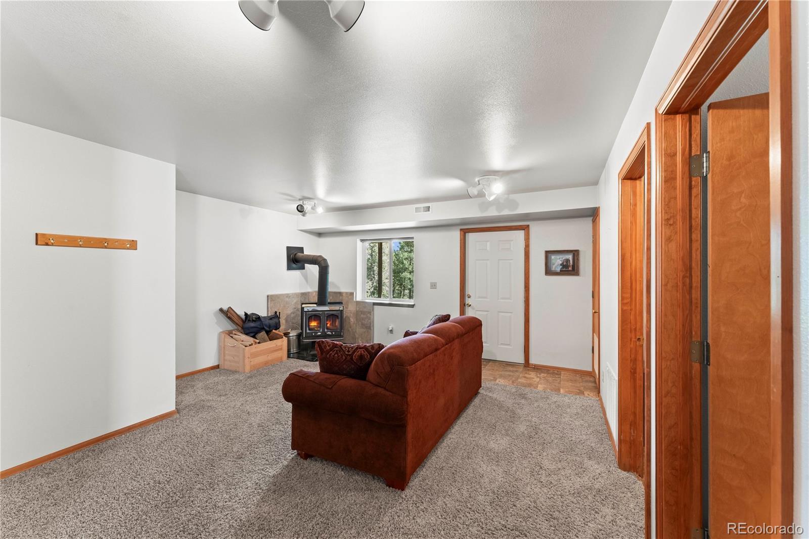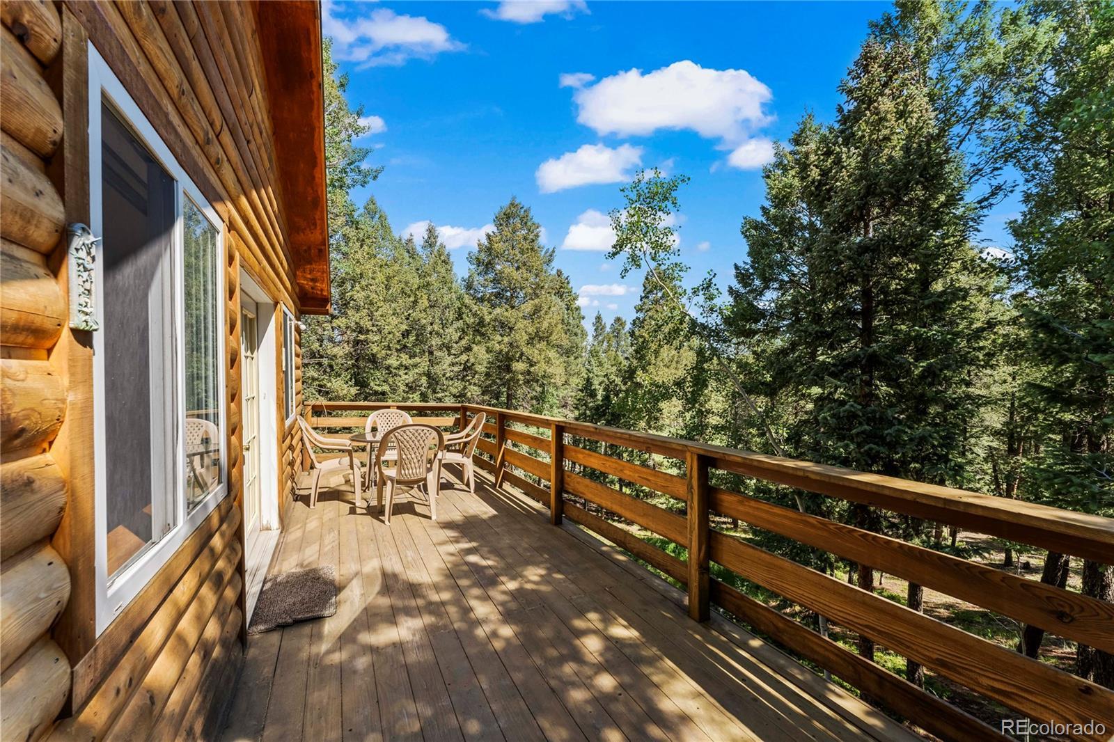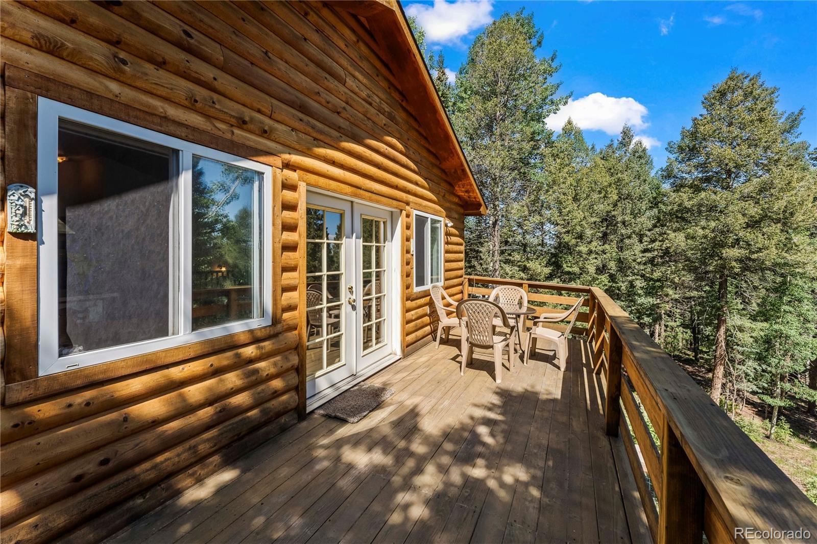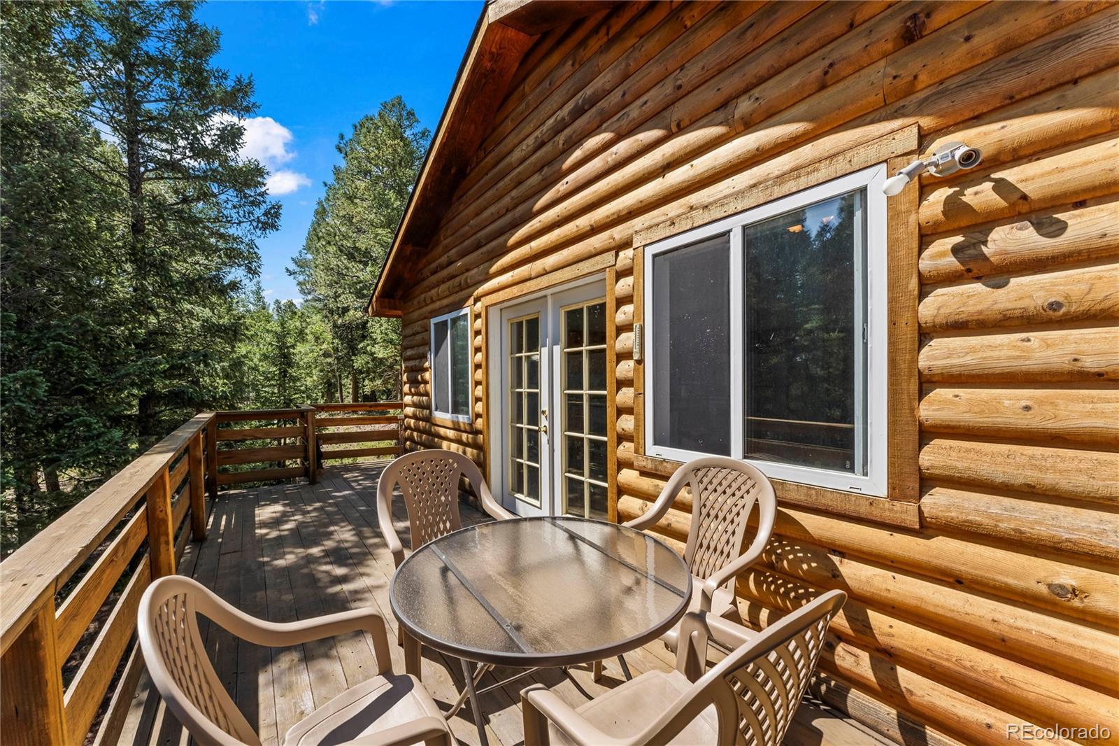 Welcome to Colorado Mountain living. As you drive up you are greeted by a well maintained cedar log sided cabin as well as peace and quiet. The main level includes an open floor plan with kitchen, dining and living room with vaulted ceilings and lots of natural light. The master suite is located on the main level as well as a nice deck for grilling and enjoying the views of the woods. The lower level includes two more bedrooms, a bathroom, laundry and large living space. Cozy up by the wood burning stove on those cold nights. The lower level walks right out into nature. Great adventures await as you are just minutes from hiking trails, Florissant Fossil Beds (10 minutes), Mueller State Park (20 minutes), Woodland Park (17 minutes), Cripple Creek (30 minutes) and Colorado Springs (45 minutes). New furnace and radon system in 2023, new roof in 2019. This home comes fully furnished, you don't want to miss this one. Please schedule a showing and prepare to make it your own!