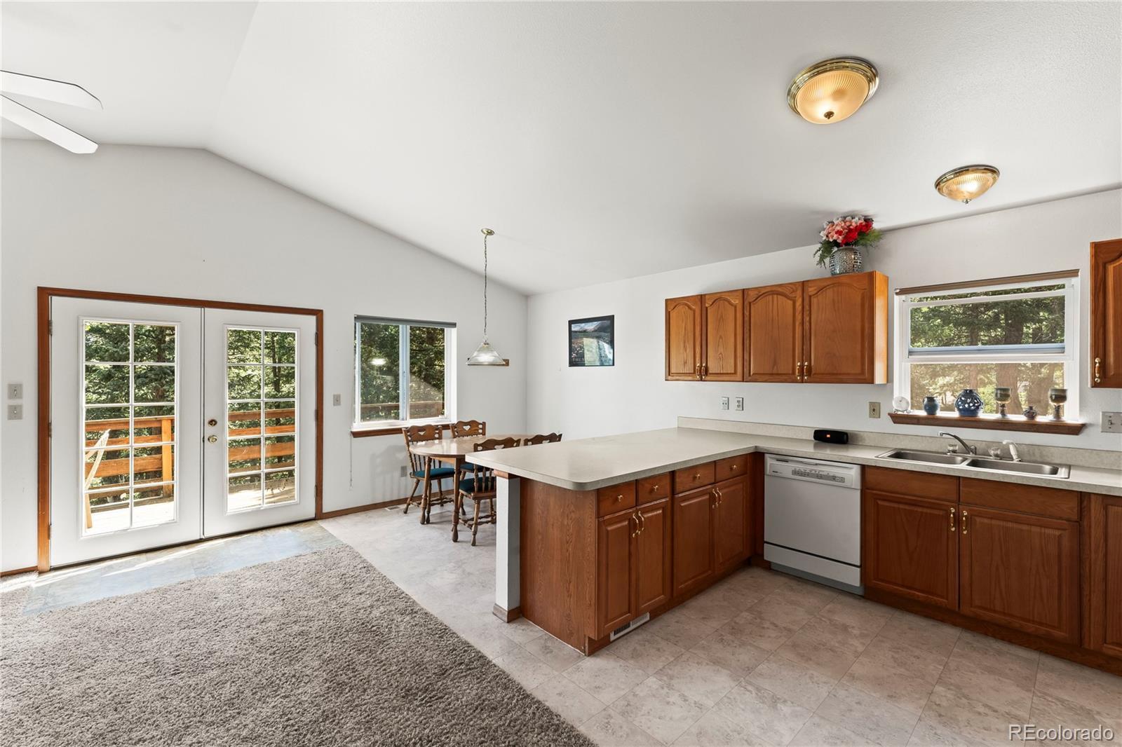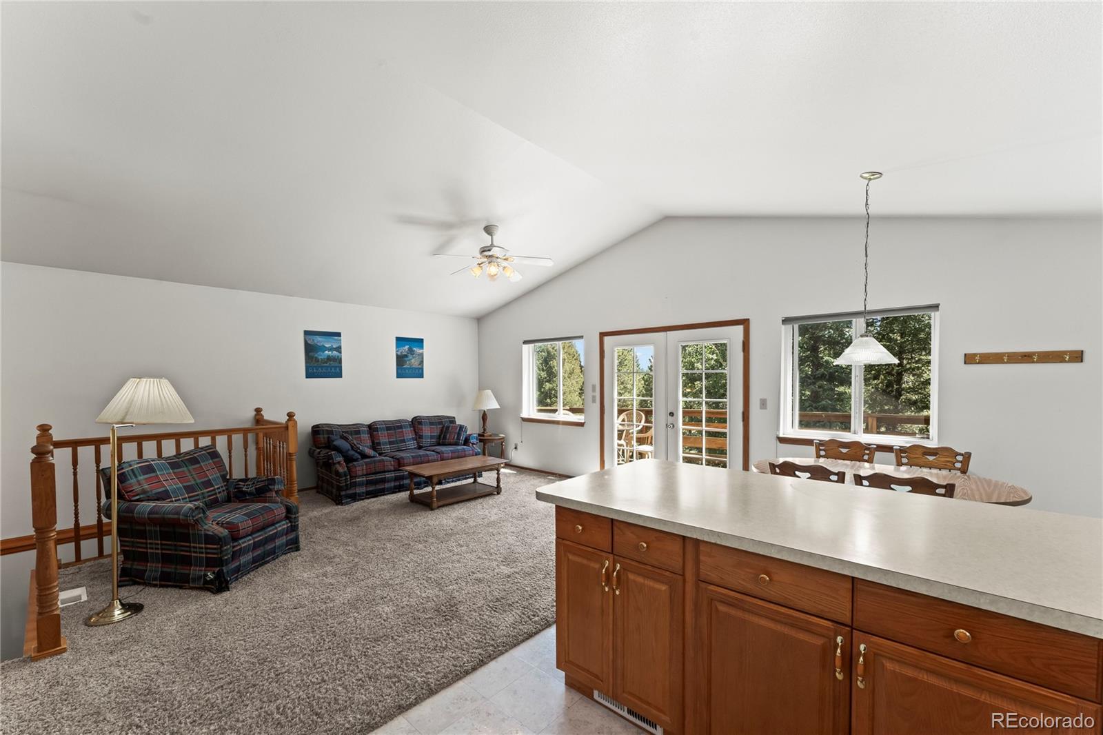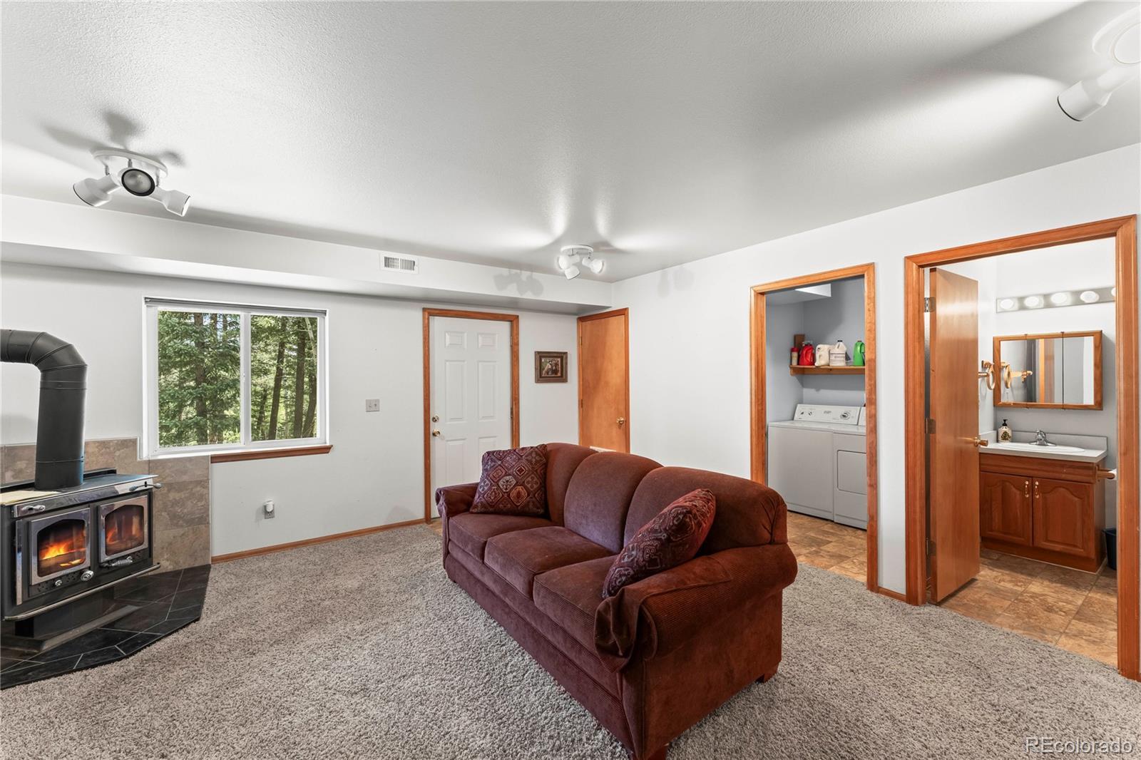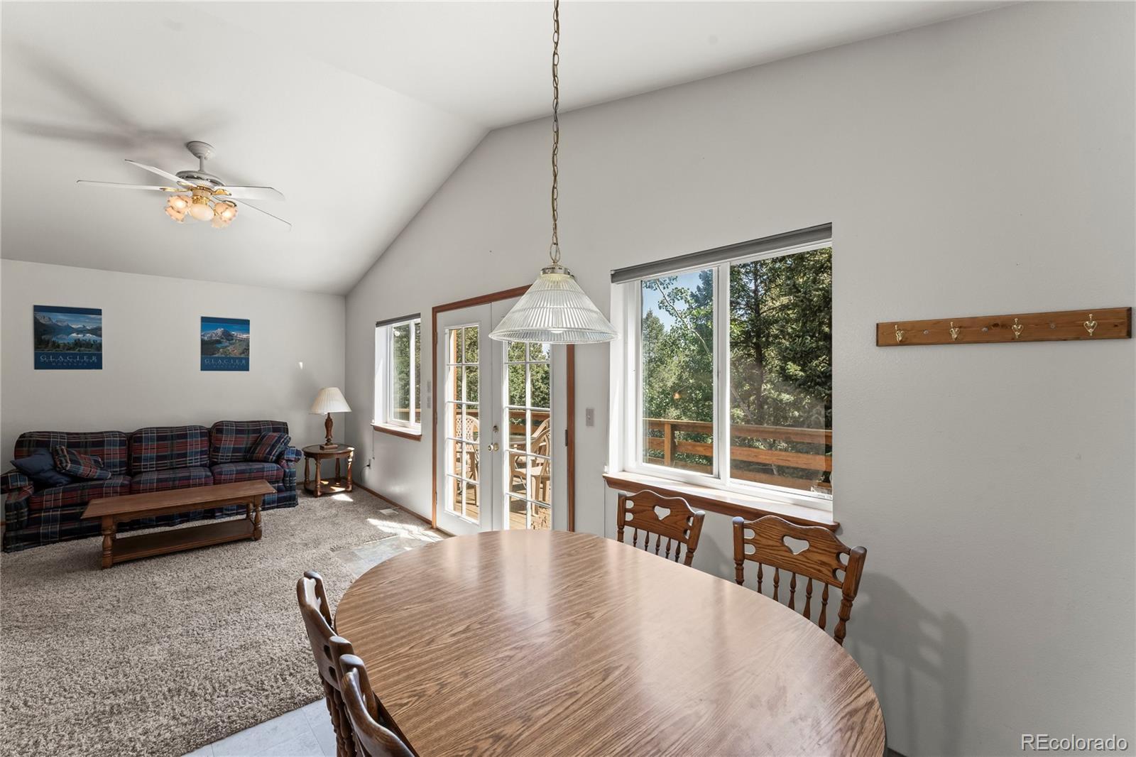 Welcome to Colorado Mountain living. As you drive up you are greeted by a well maintained cedar log sided cabin as well as peace and quiet. The main level includes an open floor plan with kitchen, dining and living room with vaulted ceilings and lots of natural light. The master suite is located on the main level as well as a nice deck for grilling and enjoying the views of the woods. The lower level includes two more bedrooms, a bathroom, laundry and large living space. Cozy up by the wood burning stove on those cold nights. The lower level walks right out into nature. Great adventures await as you are just minutes from hiking trails, Florissant Fossil Beds (10 minutes), Mueller State Park (20 minutes), Woodland Park (17 minutes), Cripple Creek (30 minutes) and Colorado Springs (45 minutes). New furnace and radon system in 2023, new roof in 2019. This home comes fully furnished, you don't want to miss this one. Please schedule a showing and prepare to make it your own!